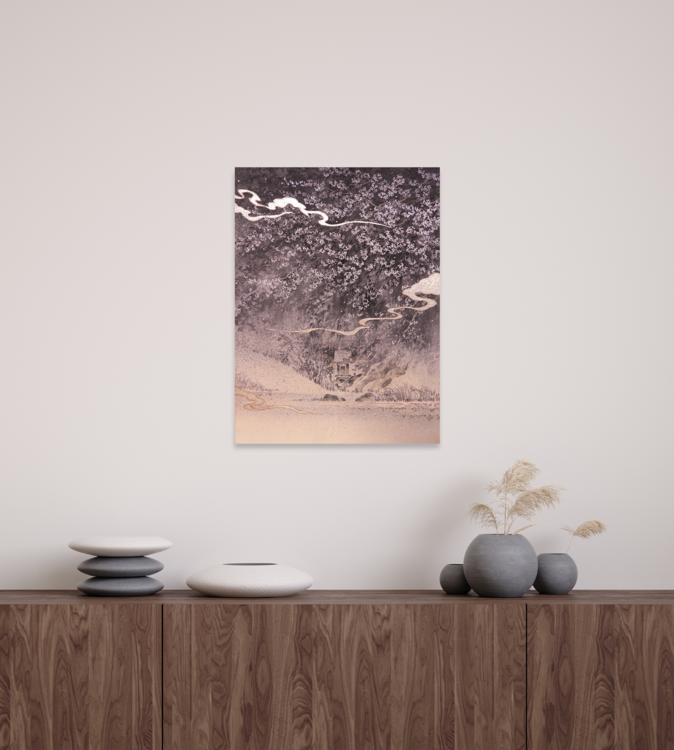 Kodama est une peinture de l’artiste japonaise Shoko Okumura, issue de la série Tree Portraits. Le tableau représente paysage poétique, rendu dans des tonalités délicates. Dans le folklore japonais, un kodama est un esprit vivant dans un arbre.