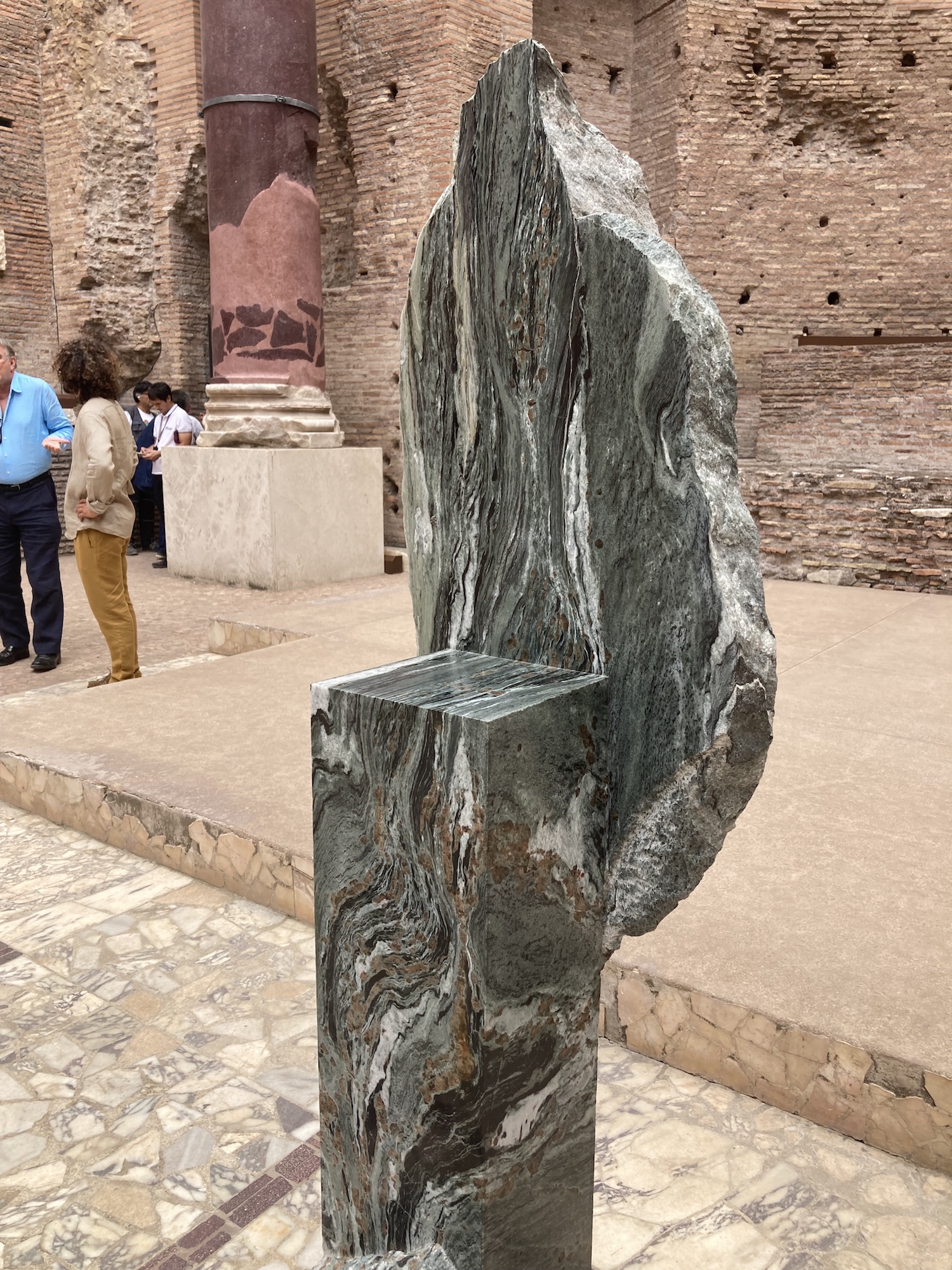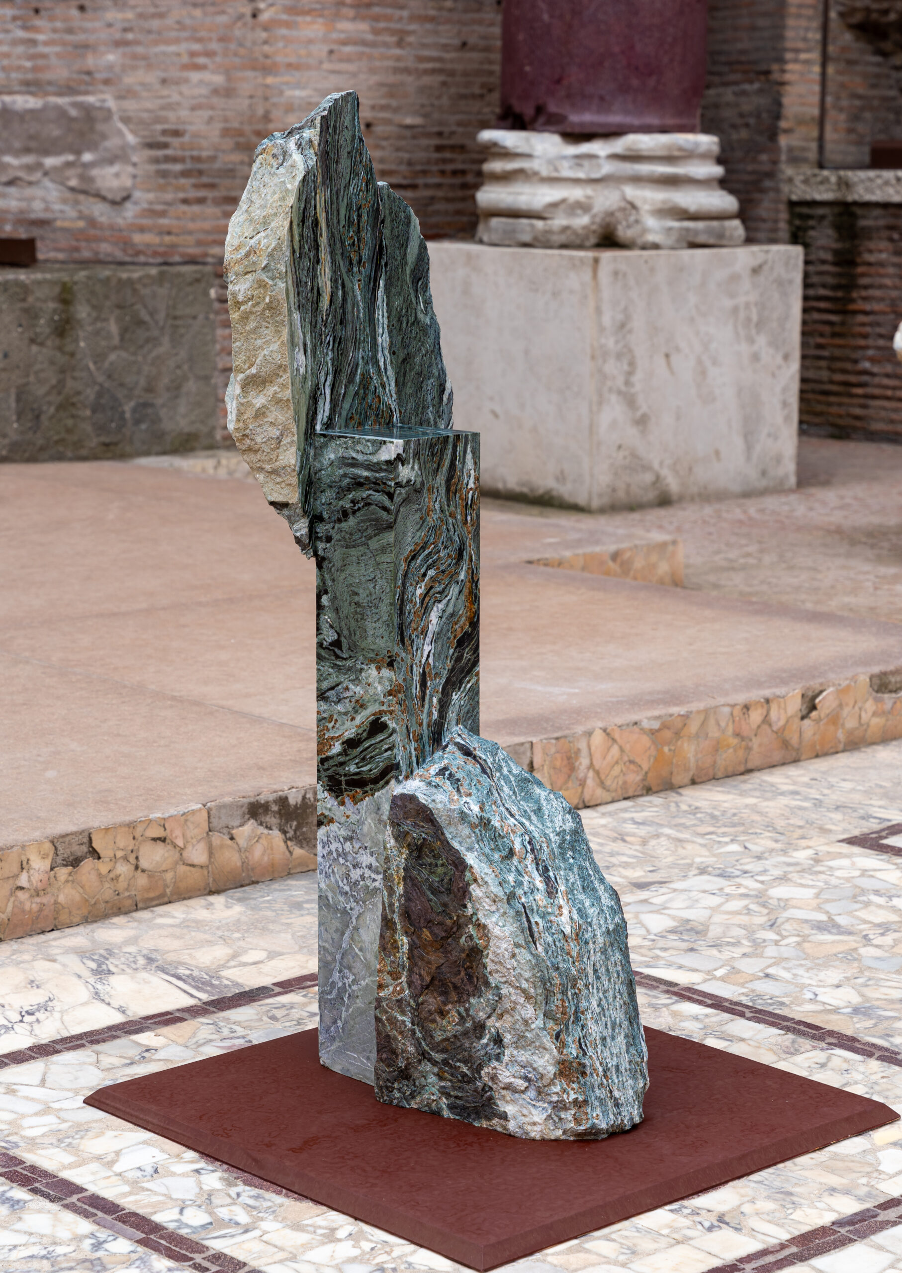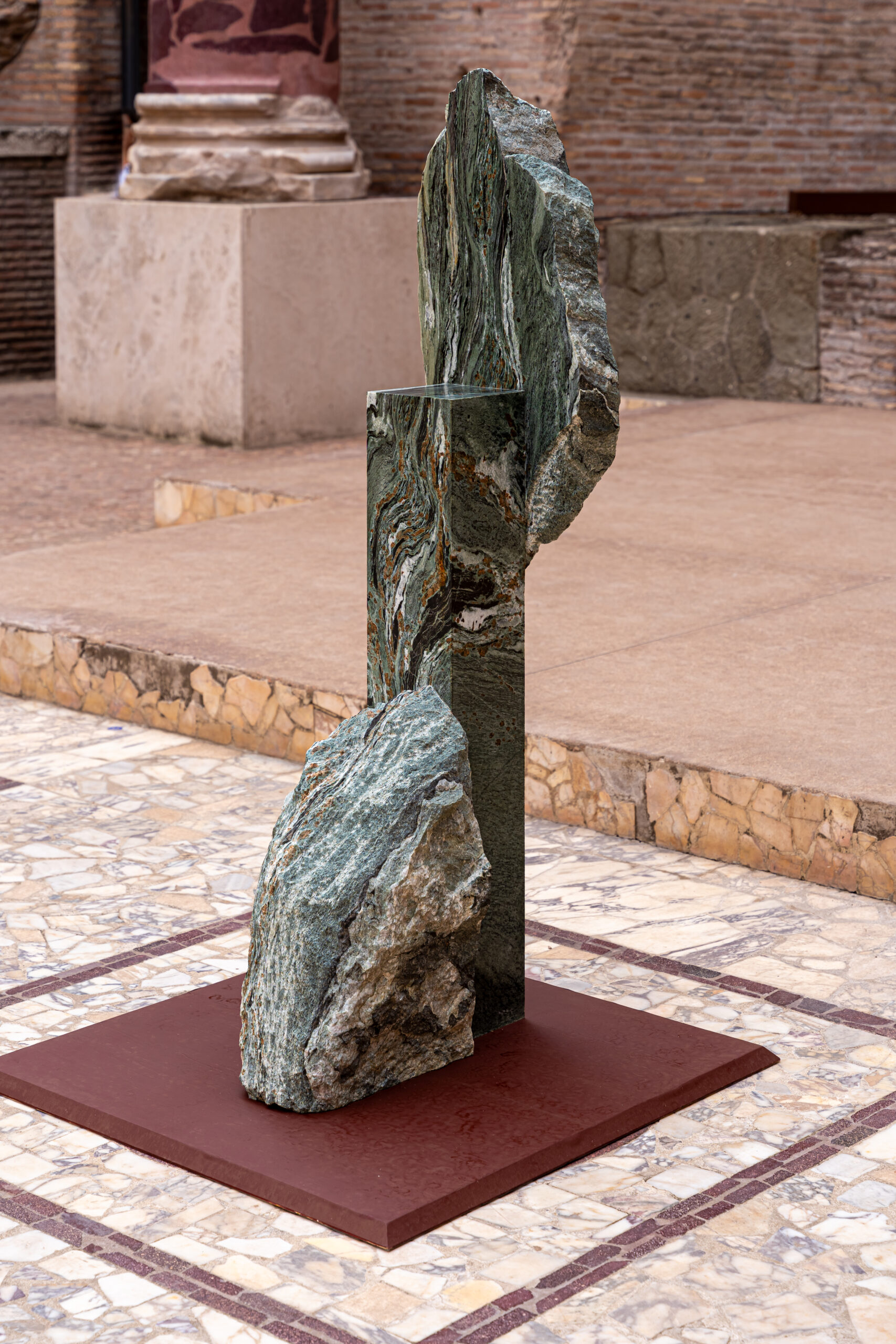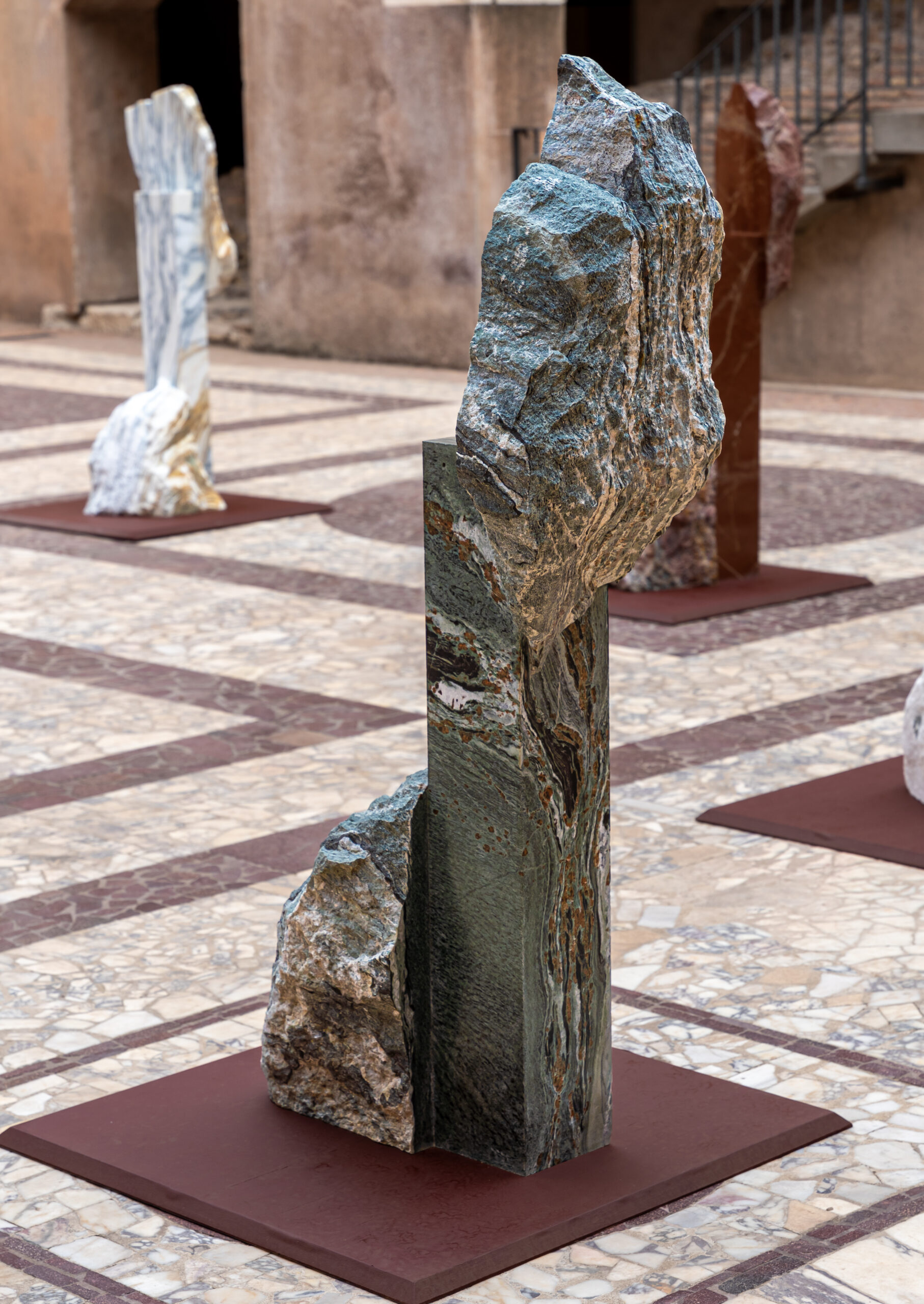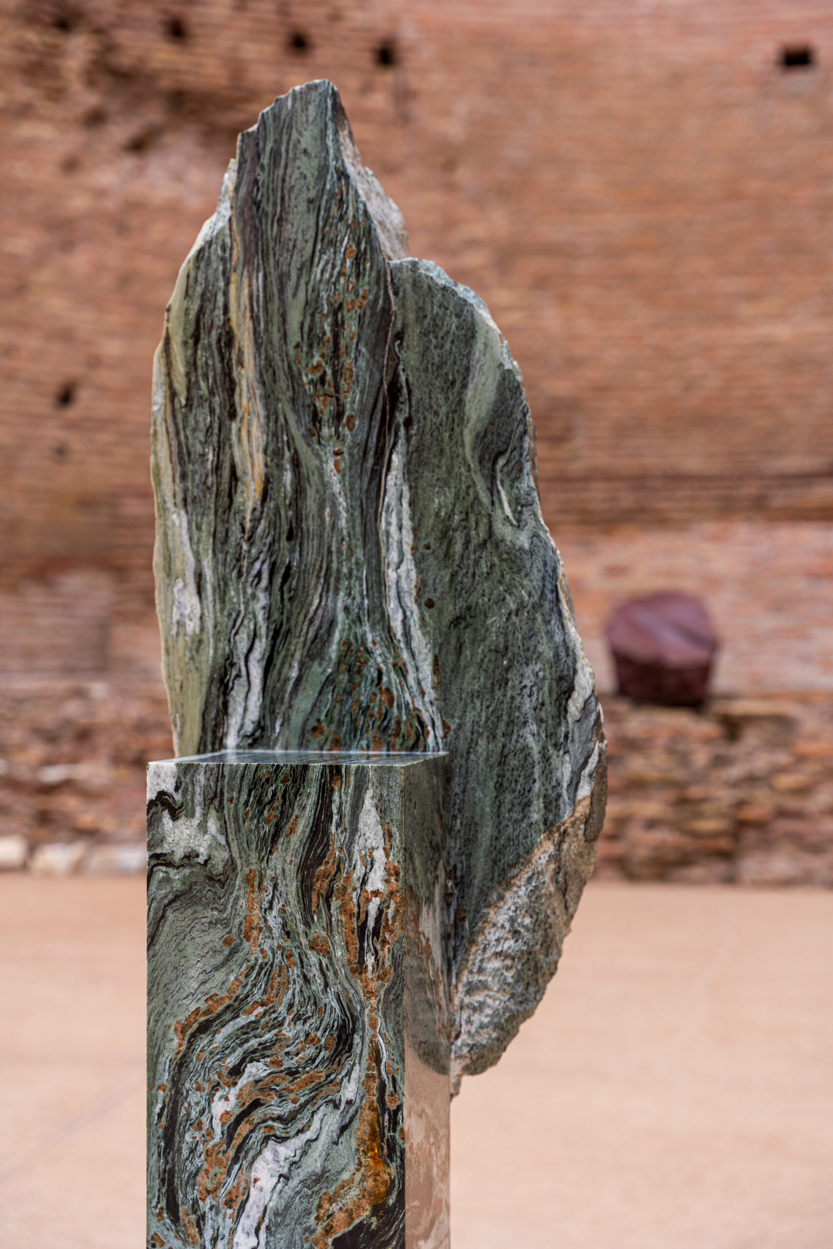 Chaque œuvre de la série « Korai » est de forme identique, mais est réalisée dans un marbre d’exception distincte : Cipollino d’Elbe, Fantastico d’Arni, Rosso Collemandina, Portoro, Bardiglio, le marbre statuaire de la carrière de Michel-Ange… Ces marbres sont typiques de l’époque de l’architecture romaine impériale, en profonde harmonie avec l’essence du lieu qui les abrite le temps de l’exposition : le Temple de Vénus et de Rome, immense bâtiment sacré inauguré en 136 après J.-C.
