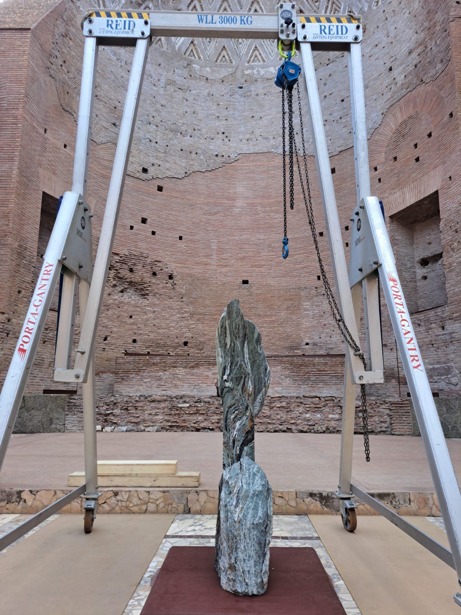 Certains des visuels de la sculpture ont été pris au moment de sa réalisation sur l’Ile d’Elbe. La poussière qui recouvre l’oeuvre à ce moment-là explique la différence de couleur avec les autres photographies.