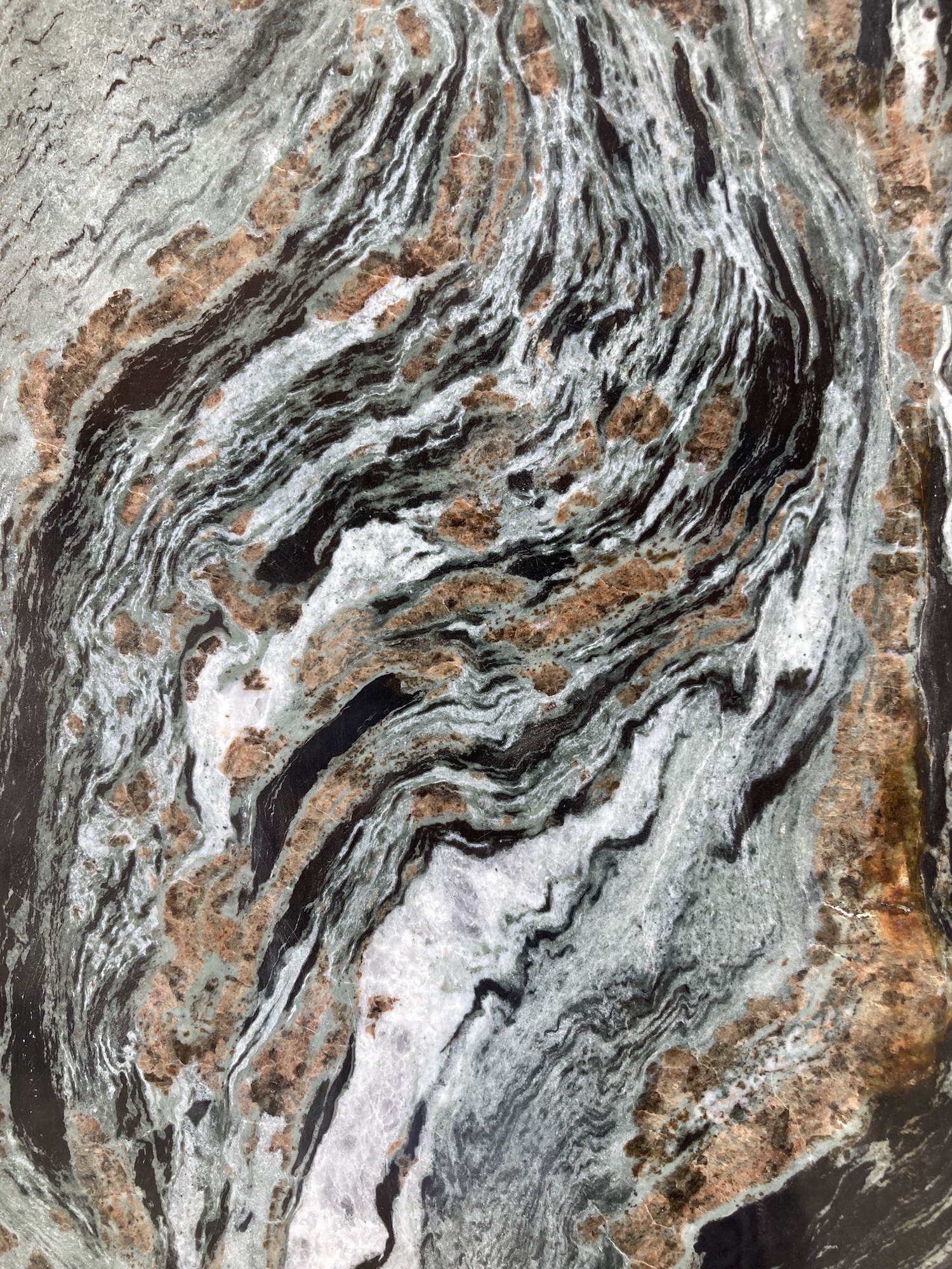 Le marbre Cipollino d’Elbe est également appelé ‘Vert Cipollino’ ou ‘Cipollino Verde’ en raison de son fond gris-vert. Il se caractérise également par des stries ondulantes de couleur blanche. Il a été nommé d’après le mot italien signifiant ‘oignon’ et a notamment été utilisé pour les bâtiments de la Rome impériale.