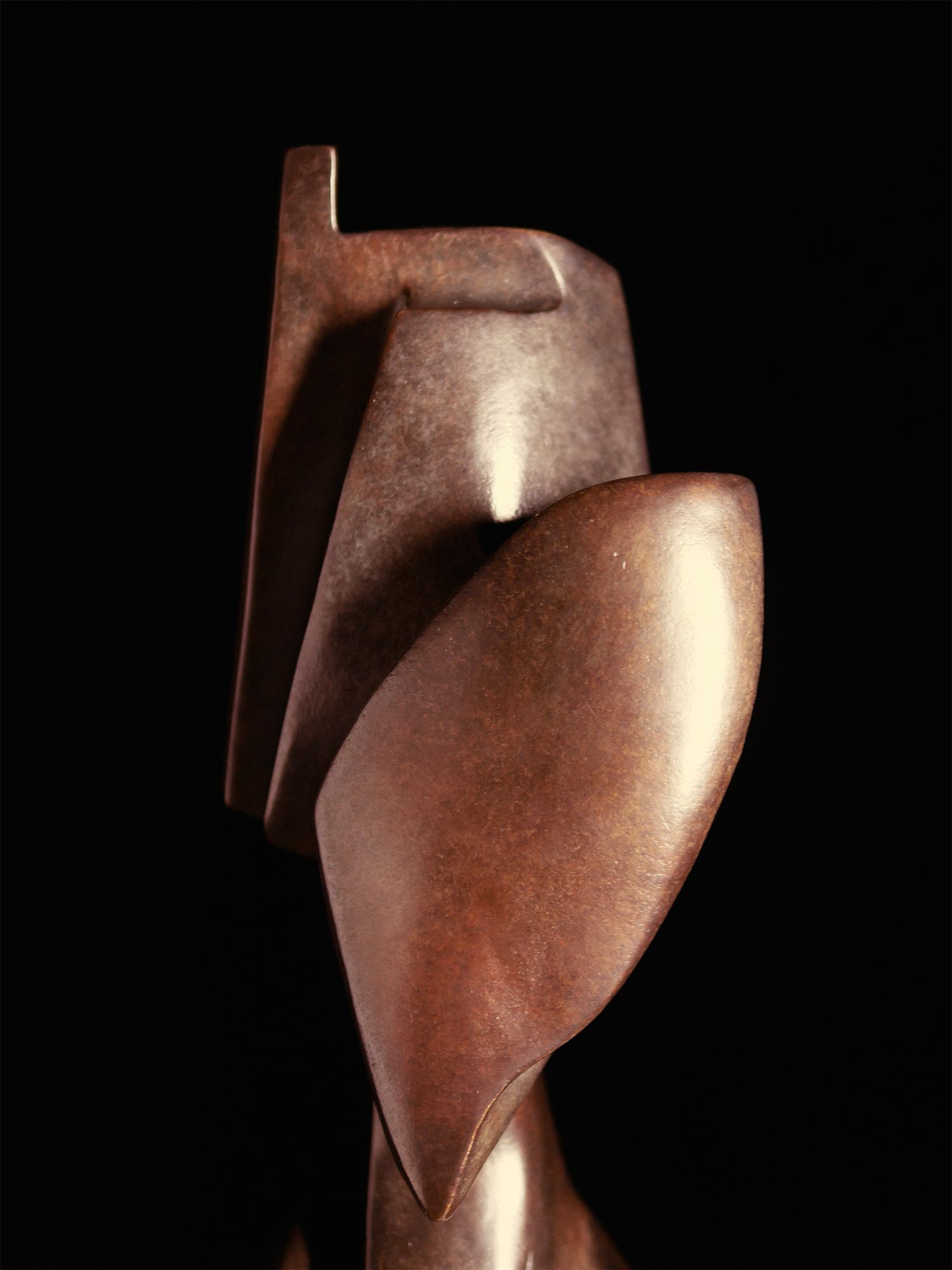 Antoine Vidal travaille principalement avec le bronze, dont il apprécie la noblesse, la force et l’aspect impérissable. Il accorde une grande attention au choix de la patine, privilégiant des teintes sobres, parfois aux aspects minéraux, afin de brouiller la perception du matériau. L’objectif est de permettre à la lumière de glisser sur la pièce, révélant son élégance fluide et sinueuse.