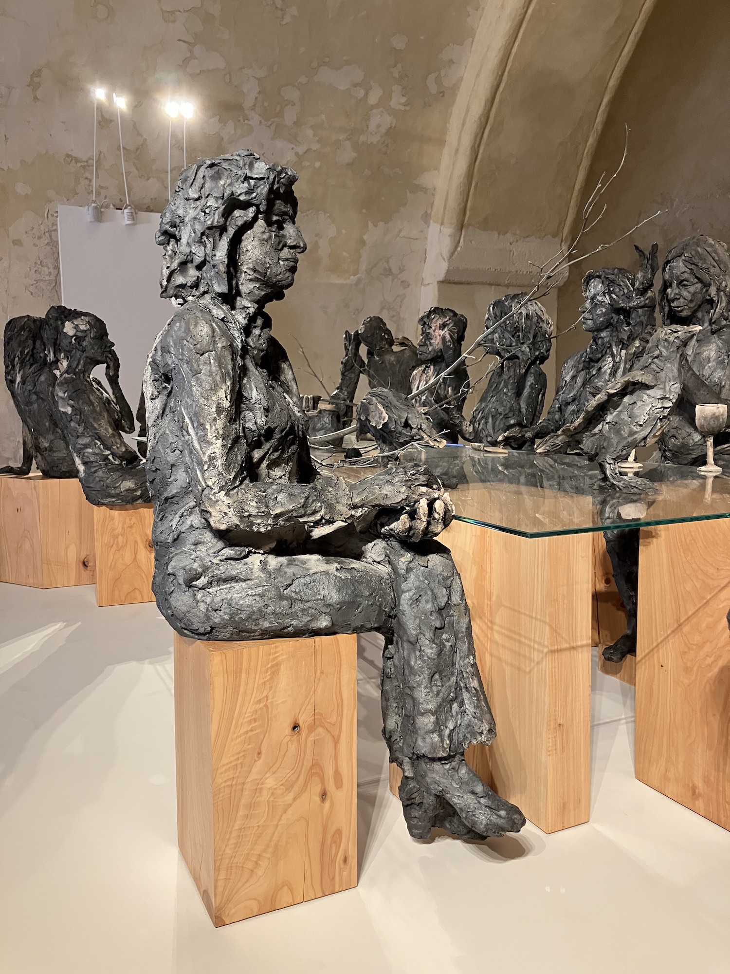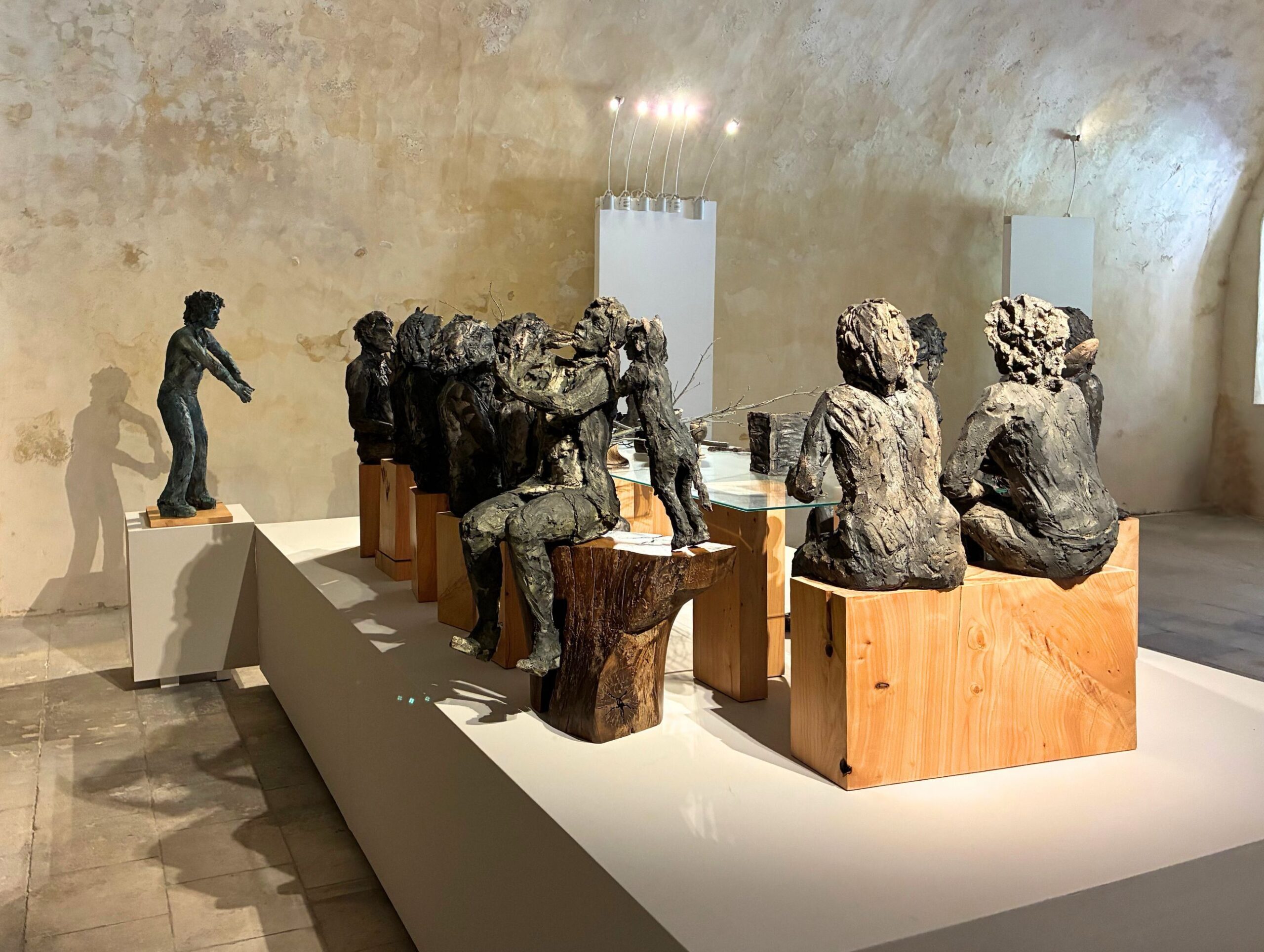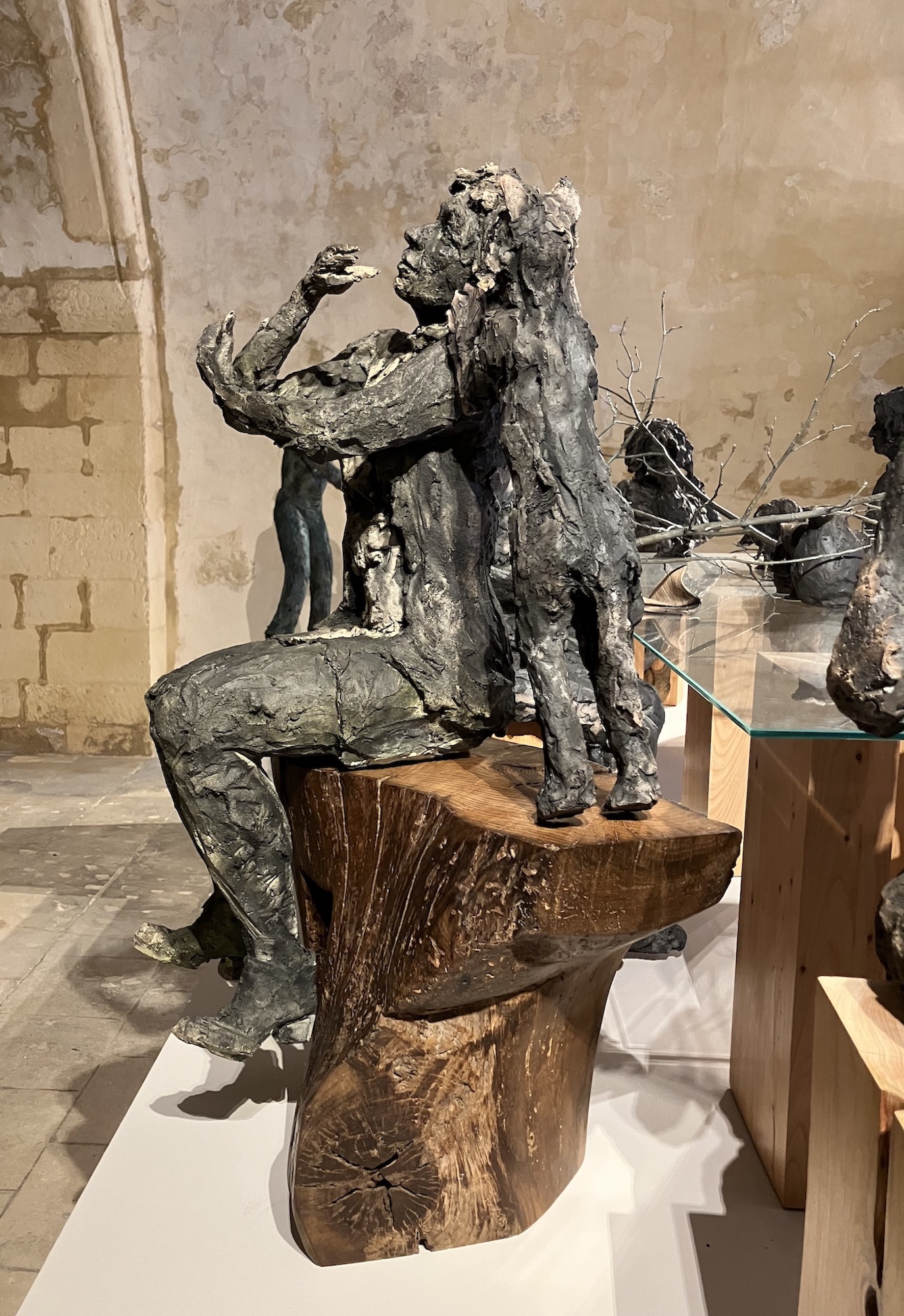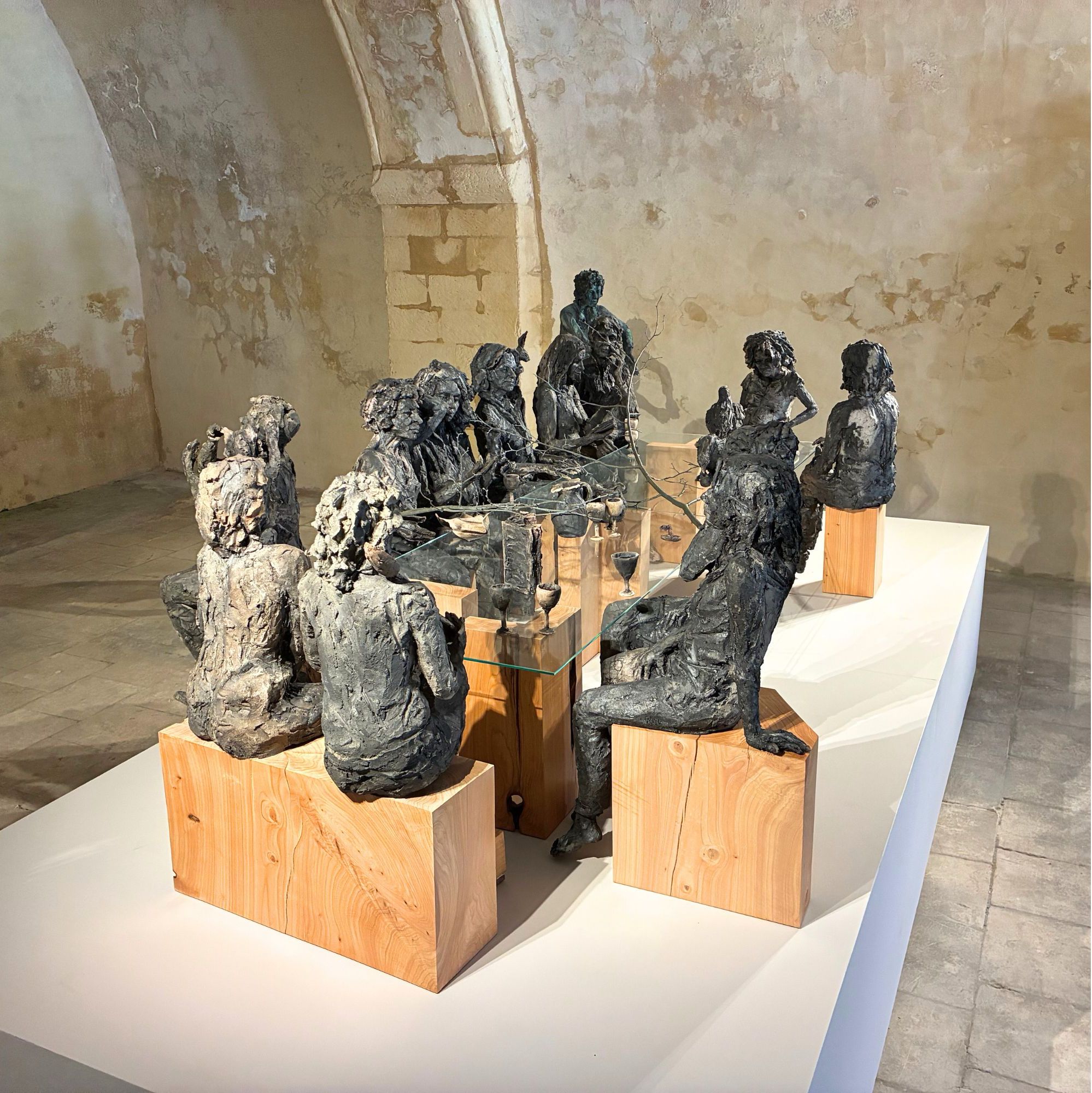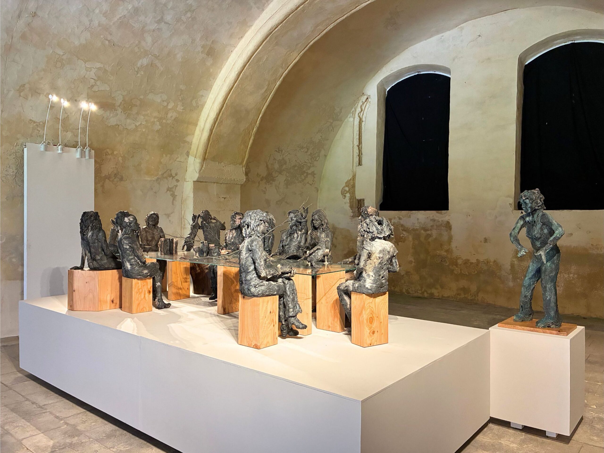 L’installation La table des Dames, à laquelle l’artiste travaille depuis plusieurs années, donne son nom à l’exposition personnelle de Cécile Raynal à l’Abbaye de Montivilliers, en Normandie (2025). Dans ce lieu historique où vécurent il y a longtemps femmes, sœurs et abbesses, la sculptrice a choisi de présenter des œuvres réunissant portraits de femmes et de bêtes. Les sculptures de Cécile Raynal ne cherchent pas à séduire, elles peuvent même parfois paraître inquiétantes. Rugueuses, elles portent en elles les traces d’un passage par la matière, par l’épreuve, et pourtant elles se dressent, debout, vivantes. Elles convoquent un monde où la part animale, féminine, instinctive ou rebelle est assumée comme une force essentielle. Dans les espaces restaurés de l’Abbaye, l’exposition retrace les quinze dernières années du parcours singulier de l’artiste française (plus d’informations sur cette exposition ici).