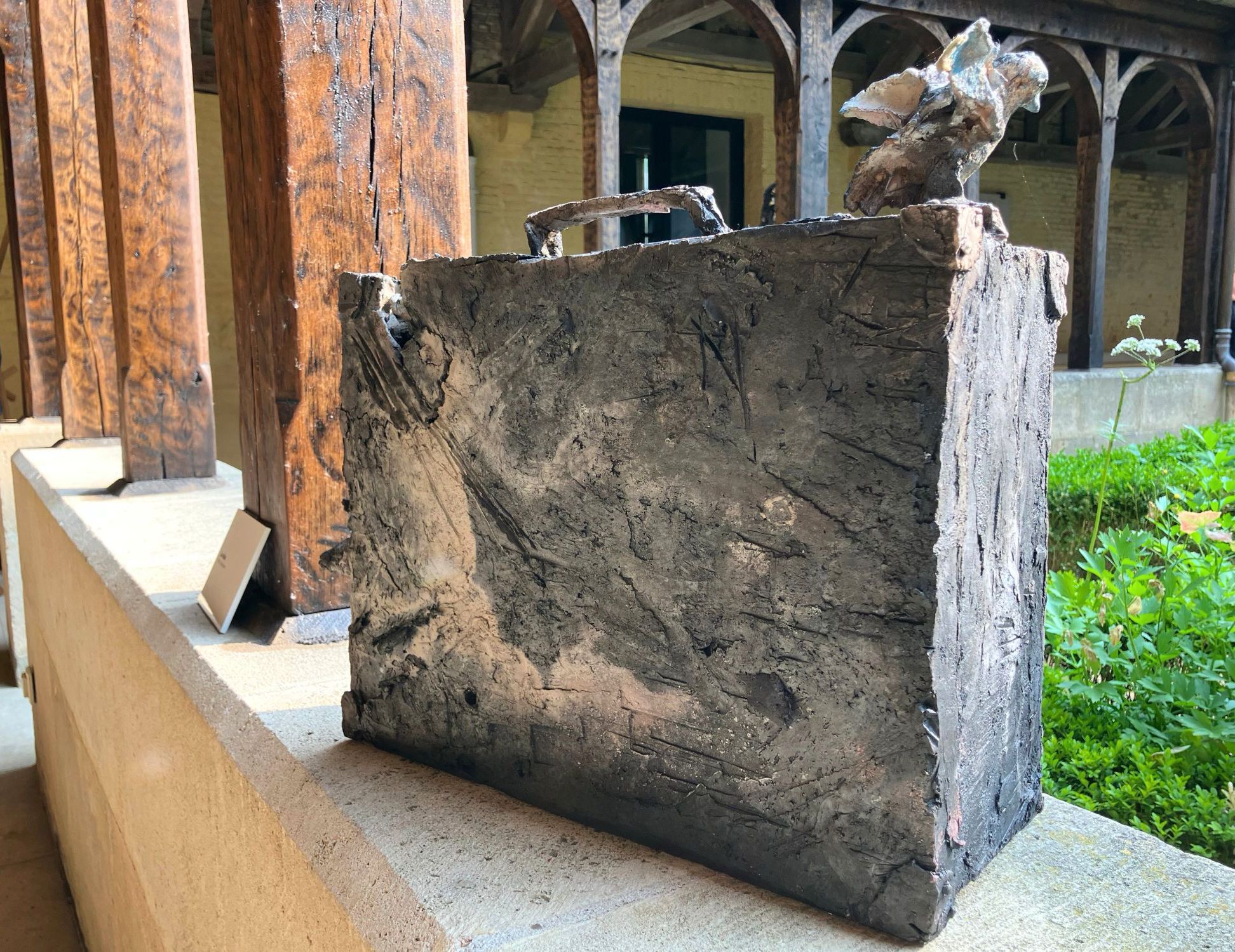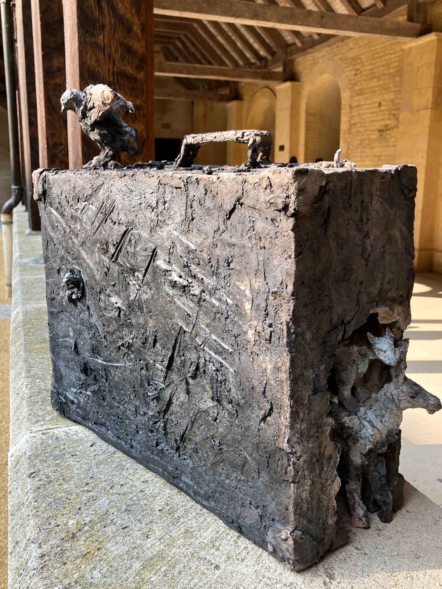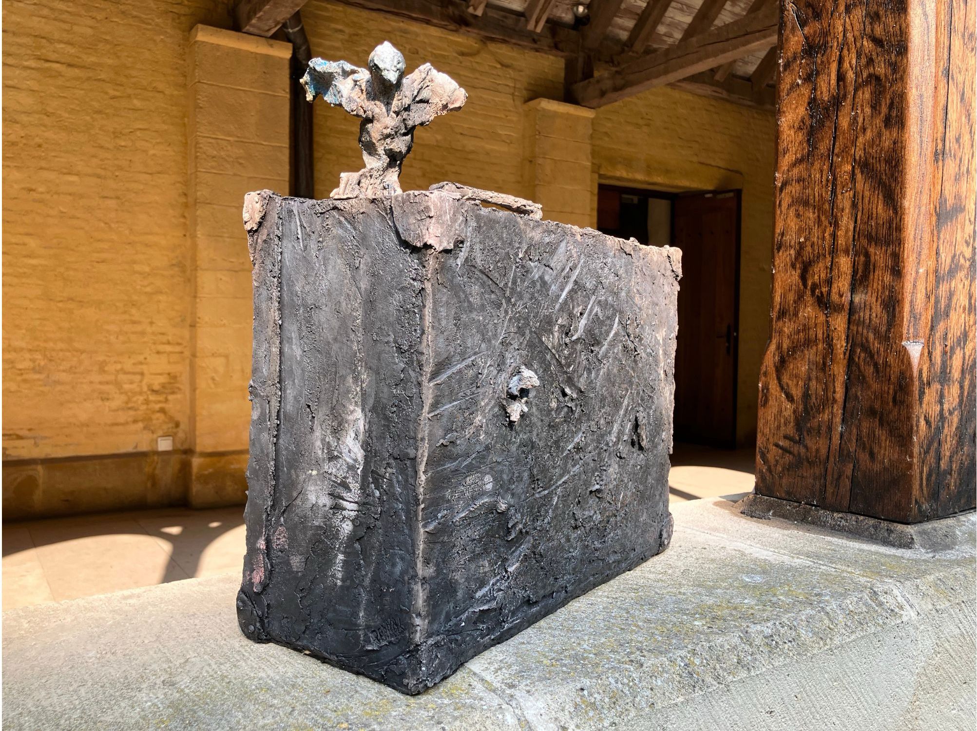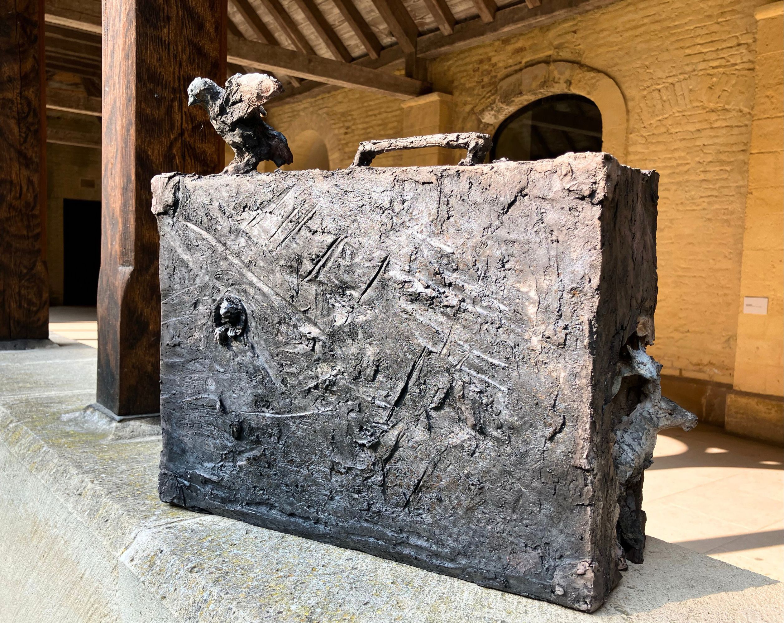 La valise est une sculpture en grès enfumé de l’artiste Française contemporaine Cécile Raynal. Cette sculpture représente une valise rectangulaire d’où émergent des animaux, oiseaux, vaches, ânes, et d’autres encore.