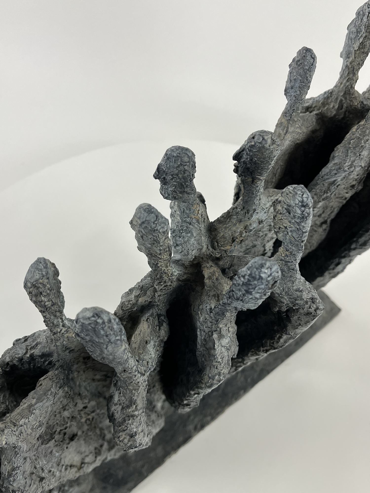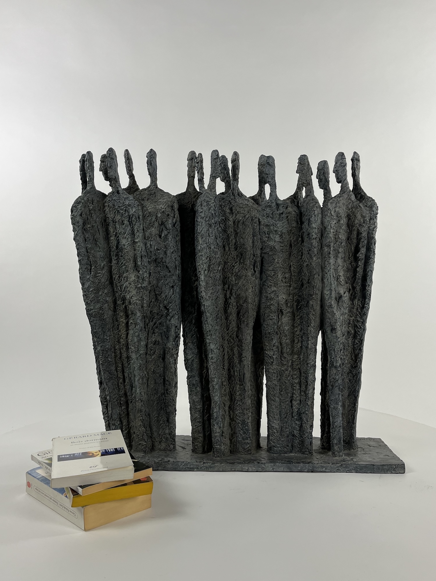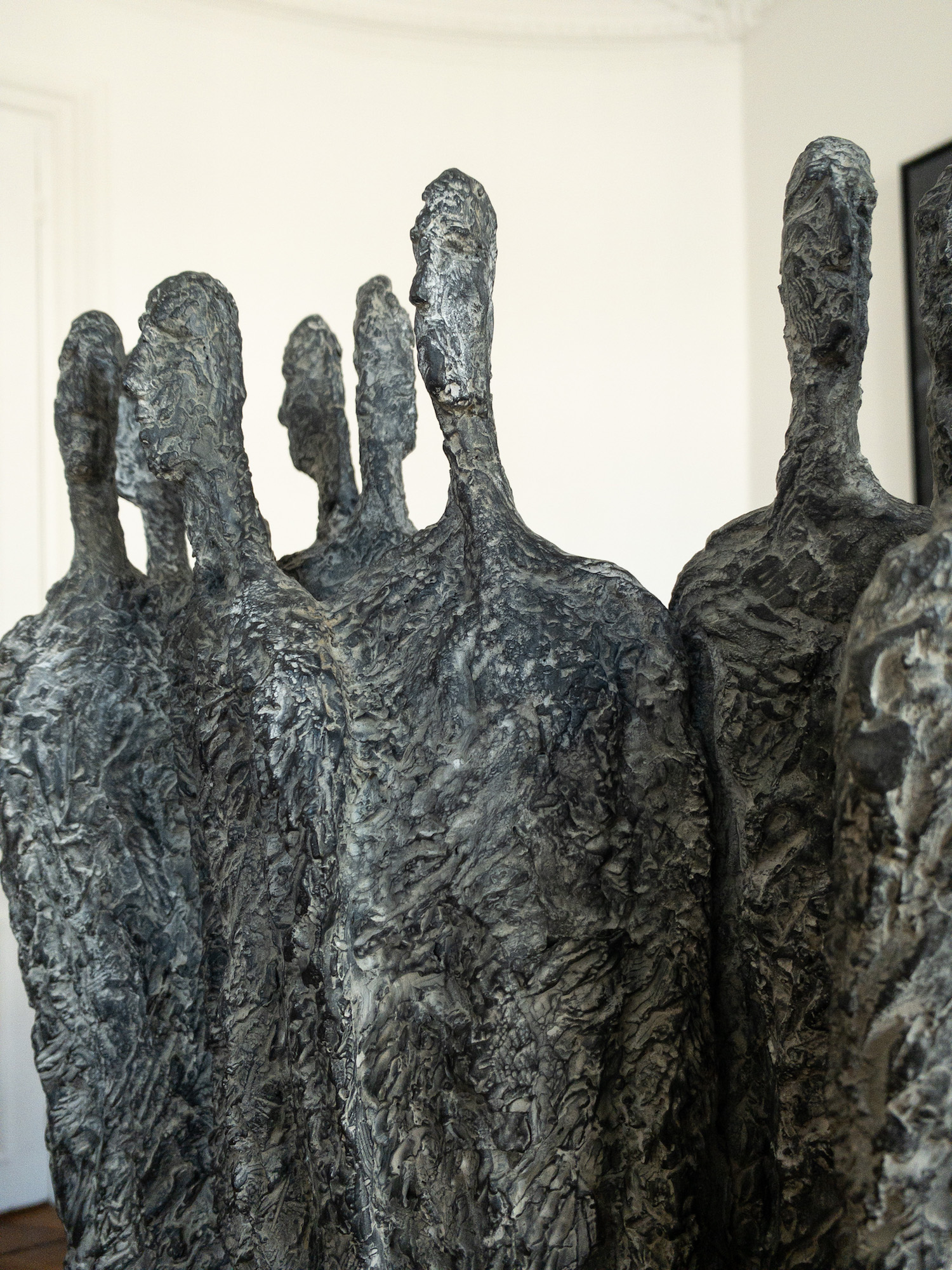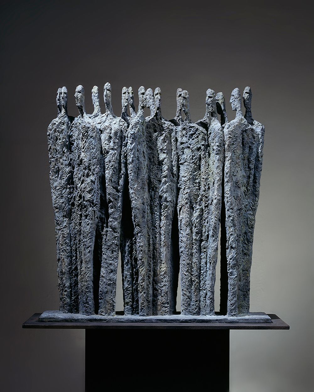 Cette sculpture représente une foule au sein de laquelle aucun mot, ni regard ne sont échangés. Cette personnification de l’indifférence laisse ainsi au corps en tant que motif un large espace de déploiement de son sens poétique et en fait point de départ absolu de la recherche de l’artiste, dont le développement tendra ensuite vers l’abstrait.