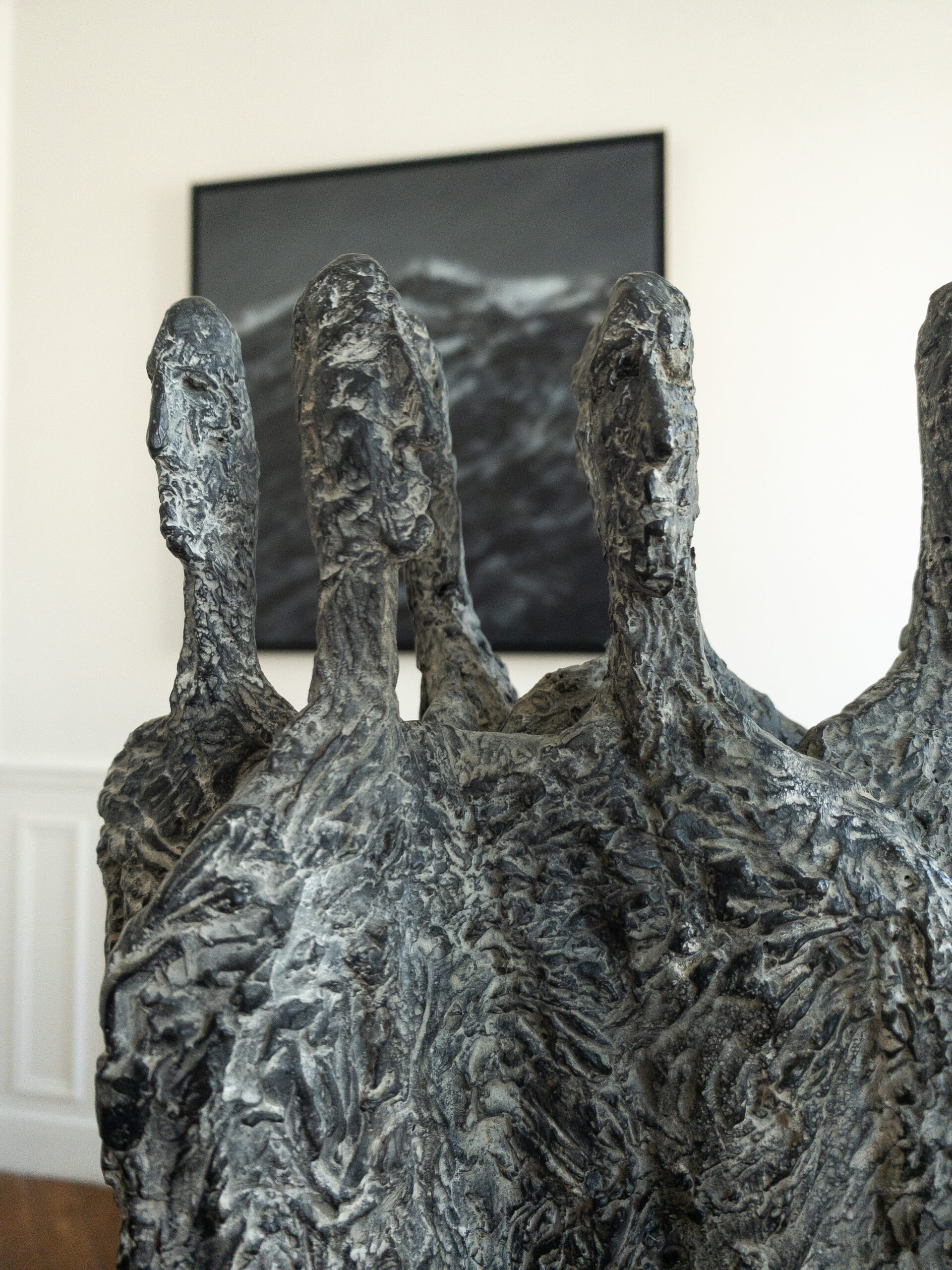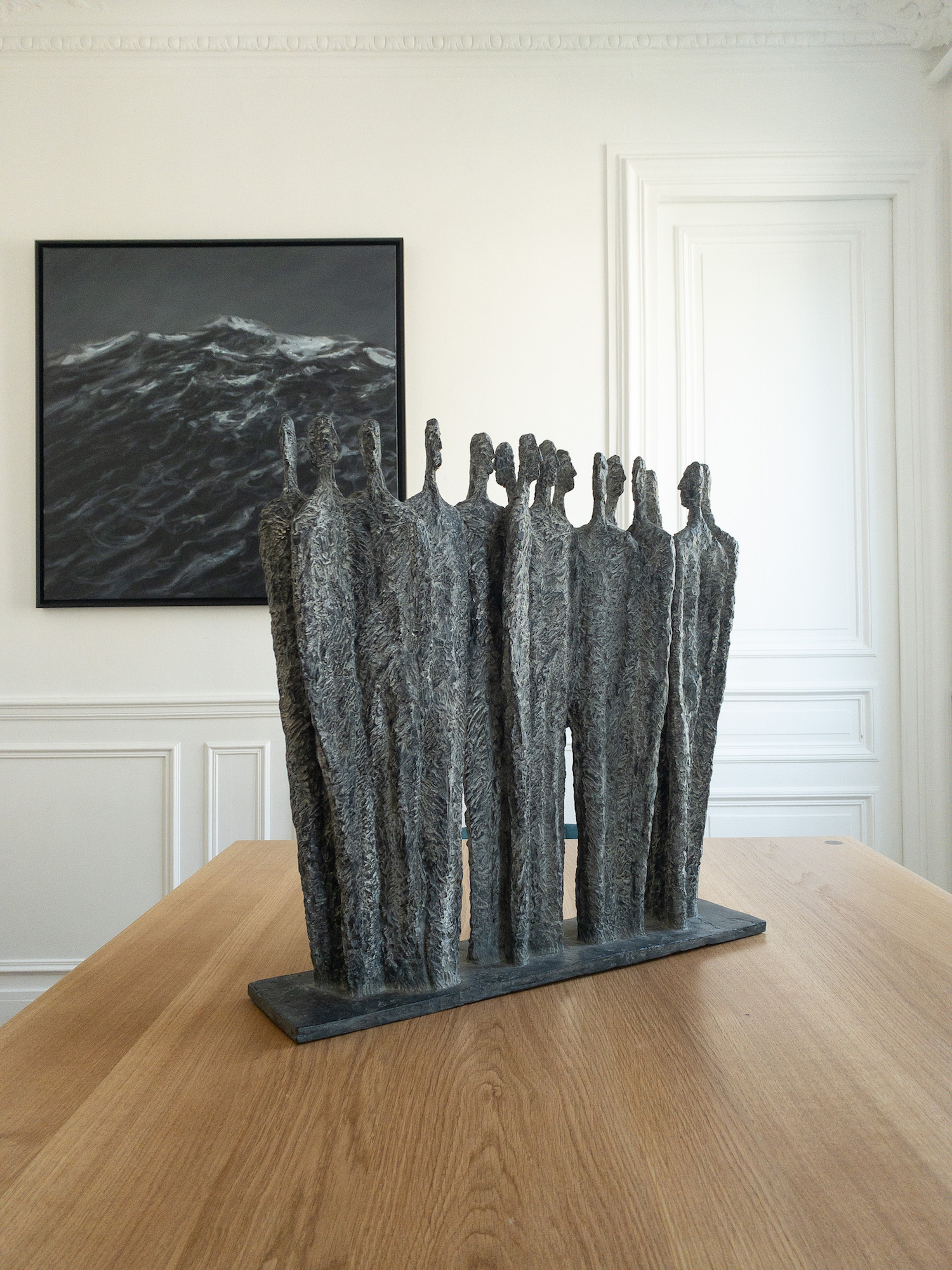 L’assemblée est une sculpture en bronze de l’artiste française Martine Demal, issue de la série Formes Premières.