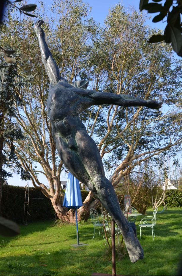 Le Grand Danseur IV est une sculpture monumentale en bronze de l’artiste contemporain français Yann Guillon (dimensions : 250 cm × 150 cm × 50 cm). Elle représente un corps masculin nu, saisi en train de réaliser un saut de danse classique.