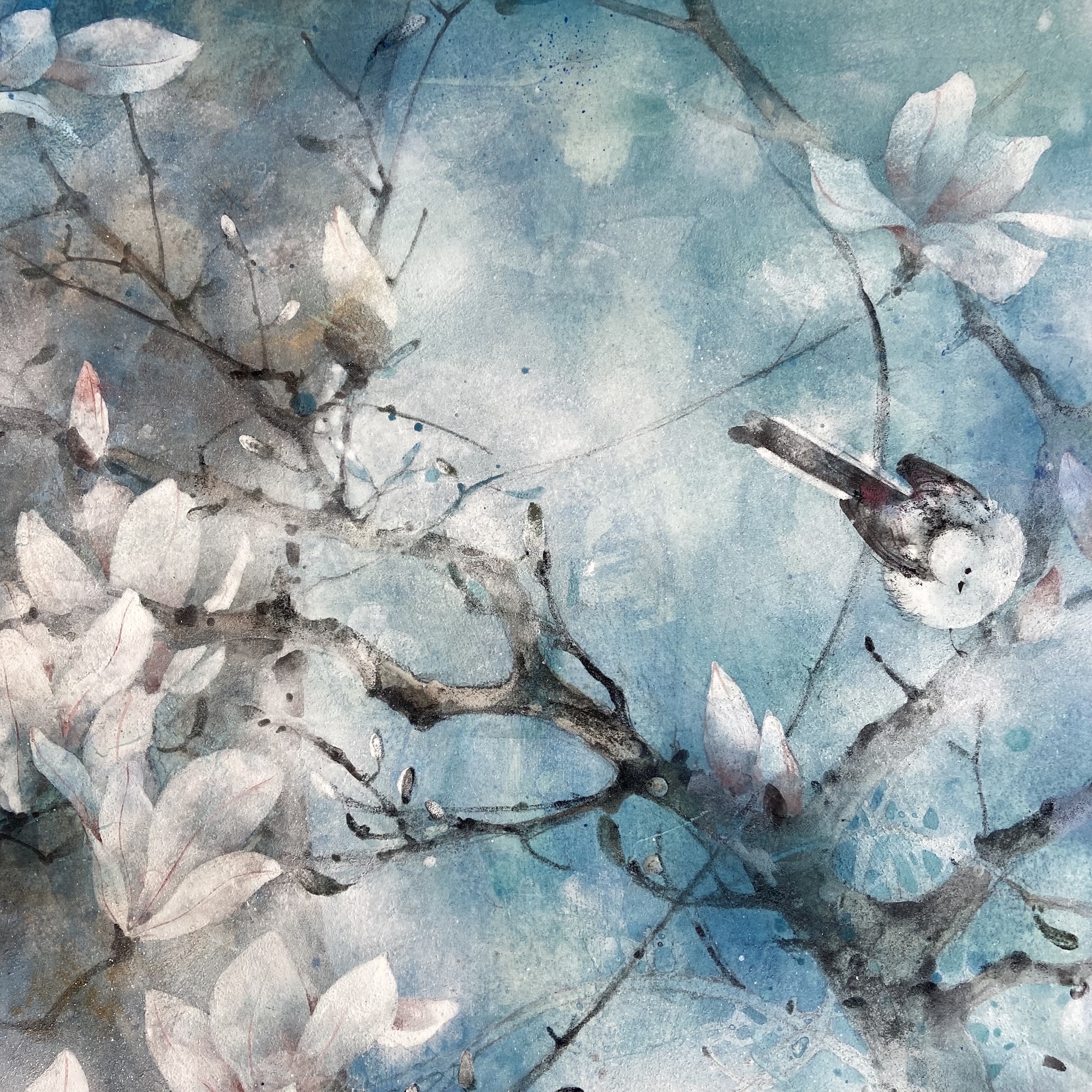 L’artiste puise son inspiration dans le sentiment intime qu’elle éprouve envers la nature. Ses tableaux (des compositions florales, des morceaux de forêts, quelques animaux), témoignent de ce sentiment. Elle exprime cette sensibilité à travers un langage esthétique maitrisé et délicat.