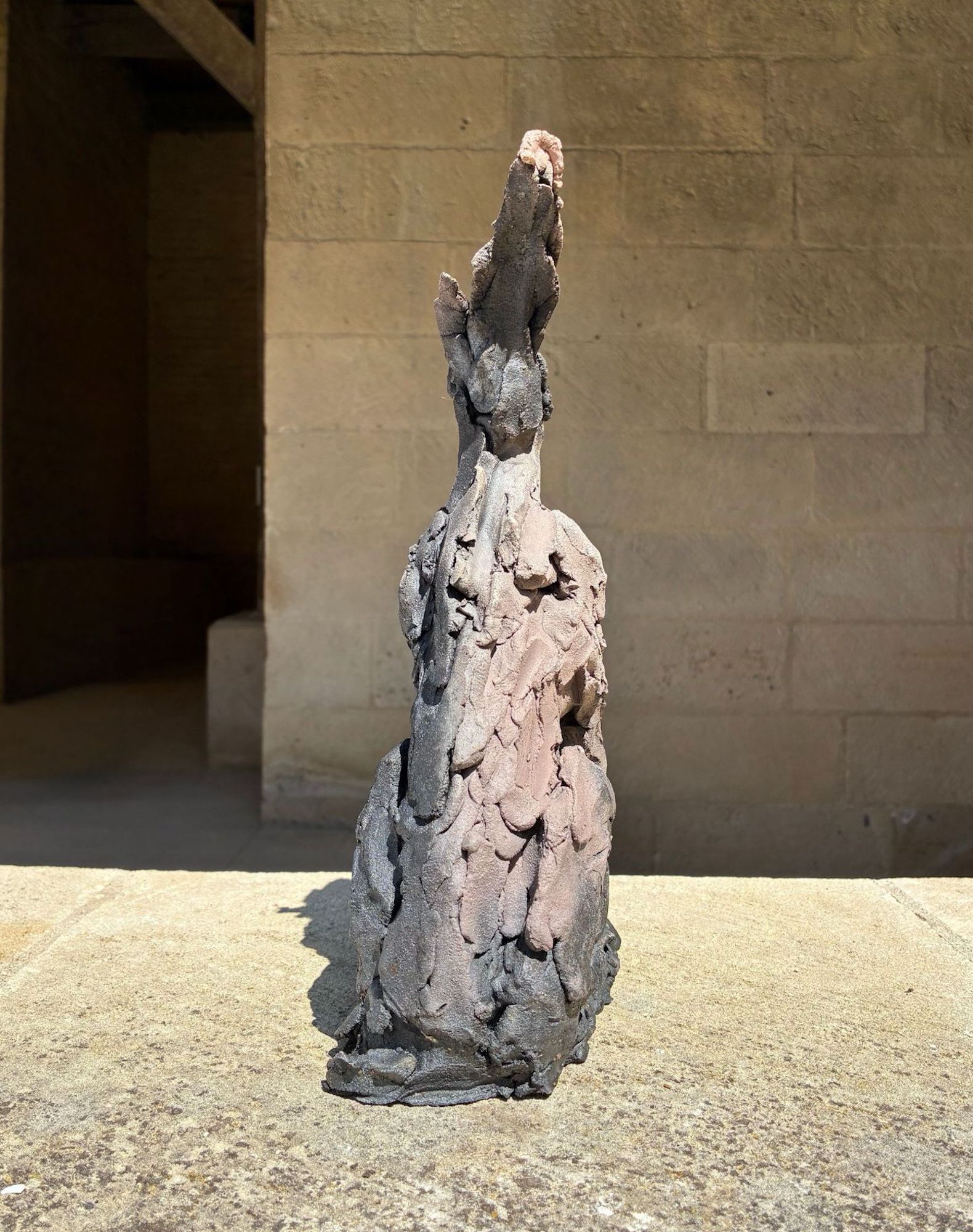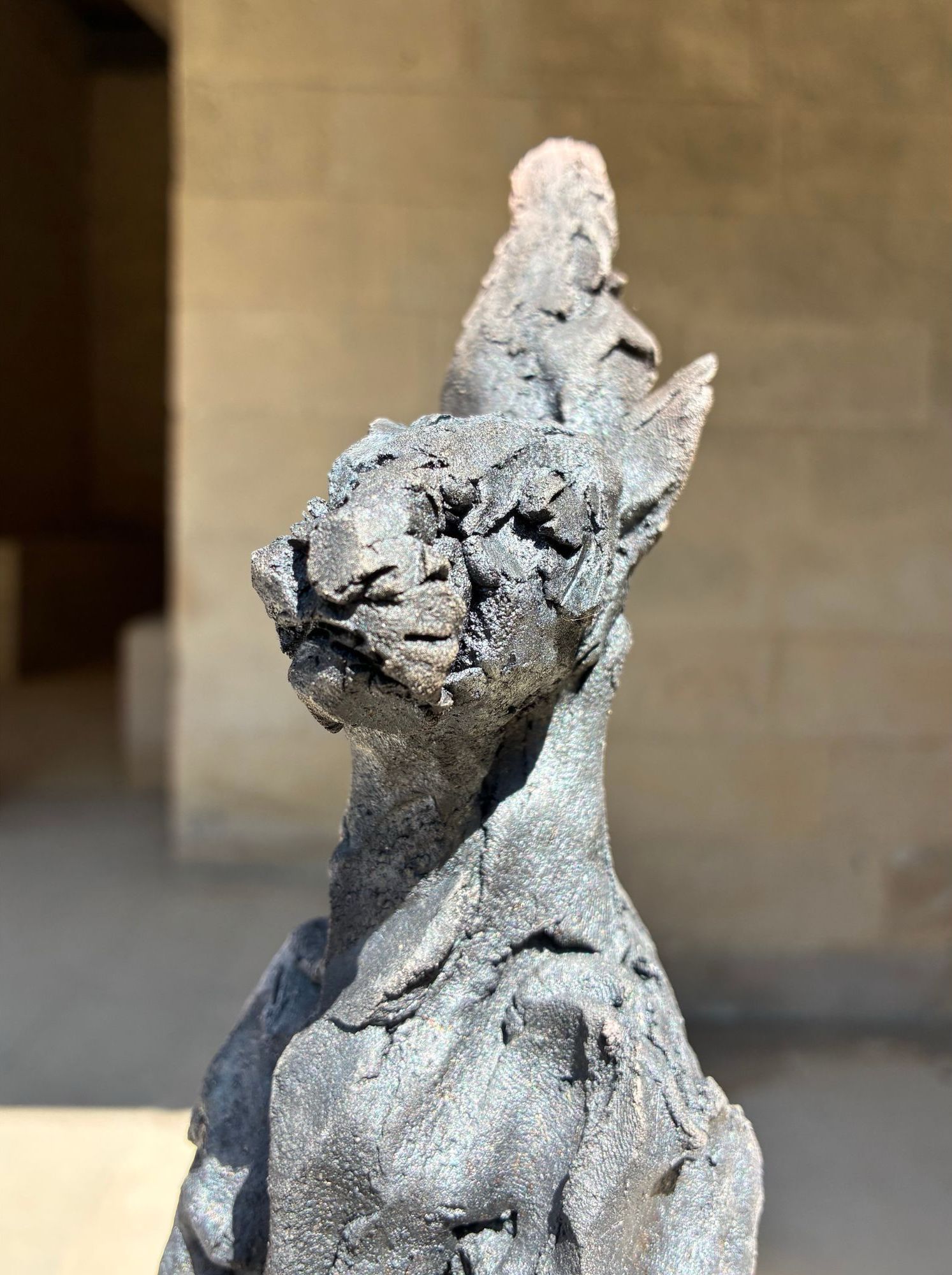 L’installation Les bêtes a été exposée à l’exposition personnelle de Cécile Raynal, À la table des Dames, à l’Abbaye de Montivilliers, en Normandie (2025). Dans ce lieu historique où vécurent il y a longtemps femmes, sœurs et abbesses, la sculptrice a choisi de présenter des œuvres réunissant portraits de femmes et de bêtes. Les sculptures de Cécile Raynal ne cherchent pas à séduire, elles peuvent même parfois paraître inquiétantes. Rugueuses, elles portent en elles les traces d’un passage par la matière, par l’épreuve, et pourtant elles se dressent, debout, vivantes. Elles convoquent un monde où la part animale, féminine, instinctive ou rebelle est assumée comme une force essentielle. Dans les espaces restaurés de l’Abbaye, l’exposition retrace les quinze dernières années du parcours singulier de l’artiste française (plus d’informations sur cette exposition ici).