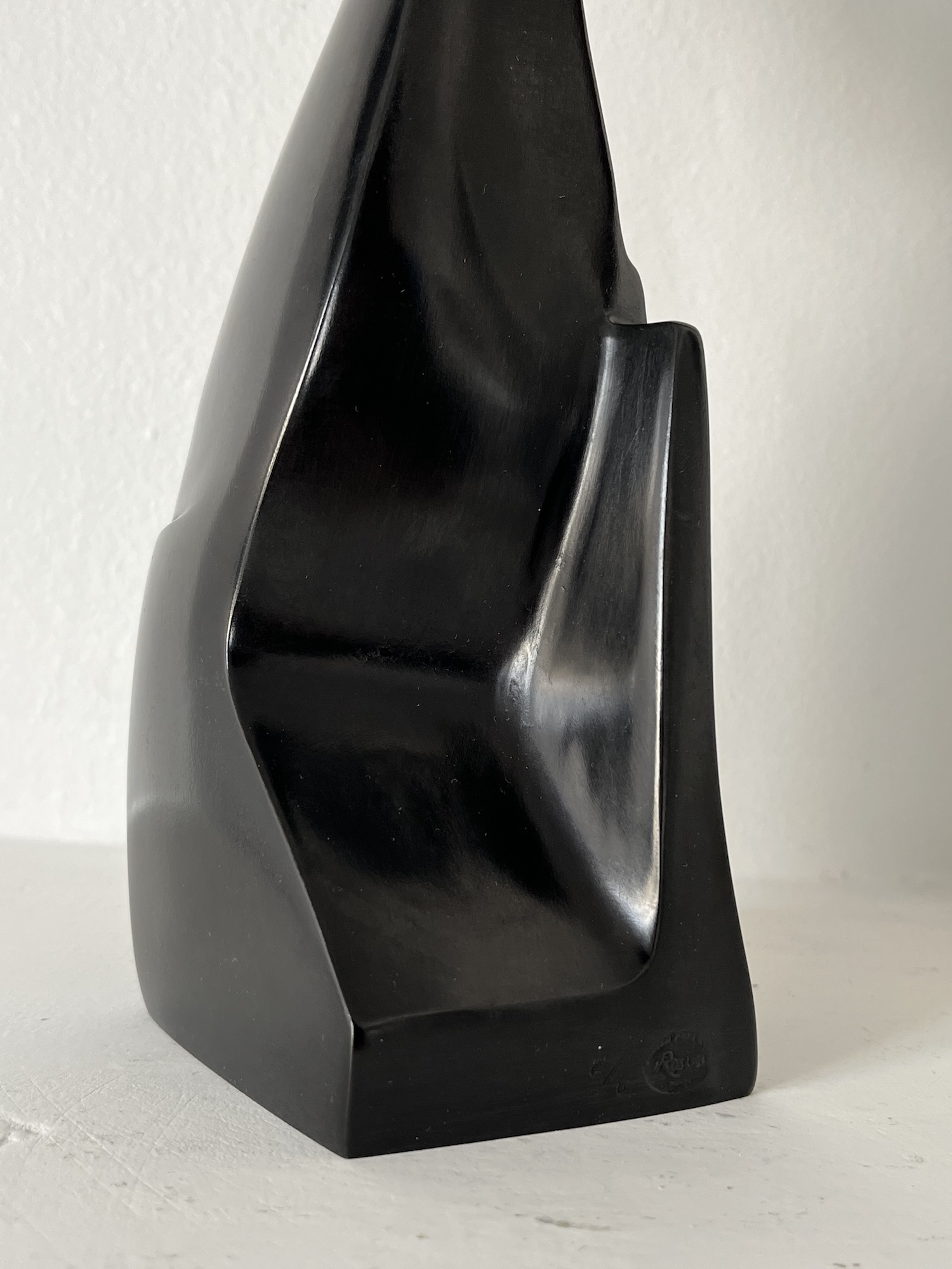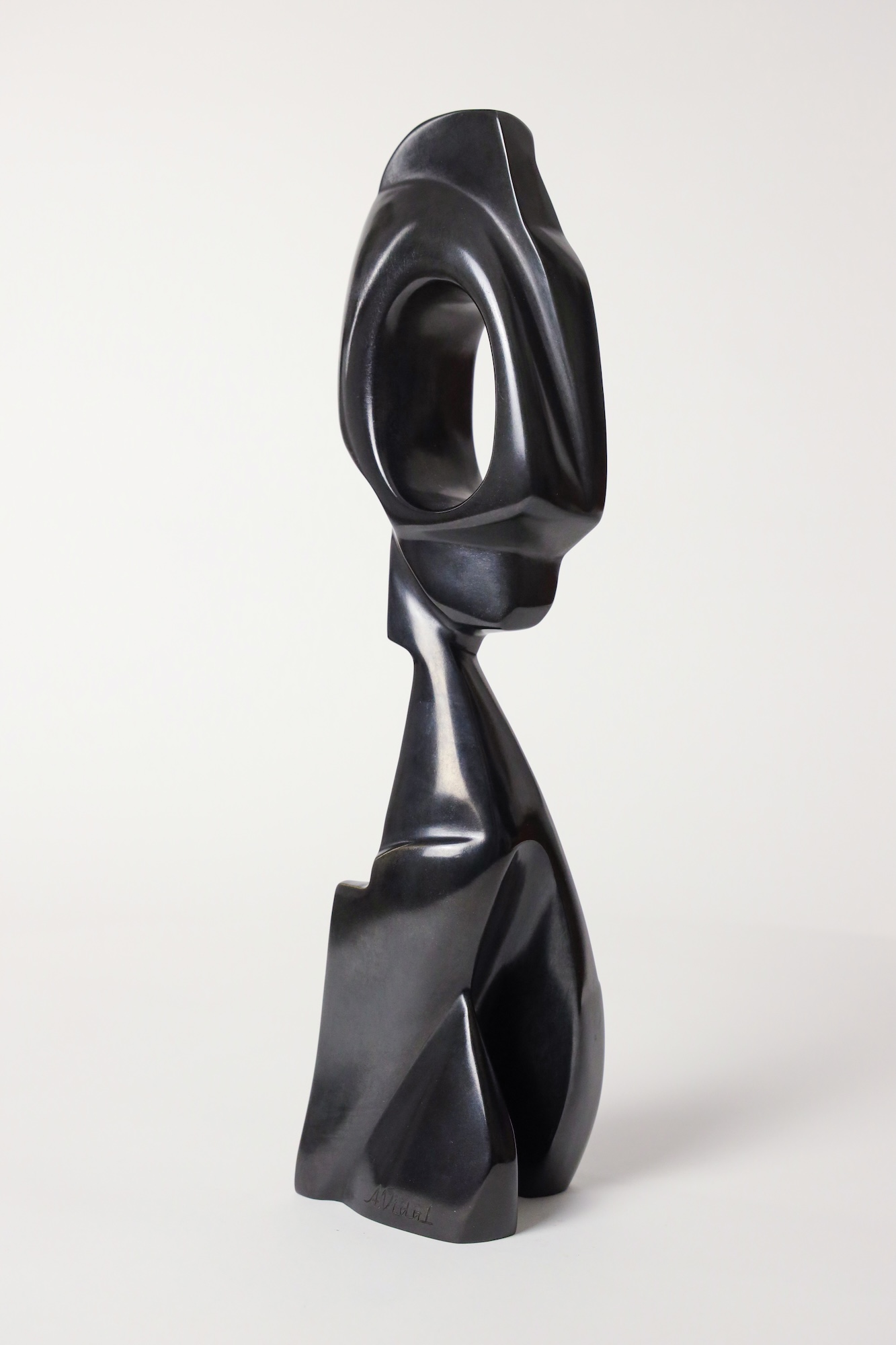 Antoine Vidal travaille principalement avec le bronze, dont il apprécie la noblesse, la force et l’aspect impérissable. Il accorde une grande attention au choix de la patine, privilégiant des teintes sobres, parfois aux aspects minéraux, afin de brouiller la perception du matériau. L’objectif est de permettre à la lumière de glisser sur la pièce, révélant son élégance fluide et sinueuse.