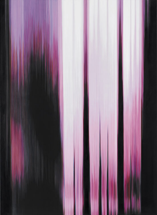Light’n’Lines No.38 (remember me) est une peinture abstraite de l’artiste allemande contemporaine Doris Marten. Elle présente une composition saisissante de lignes verticales dans des tonalités vibrantes de rouge, de violet, de noir et de blanc, ponctuées de subtils accents violet-noir et d’orange-rouge vifs. Cette œuvre carrée est réalisée à l’huile sur Alu-Dibond.