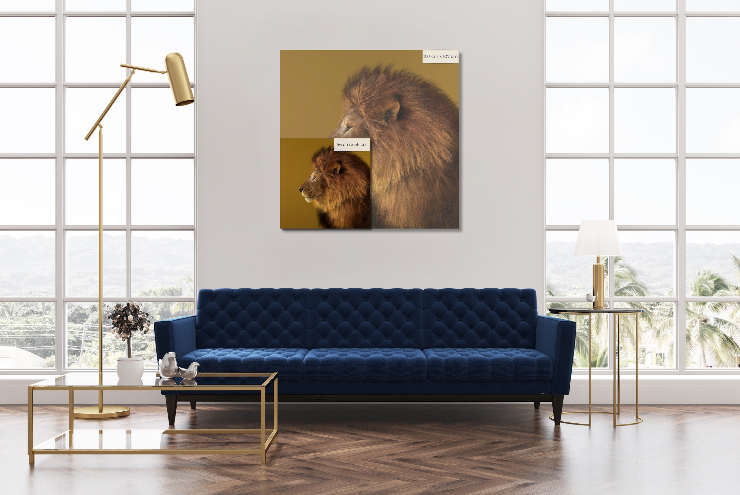 Lion, Gold Background, 2022 est une photographie de l’artiste américain Brad Wilson. Ce tirage d’art représente un orang-outan.