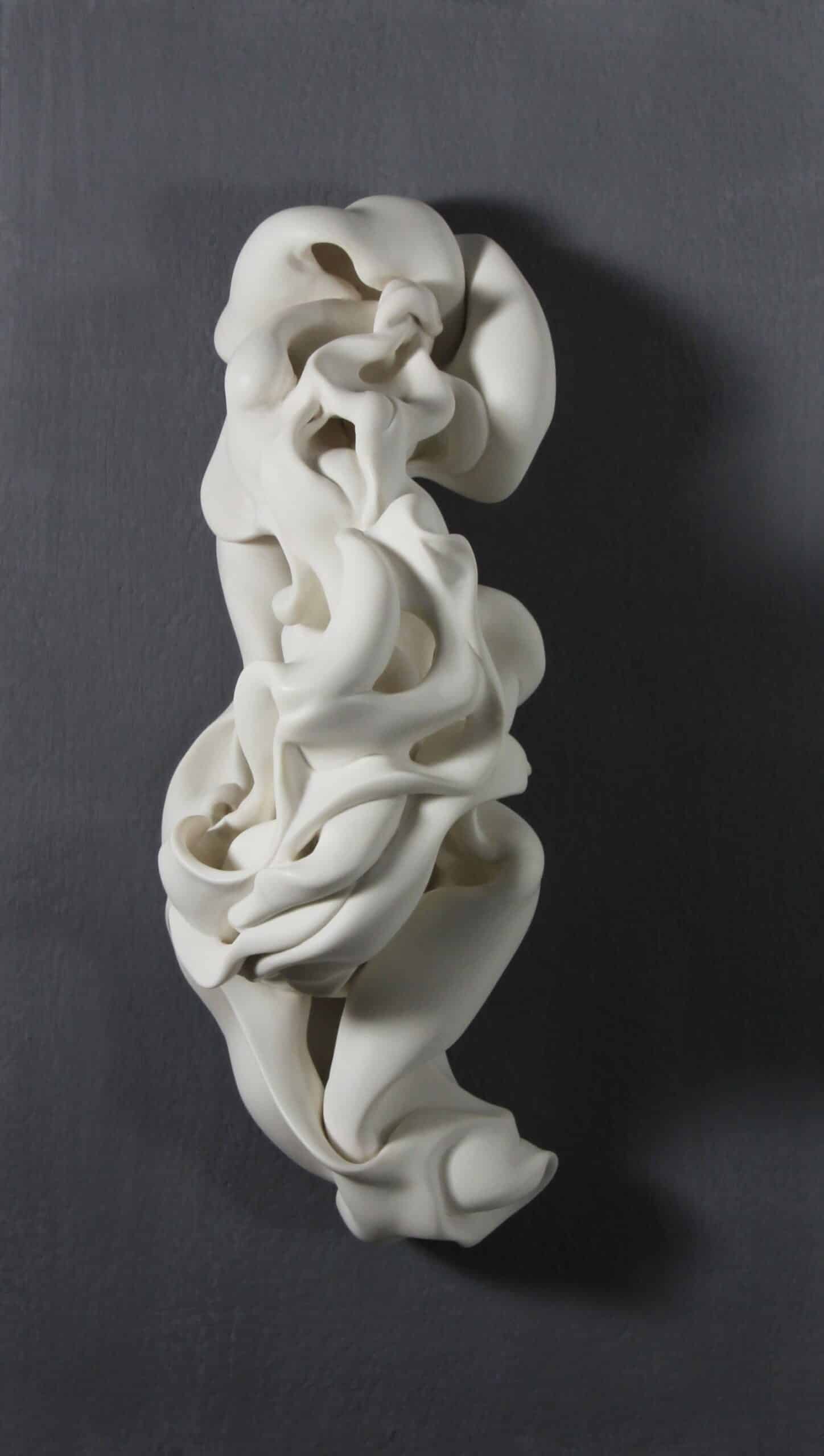 Motion est une sculpture murale en porcelaine sablée de l’artiste contemporaine Sharon Brill.