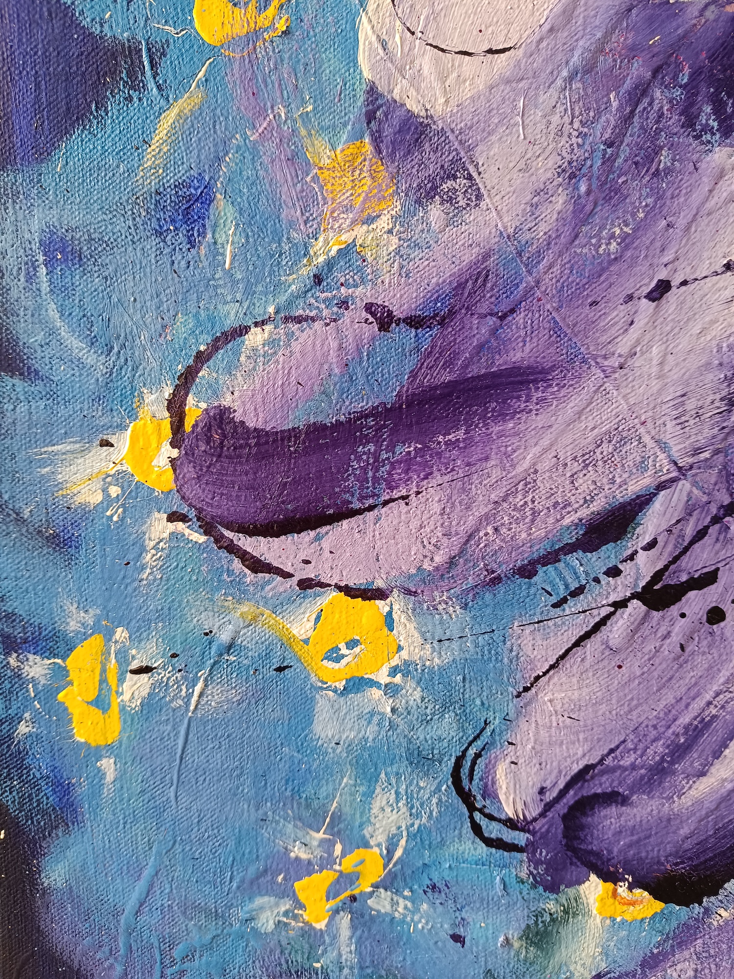 | Étiquettes | Art et plantes|bleu|fleur|Peinture couleurs vives|Tableau grand format|violet |