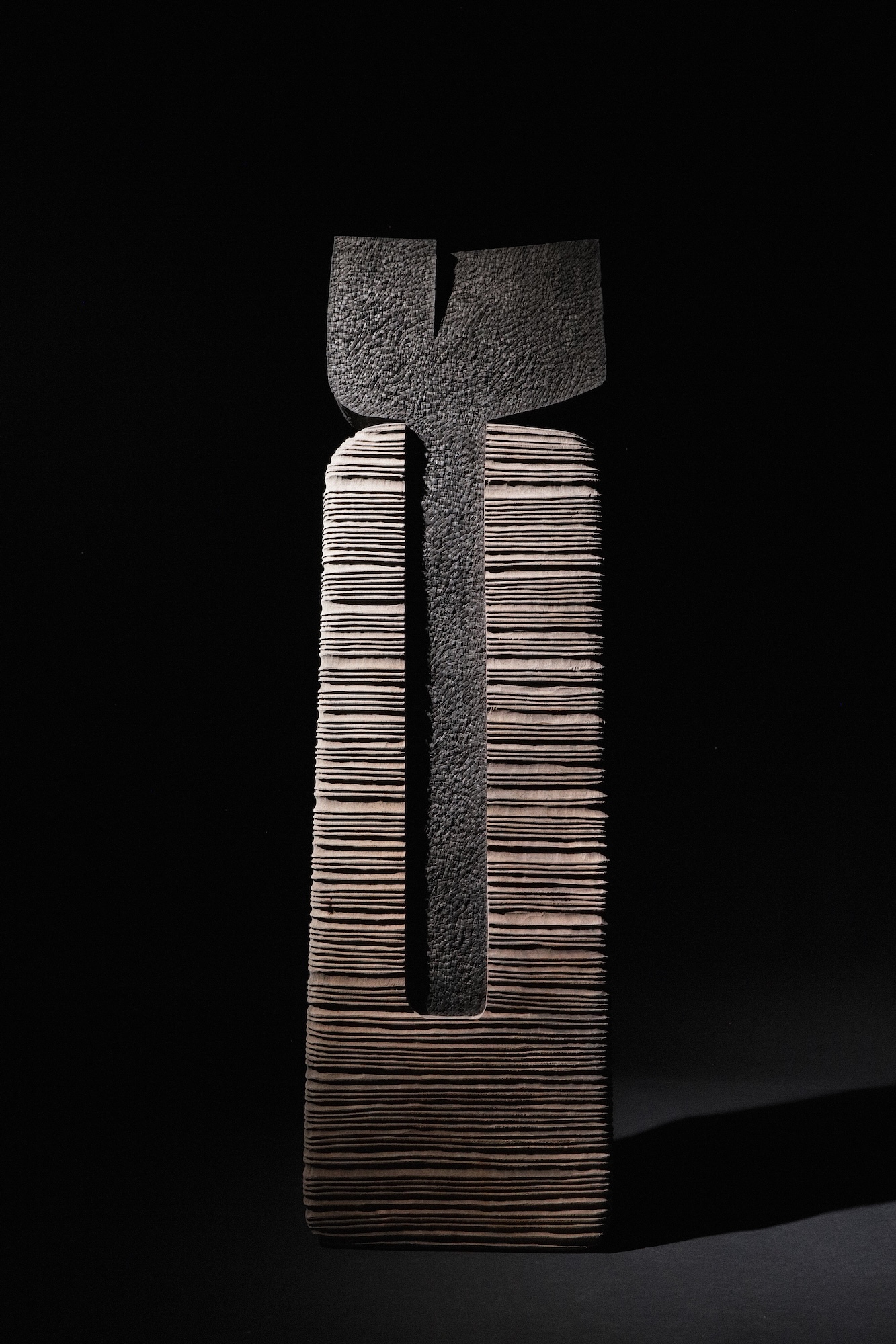 n°221222 est une sculpture abstraite en bois, réalisée par le sculpteur français Thierry Martenon. Cette sculpture combine élégamment des textures différentes sur sa surface. Cette pièce, avec sa forme marquée sur la verticalité, rappelle l’esthétique des sculptures totémiques.