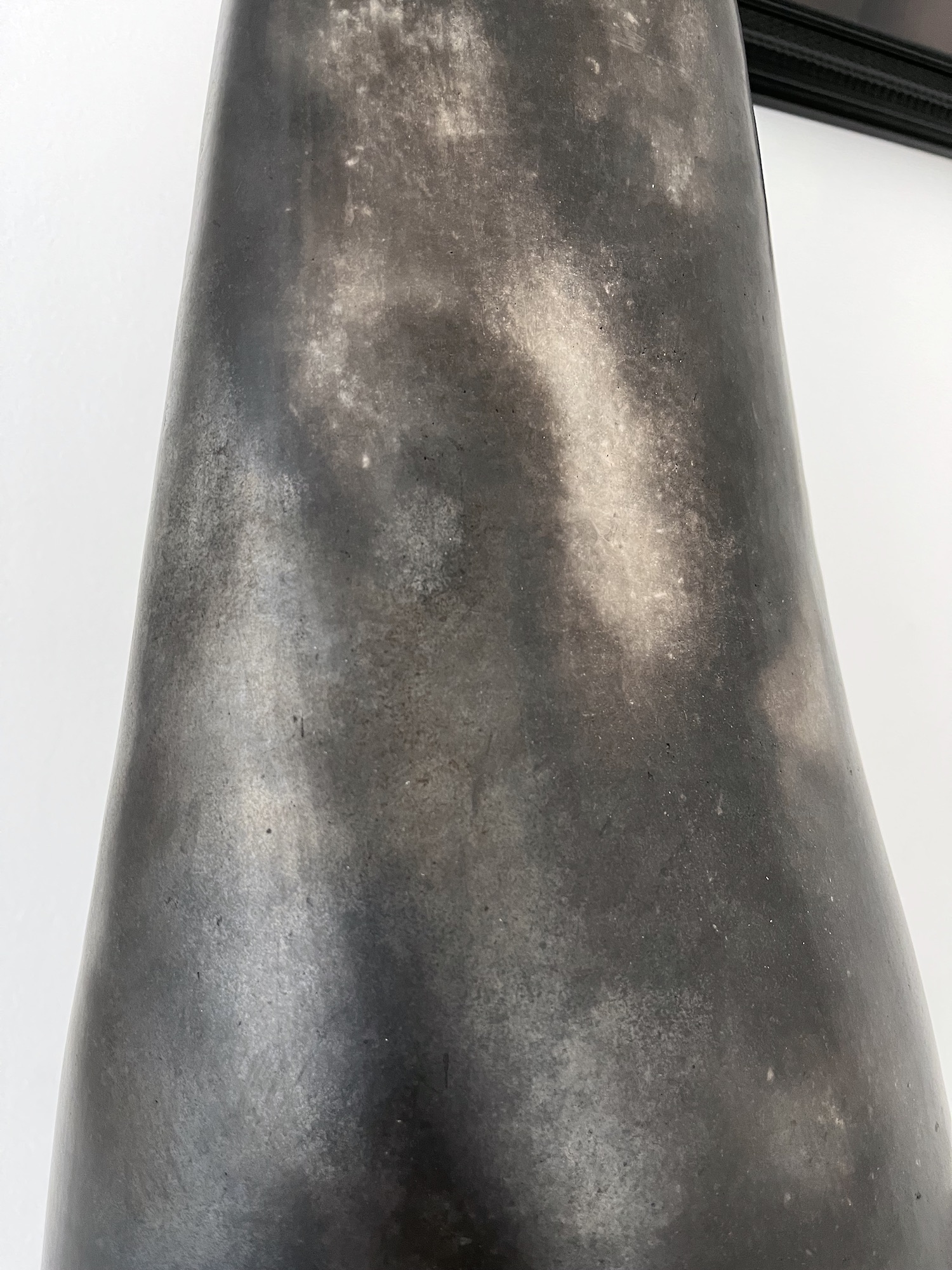 Cette sculpture est emblématique du travail de Tien Wen par sa pureté, le jeu des formes et des volumes, opposant les courbes aux lignes et les rondeurs aux angles. Cette œuvre minimaliste met en lumière, par son socle, l’équilibre fragile recherché par l’artiste tant dans la forme de cette sculpture que, en d’autres occasions, dans le mélange des matières. Tien Wen refuse toute fonctionnalité dans ses sculptures, notre œil ne doit pas y voir un objet ou une destination. Elle dit elle-même : « Je veux que la pièce existe par la forme, par la ligne ».
