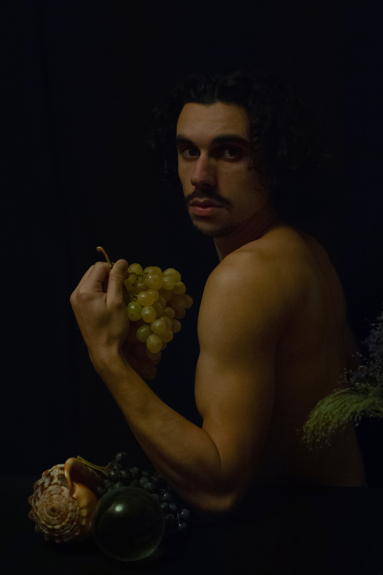« J’improvise avec les poses, les objets ; je dessine avec la lumière et je me laisse aller à une rêverie contemplative autour de la beauté, de la force et de la vulnérabilité humaine. » – Ronald Martinez.