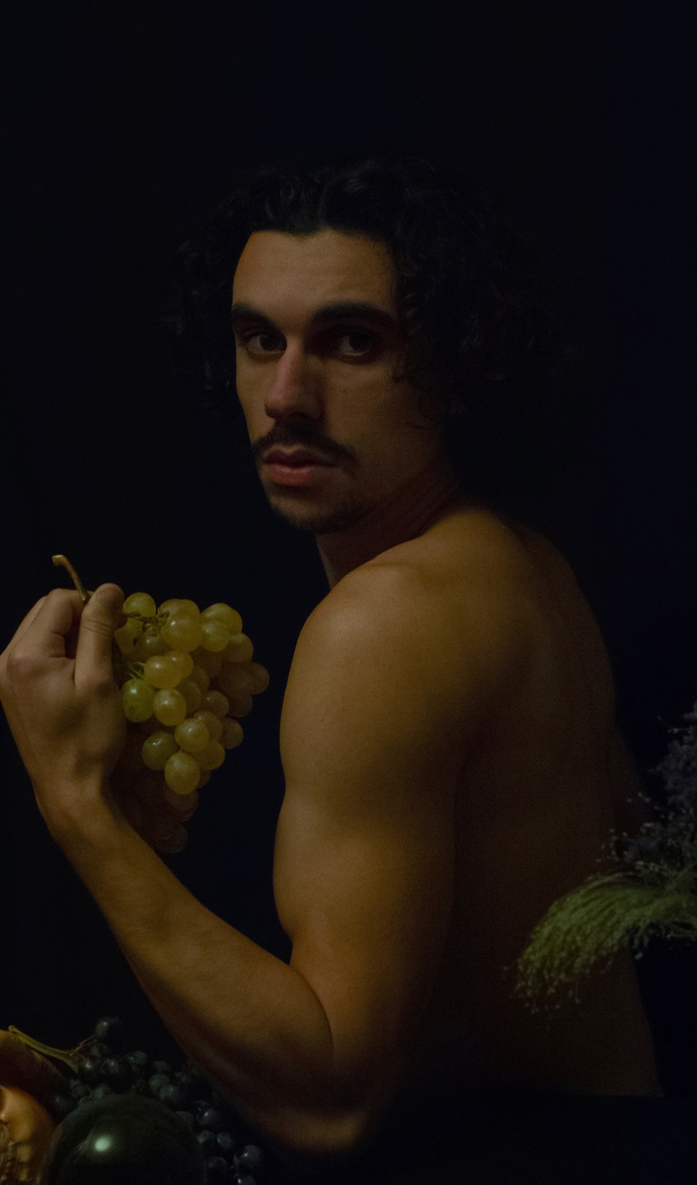 Nu Divin N50 est une photographie de l’artiste français Ronald Martinez issue de la série L’Ombra Sulla Pelle (L’ombre sur la peau). Cette photographie représente un homme torse nu, entouré d’objets symboliques l’identifiant comme Bacchus. Elle glorifie la beauté du corps masculin et fait écho aux peintures de la Renaissance, dans un décor en clair-obscur à la fois esthétique et chaleureusement intime.