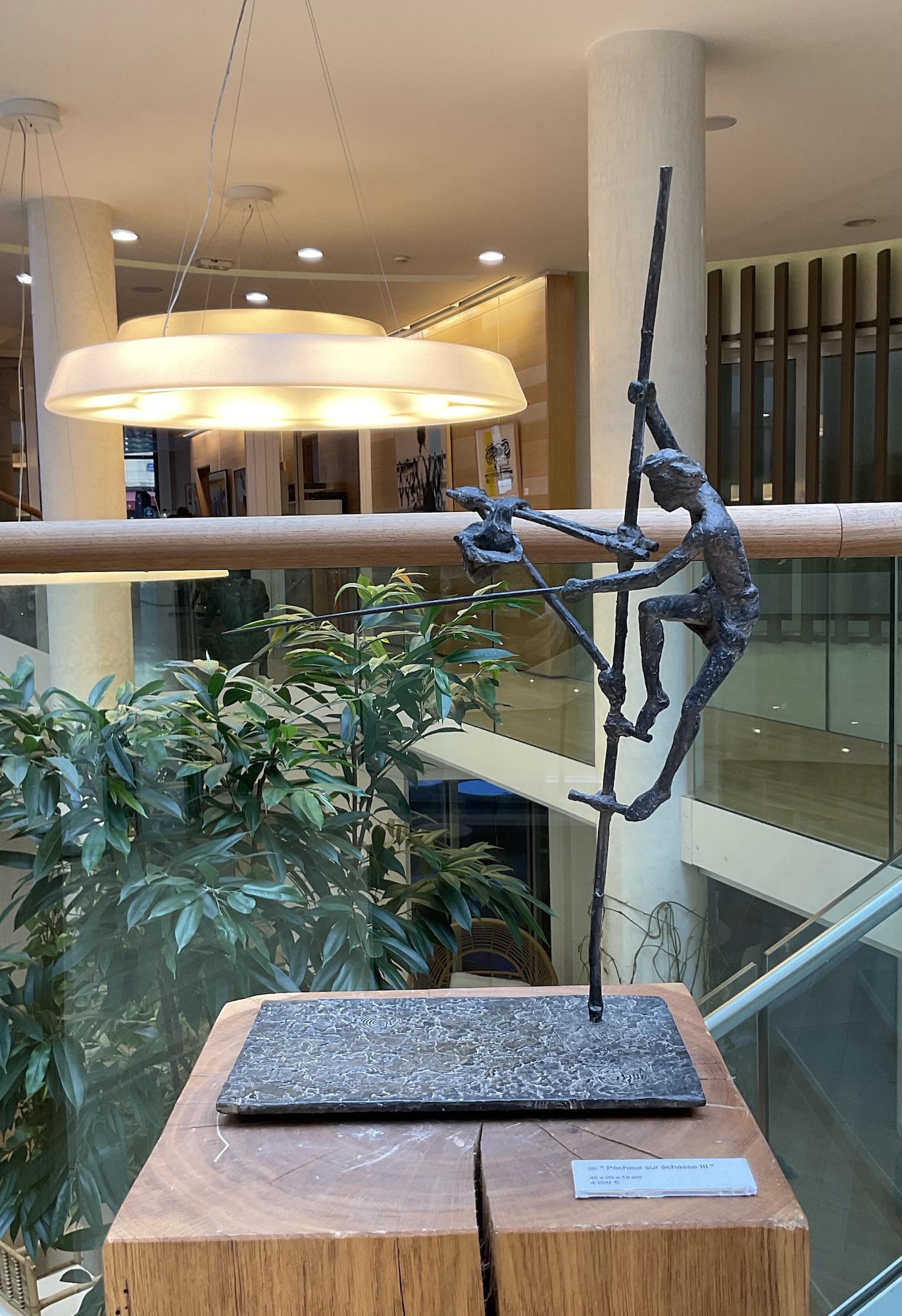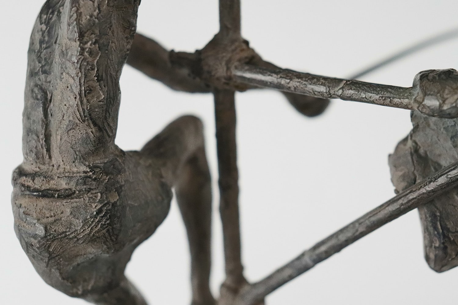 Pêcheur sur échasse III est une sculpture en bronze de l’artiste contemporaine française Marine de Soos. Cette œuvre d’art figuratif représente un jeune homme debout, torse nu et simplement vêtu d’un pagne et d’un turban. Le personnage perché semble figé dans une attente interminable. Inspirée d’une scène de vie imaginaire ou vécue par l’artiste, une poésie certaine émane de la finesse de ce pécheur en bronze.