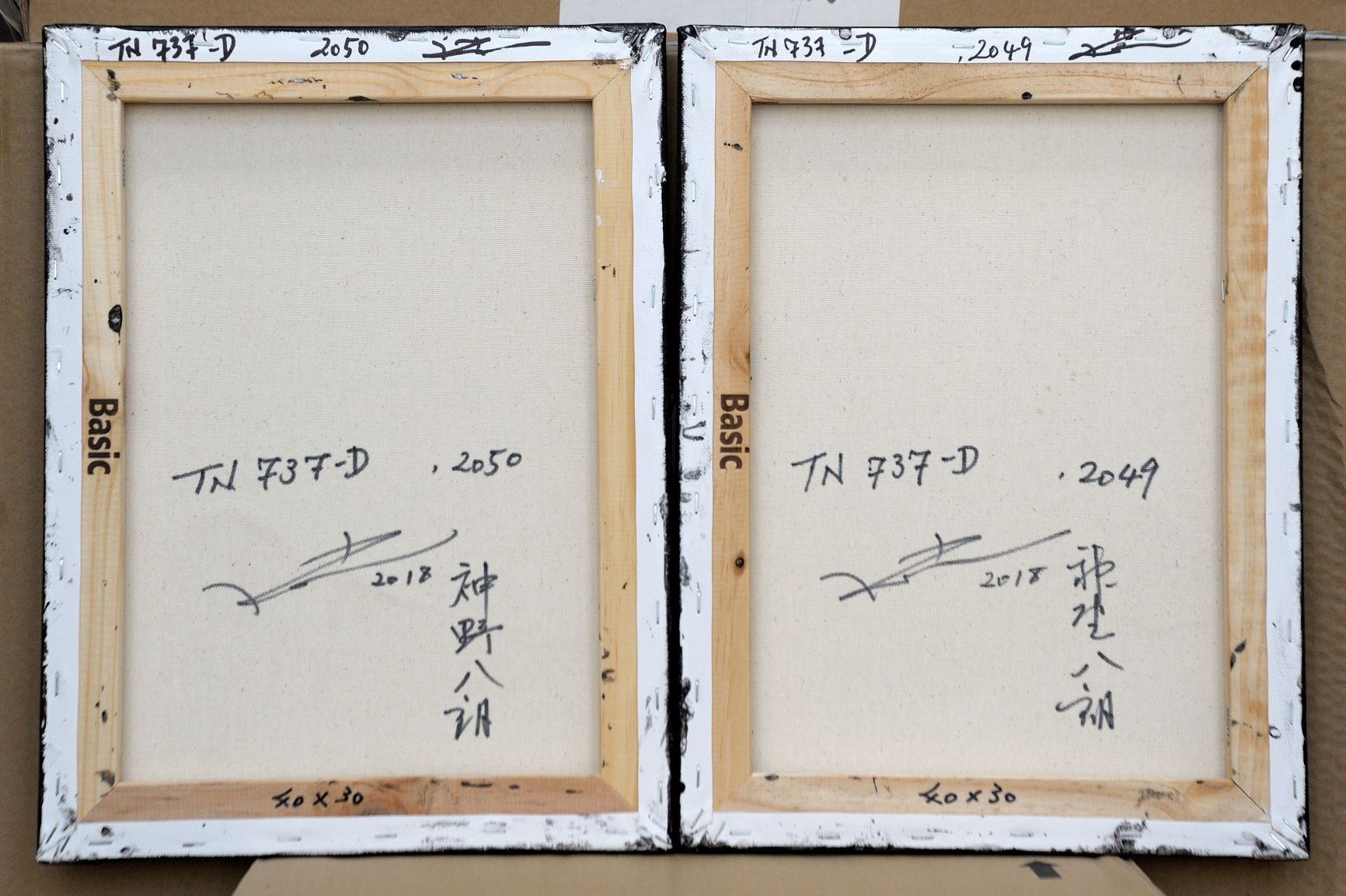 Cette œuvre d’art est un diptyque composé de deux panneaux mesurant chacun 40 cm x 30 cm.