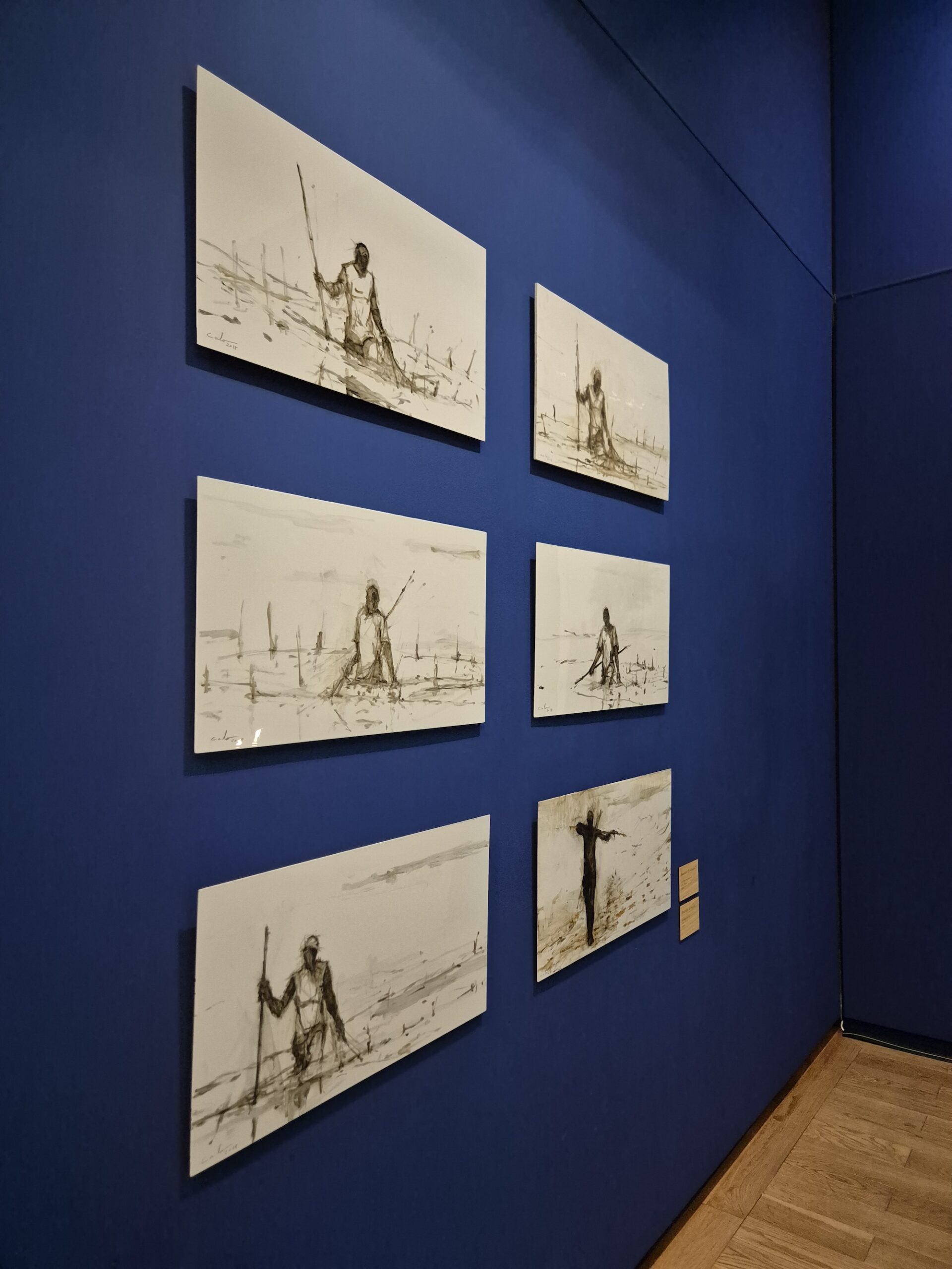 Pescadores de hierro III, est une peinture figurative de l’artiste contemporain espagnol Calo Carratalá. Cette œuvre d’art représente un homme, à moitié immergé dans l’eau, tirant un filet de pêche. Le dessin est brut et rapide, l’artiste capture par le geste vif du pinceau l’activité du pêcheur, les ondulations de l’eau et le filet de pêche.