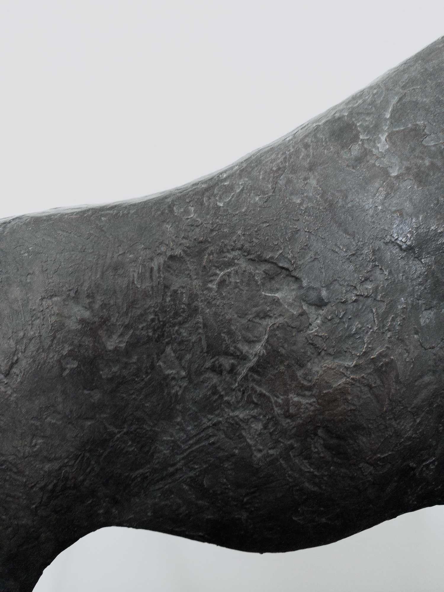 « Le Taureau est le seul animal masculin de mon bestiaire. Sa présence silencieuse et sereine s’impose par son torse massif, supporté par de longues pattes qui accentuent la fragilité de son équilibre. Sa petite tête est couronnée de longues cornes qui n’évoquent ici ni violence ni agressivité. Toute l’énergie de l’animal est contenue dans la tension des volumes. Il symbolise à mes yeux la force protectrice de la nature. »