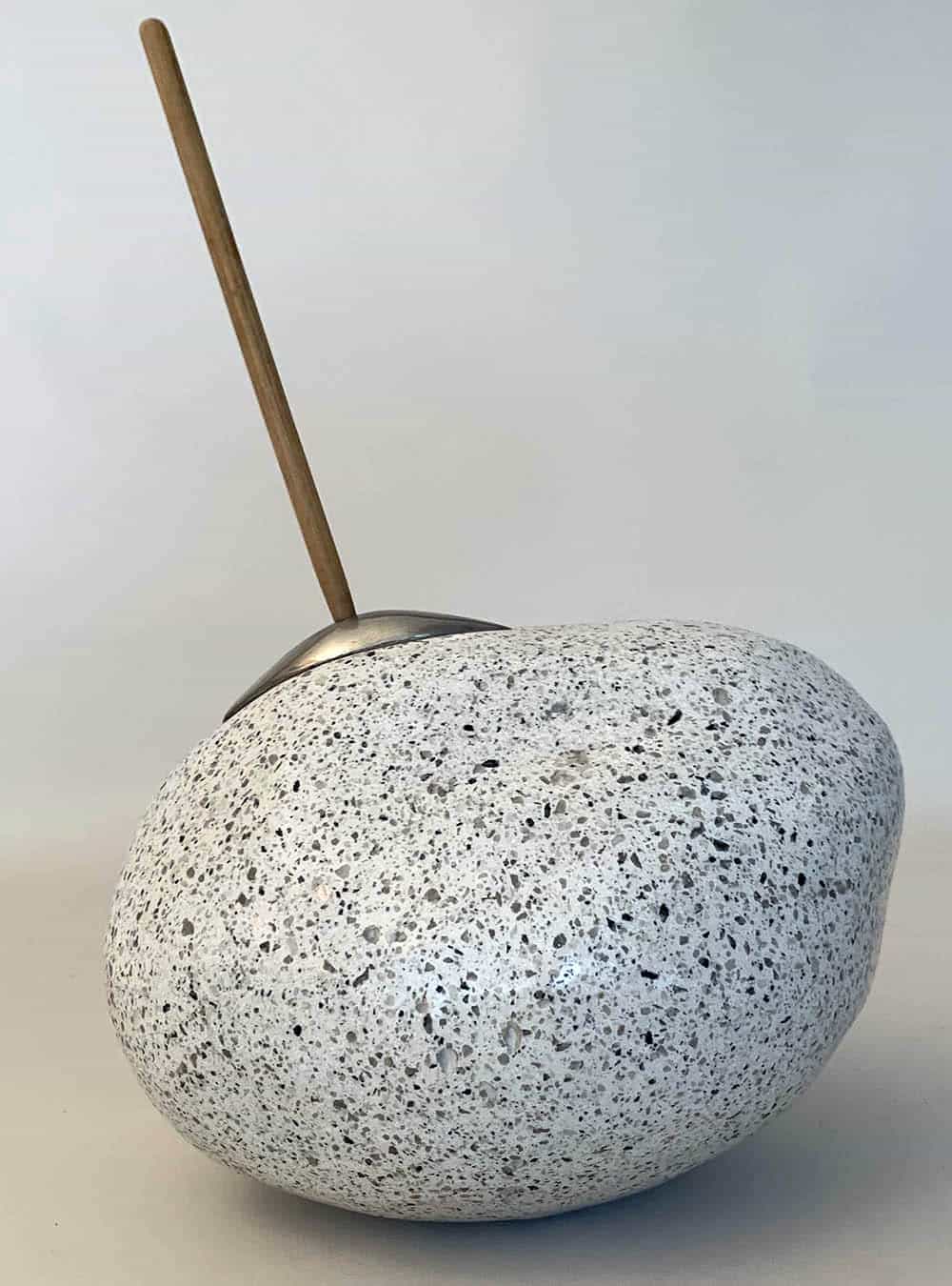Sa forme ludique et sa petite taille confèrent un sens humoristique à cette création, tout en démontrant une technique multiple à travers le travail de plusieurs matériaux de manière très équilibrée et épurée. L’artiste instaure un dialogue visuel entre deux matériaux très différents pour leur aspect et caractéristiques.