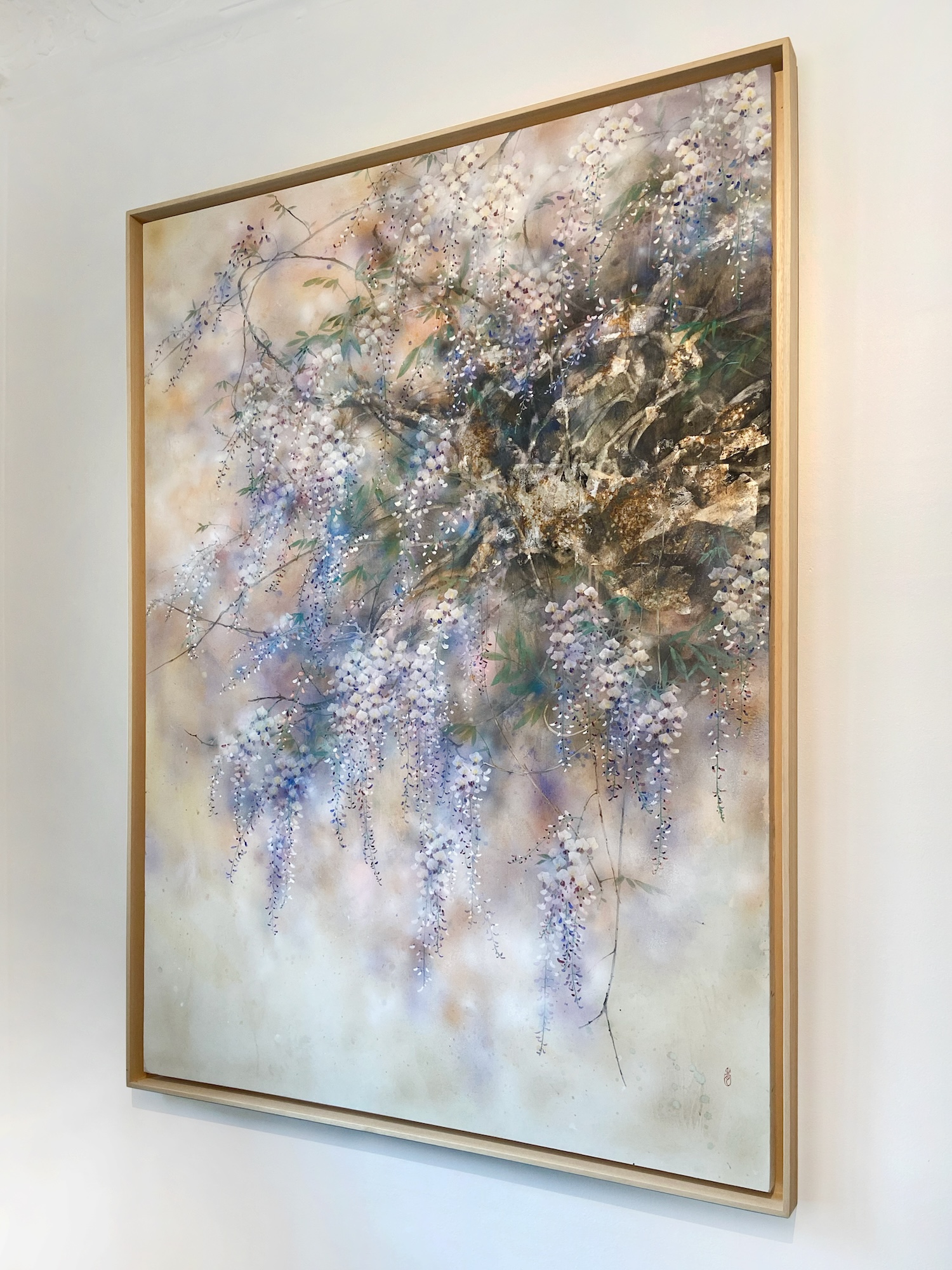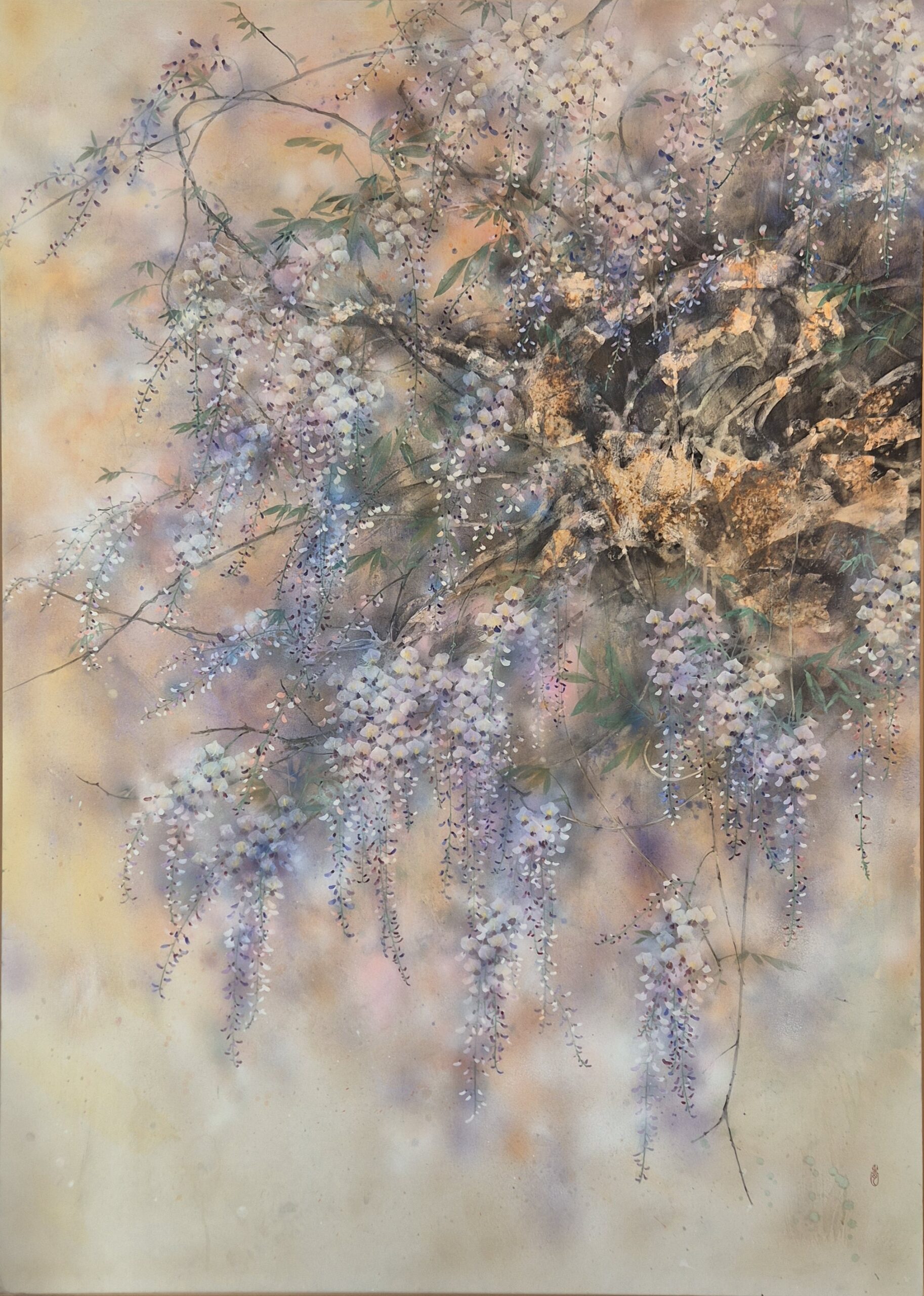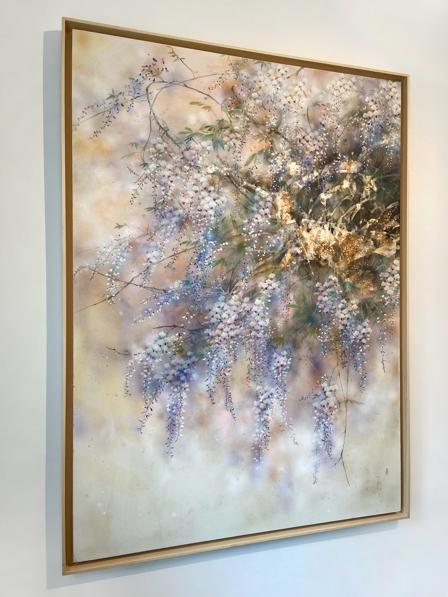 Chen Yiching est spécialiste du « nihon-ga », peinture traditionnelle japonaise, qui signifie littéralement peinture (ga) japonaise (nihon). Cette technique, très exigeante, consiste à n’utiliser que des matériaux entièrement naturels (bois, papier, roche, sable, os) dans la réalisation d’une œuvre. Les pigments, obtenus grâce à des minéraux tels que l’azurite ou la malachite, sont broyés avec de la colle animale (nikawa) réalisée avec de la peau et des os d’animaux ou de poissons. Le papier est marouflé sur bois ou sur soie tendue. Le principe est celui d’une peinture à l’eau et l’espace est créé grâce au yohaku, ou zones vides.