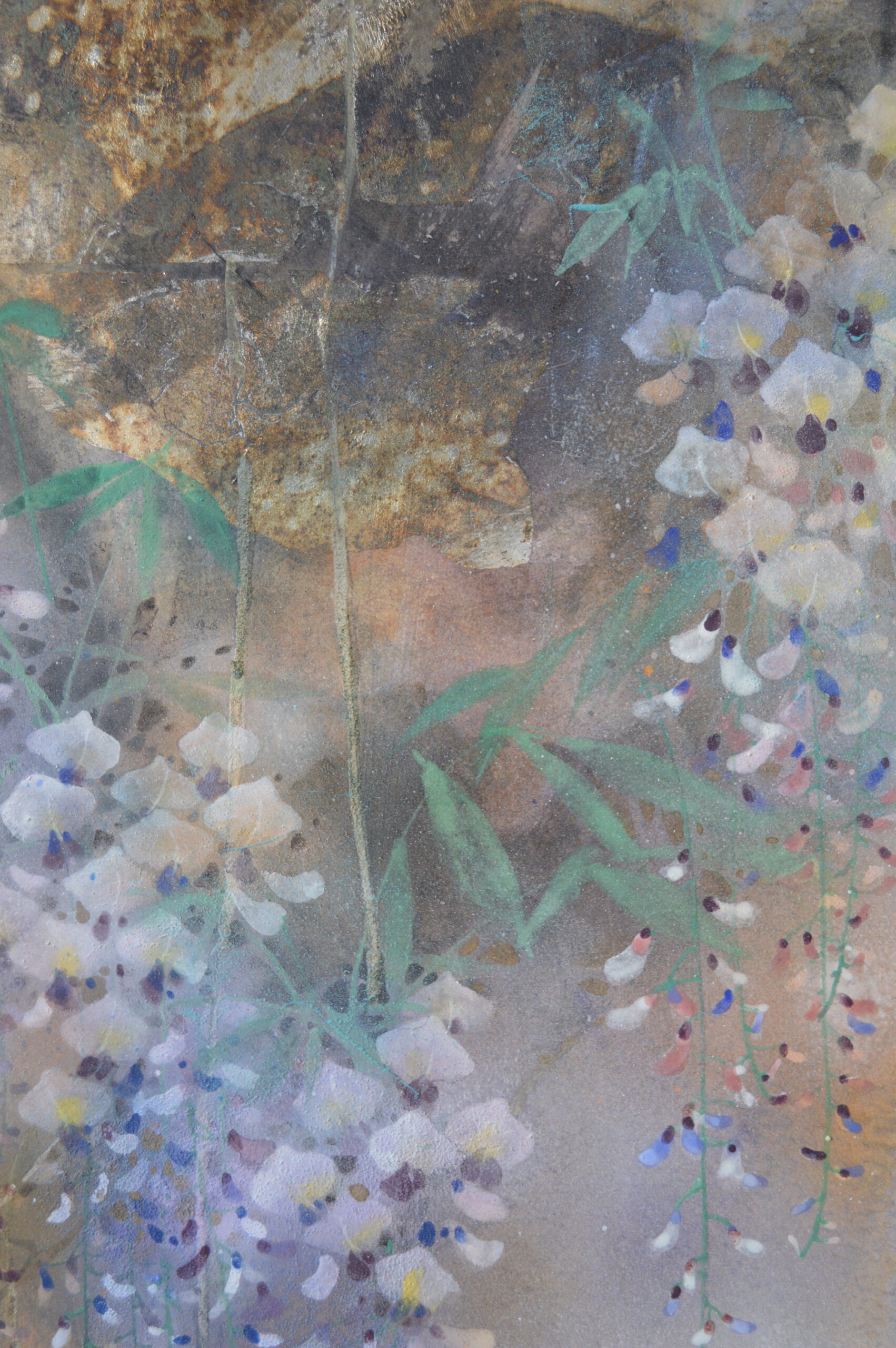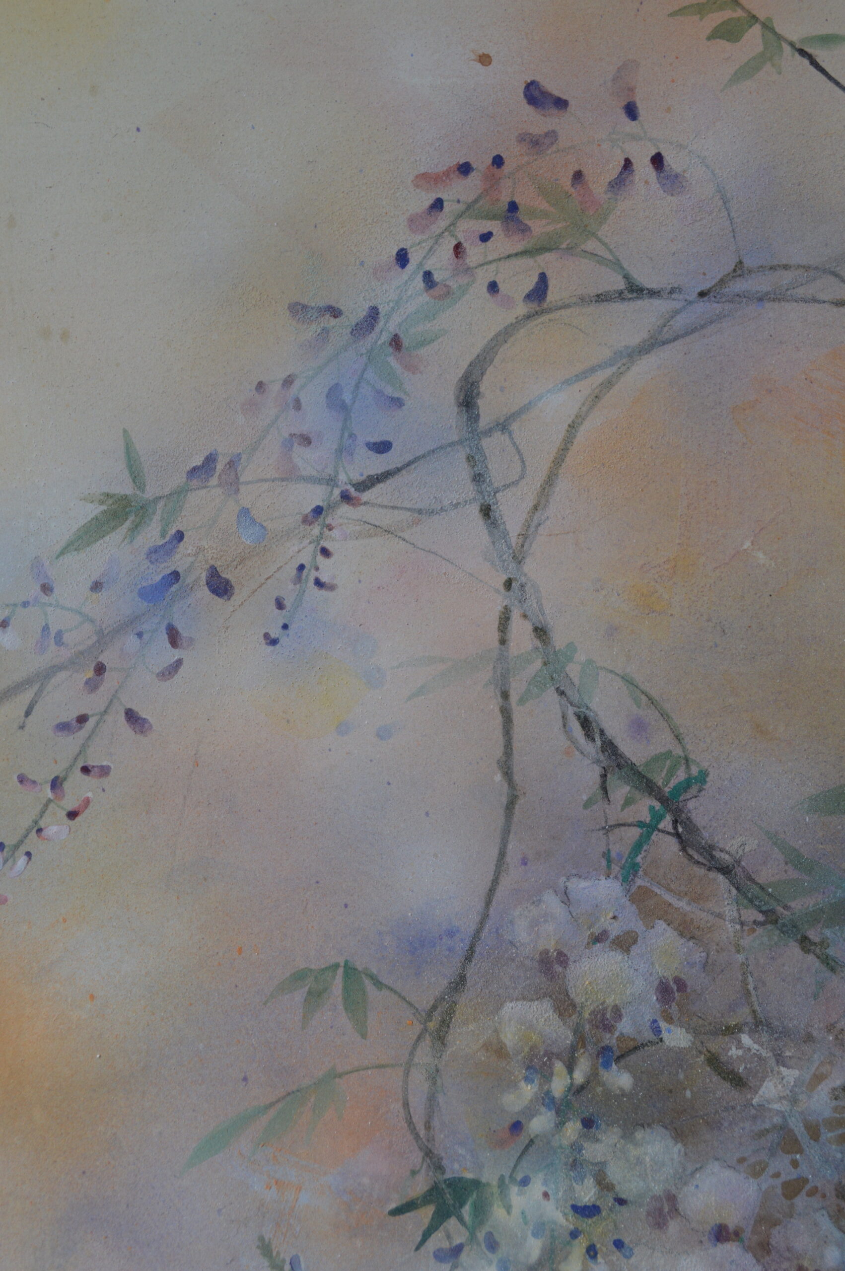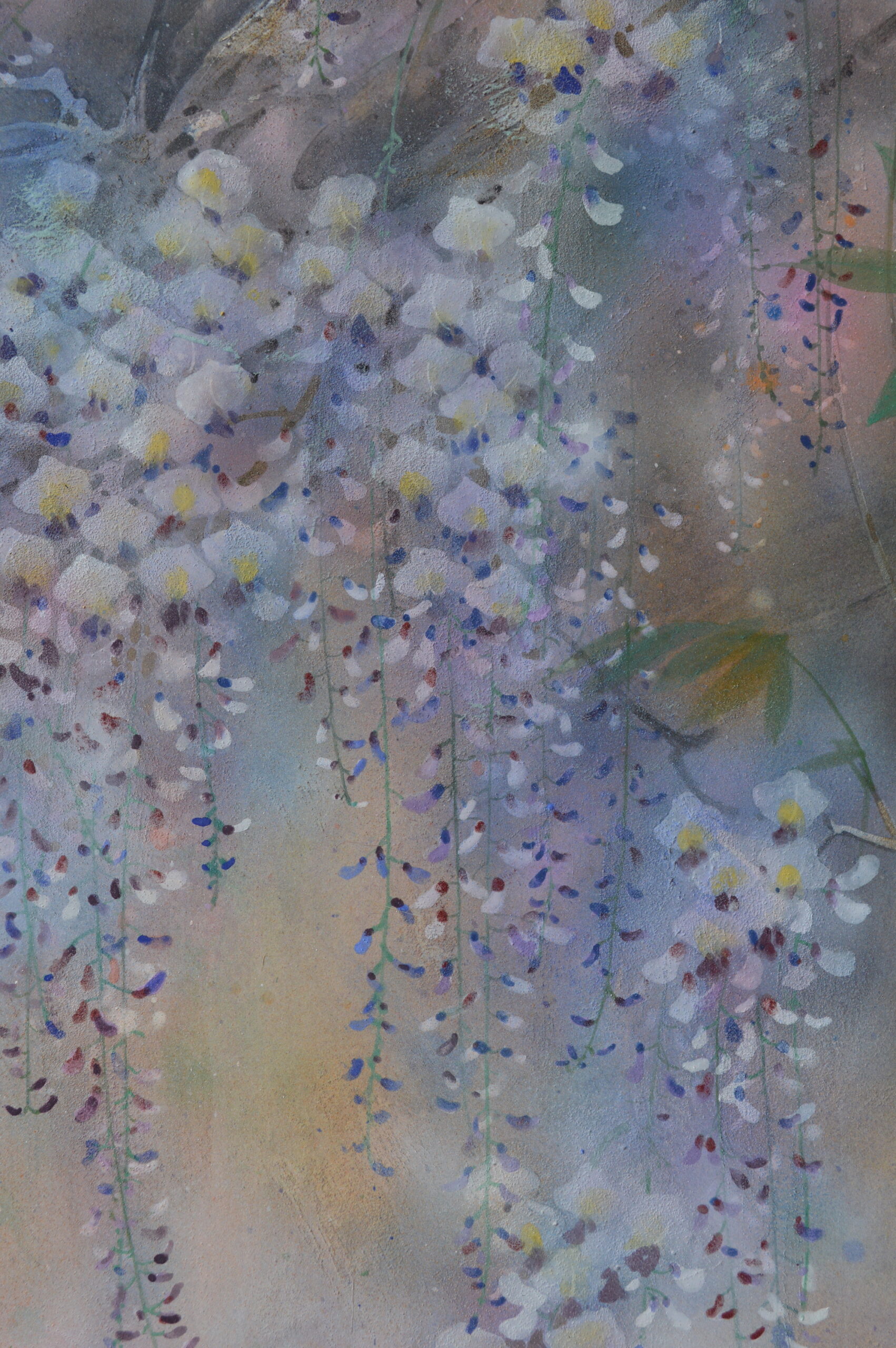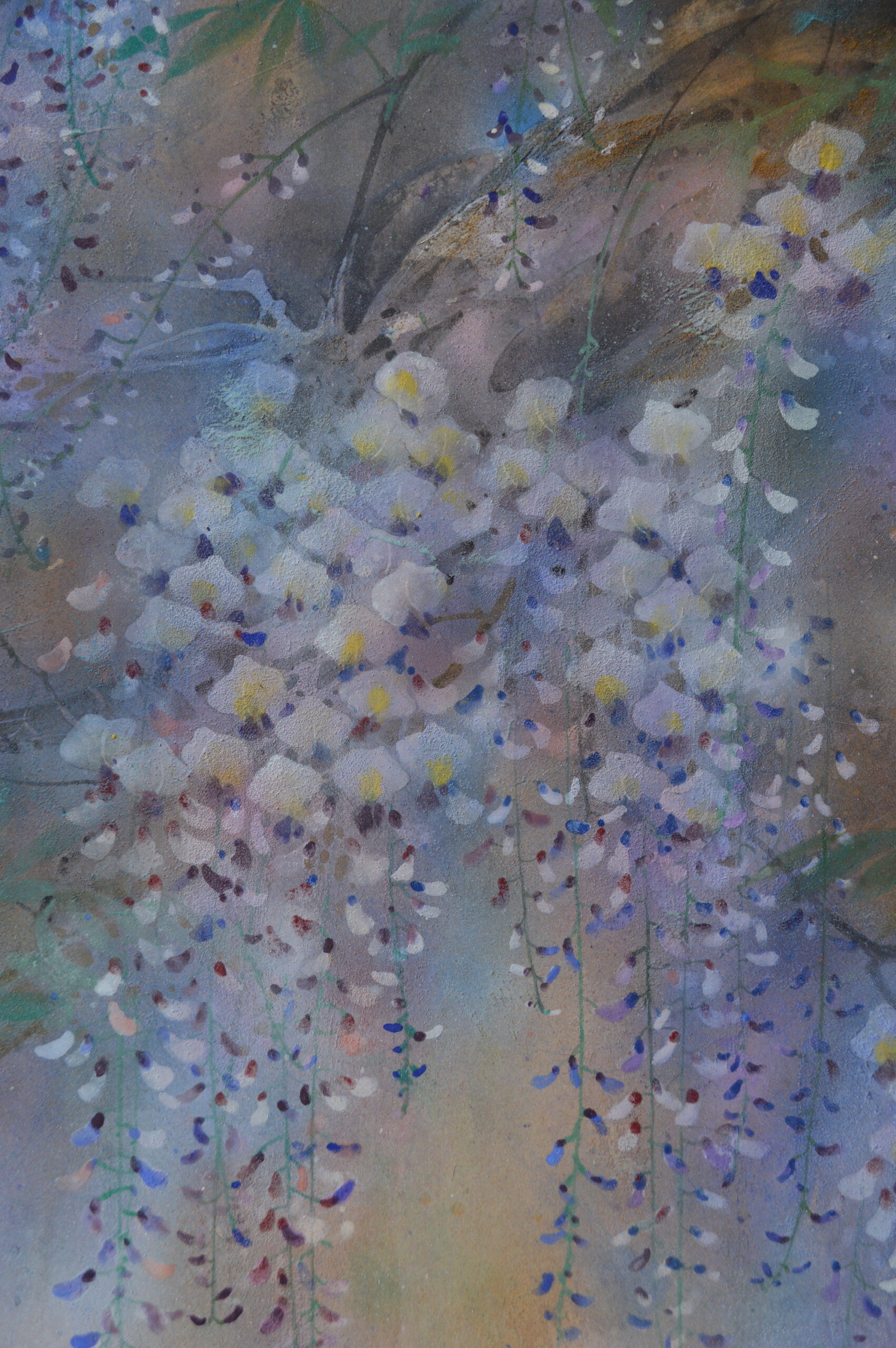 Chen Yiching est spécialiste du « nihon-ga », peinture traditionnelle japonaise, qui signifie littéralement peinture (ga) japonaise (nihon). Cette technique, très exigeante, consiste à n’utiliser que des matériaux entièrement naturels (bois, papier, roche, sable, os) dans la réalisation d’une œuvre. Les pigments, obtenus grâce à des minéraux tels que l’azurite ou la malachite, sont broyés avec de la colle animale (nikawa) réalisée avec de la peau et des os d’animaux ou de poissons. Le papier est marouflé sur bois ou sur soie tendue. Le principe est celui d’une peinture à l’eau et l’espace est créé grâce au yohaku, ou zones vides.