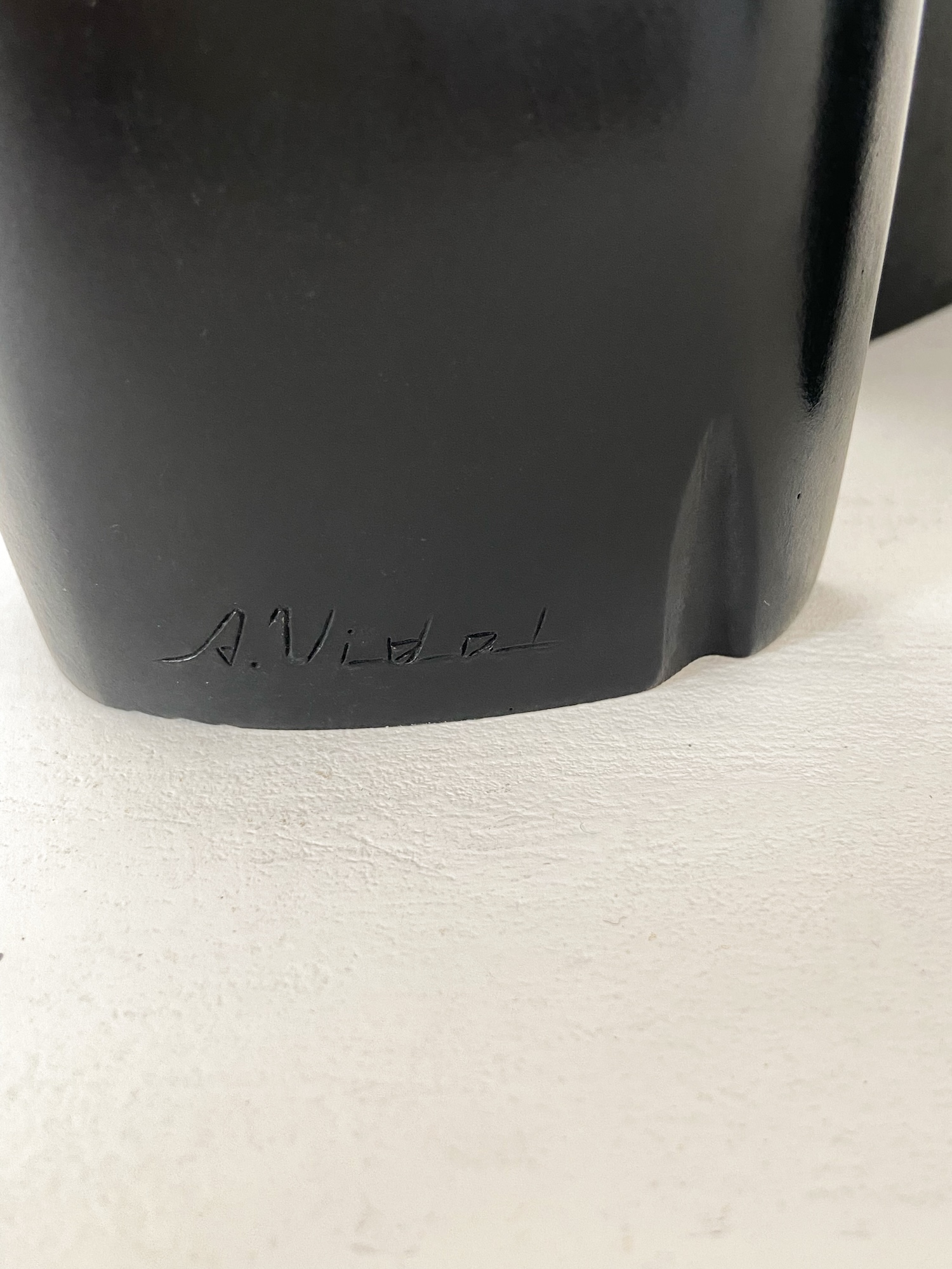 Antoine Vidal travaille principalement avec le bronze, dont il apprécie la noblesse, la force et l’aspect impérissable. Il accorde une grande attention au choix de la patine, privilégiant des teintes sobres, parfois aux aspects minéraux, afin de brouiller la perception du matériau. L’objectif est de permettre à la lumière de glisser sur la pièce, révélant son élégance fluide et sinueuse.