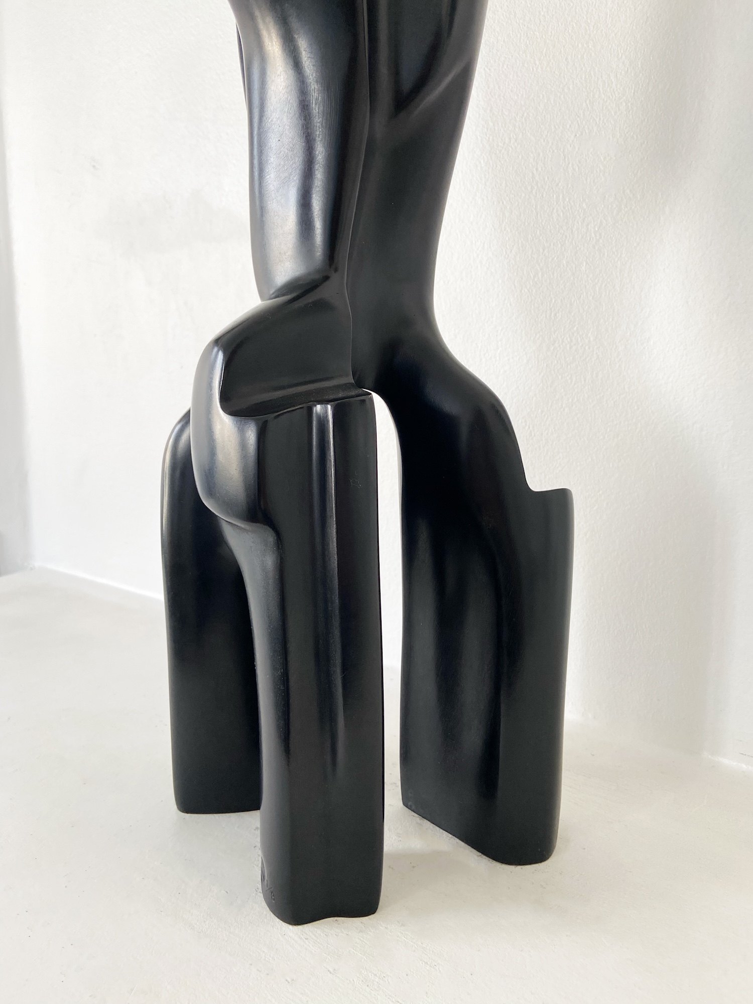 Ses œuvres en bronze, très souvent marquées par une verticalité aux accents totémiques, témoignent d’une recherche esthétique axée sur l’élégance des lignes et des formes, dans laquelle la lumière joue un rôle essentiel. Pour l’artiste, chaque sculpture est multiface : en changeant de point de vue, elle raconte une autre histoire. Sa véritable ambition est d’aboutir à une lecture harmonieuse de l’œuvre, quel que soit l’angle sous lequel elle est observée.