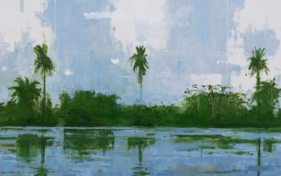 Dans chacun de ses coups de pinceau, l’humidité de l’air devient plus palpable, la sensation de peur ou d’excitation que chacun pourrait ressentir en s’enfonçant dans une forêt si dense qu’elle semble prête à vous engloutir est presque réelle. Sans rien imposer, l’artiste nous confronte à notre propre rapport à la nature, et aux sentiments ambivalents qu’elle peut inspirer, entre fascination et crainte. Comme chacune de ses séries, Jungle est également une ode à la couleur: ici la couleur verte dans toutes ses nuances, de la plus lumineuse à la plus sombre.