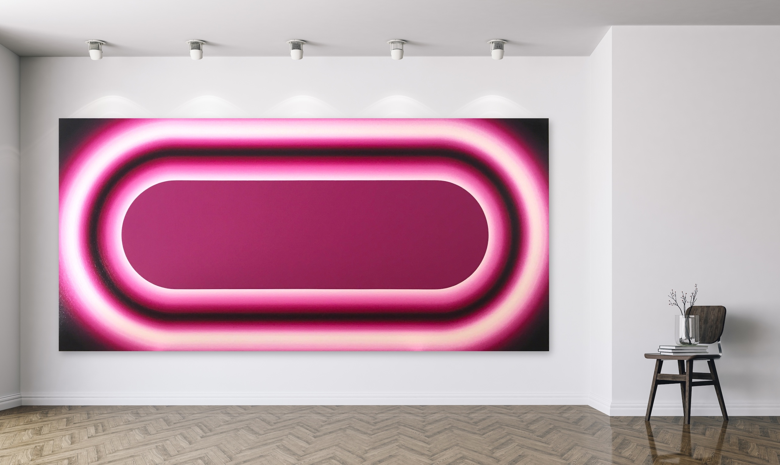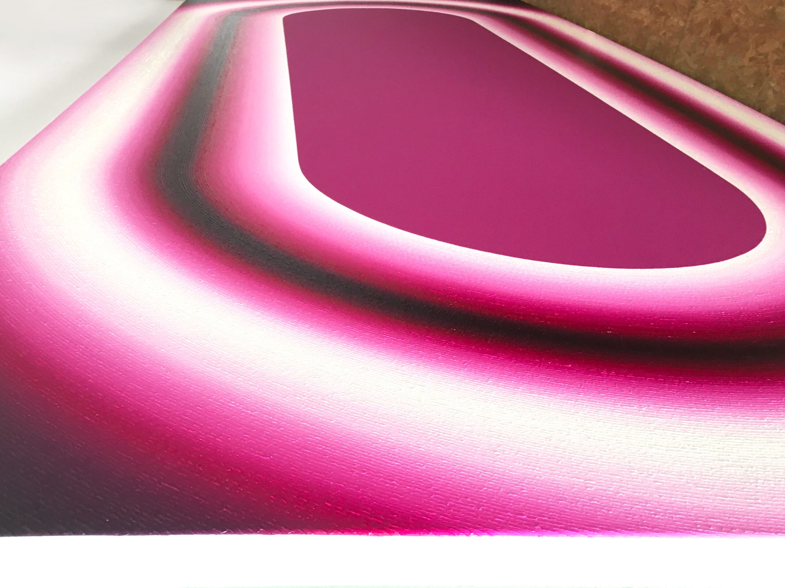 Mathieu Piffeteau travaille toutes les couleurs sauf le rouge ; pour cette peinture, il a choisi de se concentrer sur le magenta. Dans cette peinture il est possible d’apprécier un effet visuel de « flou » lumineux, une illusion d’optique que l’artiste crée grâce à un dégradé de couleurs court. L’observateur peut avoir l’impression qu’une lumière artificielle, comme un néon ou une lightbox, illumine le tableau.