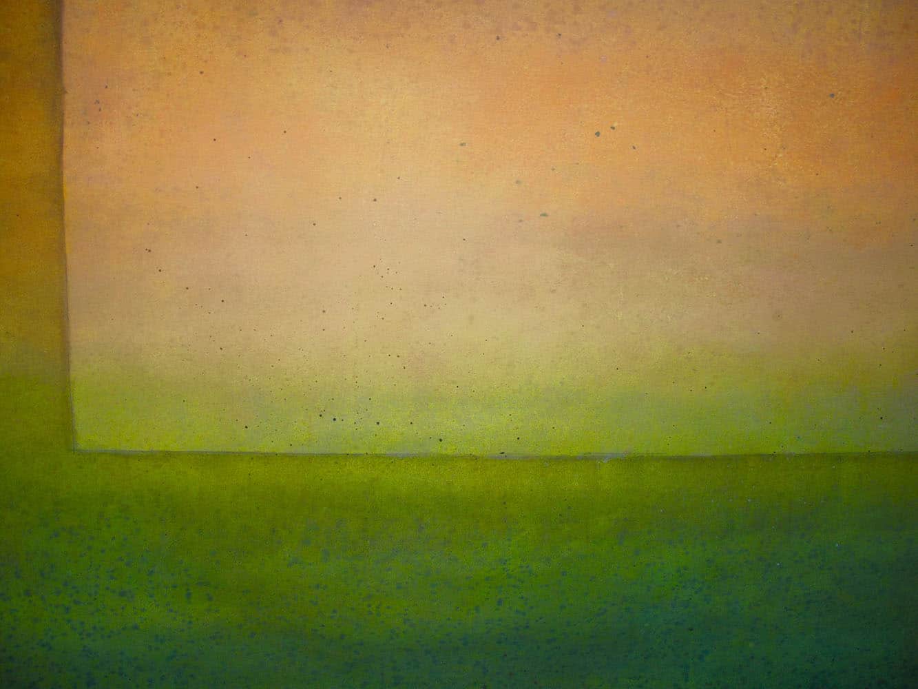 Face à cette peinture abstraite, proche du Minimalisme et de l’Expressionnisme Abstrait, le spectateur cherche à établir des ressemblances avant de simplement se laisser aller au voyage et guider par l’énergie qui transparaît sur la toile. Ici, les lignes horizontales de différentes couleurs se démarquent sur ce fond orange et rouge d’une grande richesse tonale.