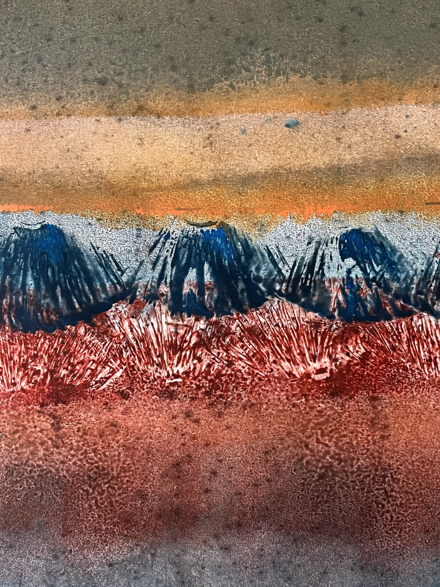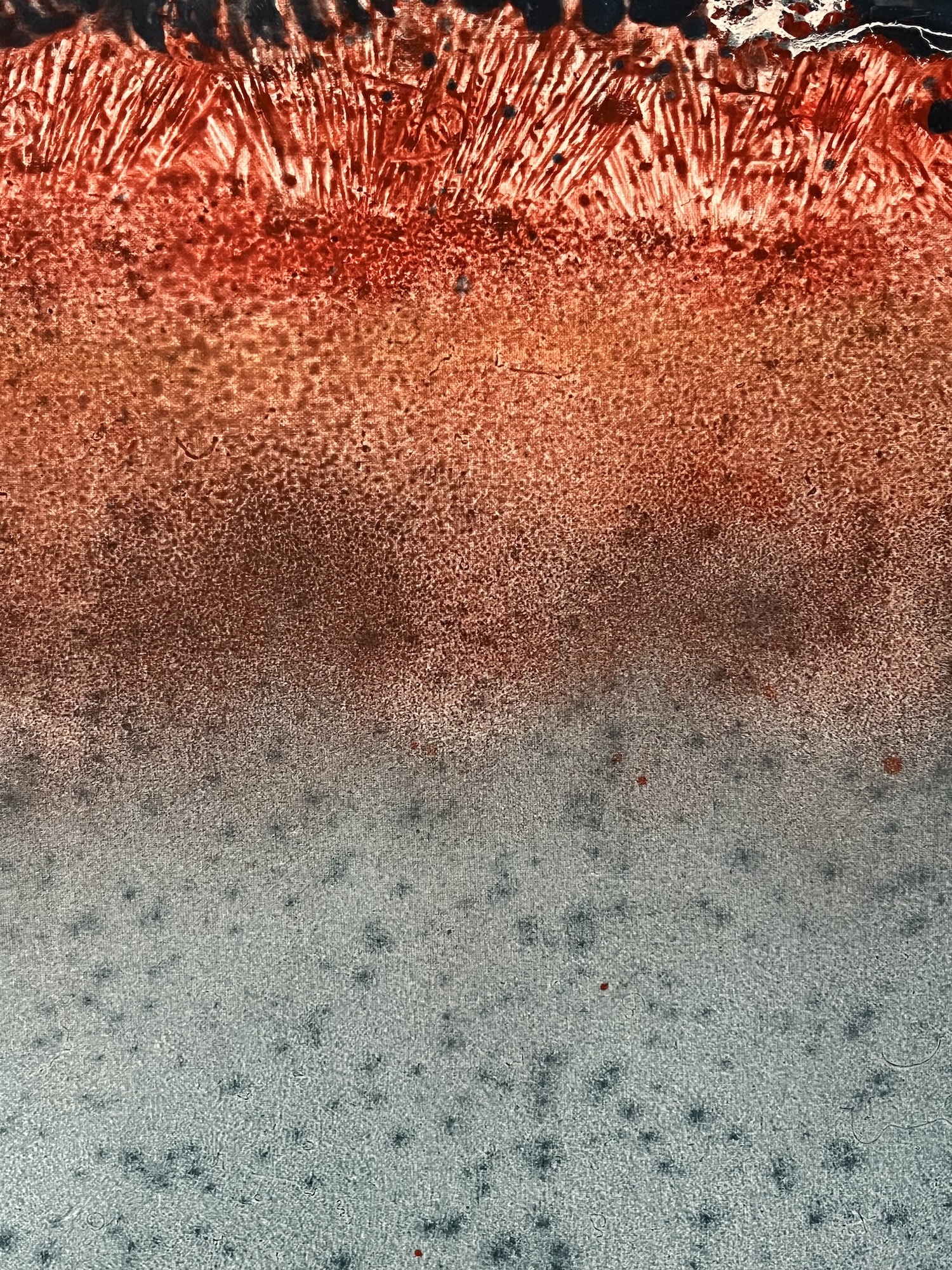 Face à cette peinture abstraite, proche du Minimalisme et de l’Expressionnisme Abstrait, le spectateur cherche à établir des ressemblances avant de simplement se laisser aller au voyage et guider par l’énergie qui transparaît sur la toile.