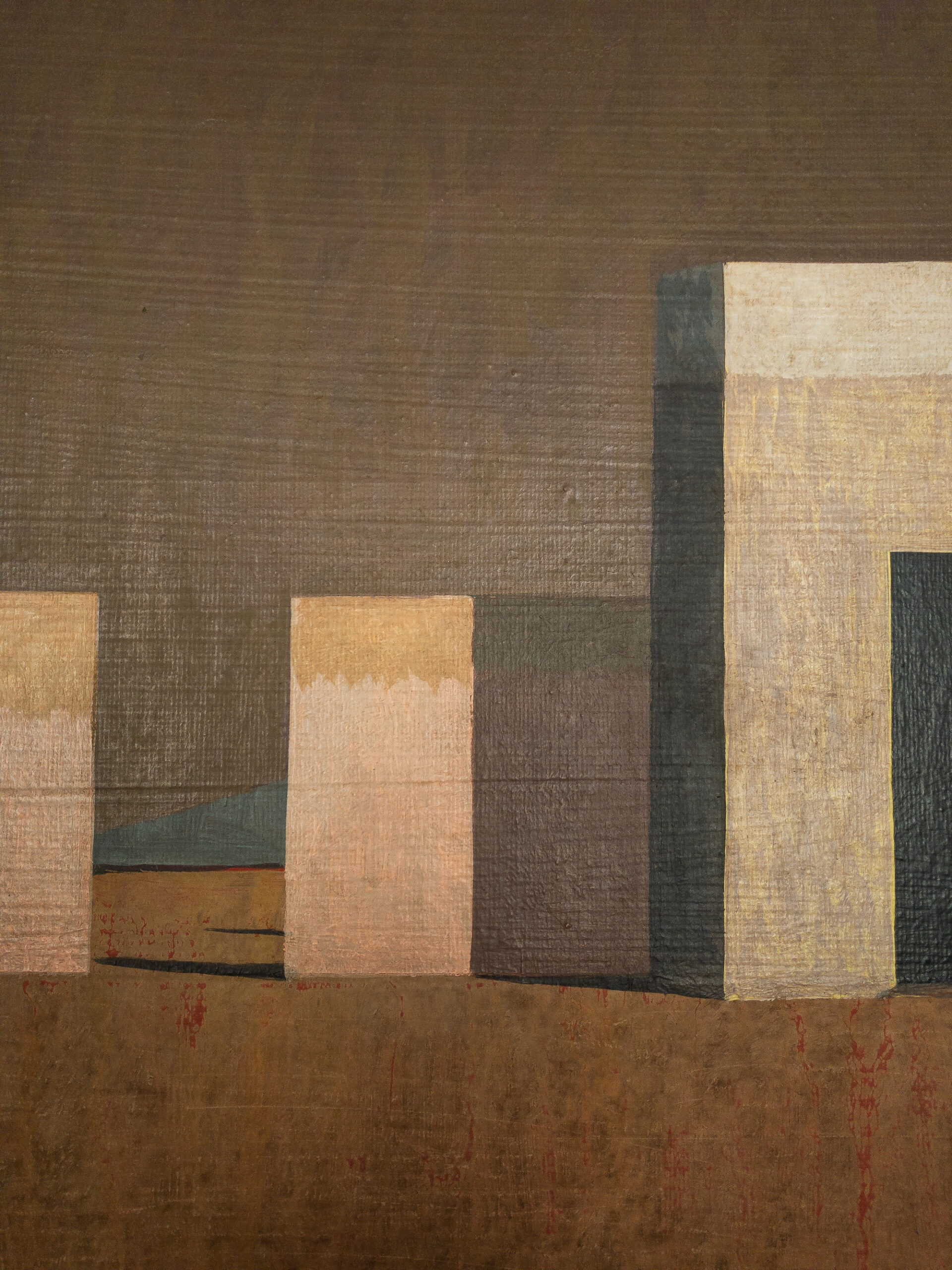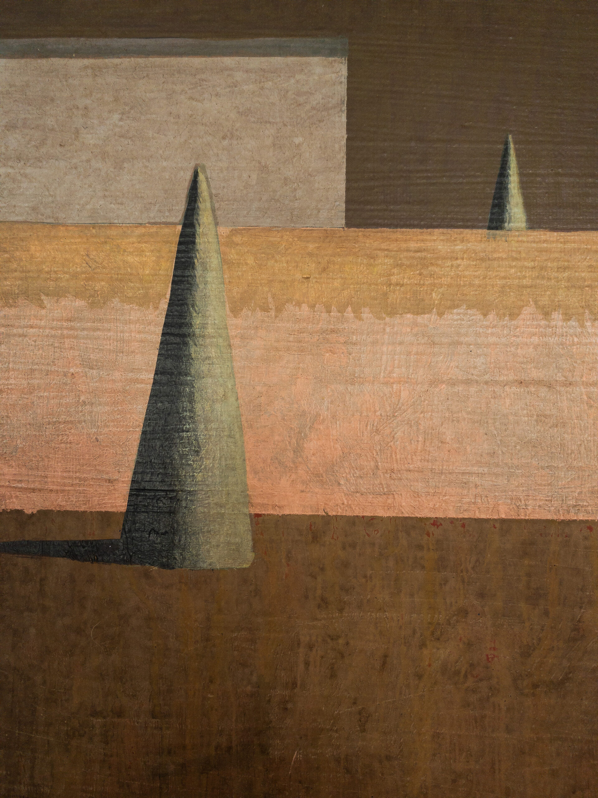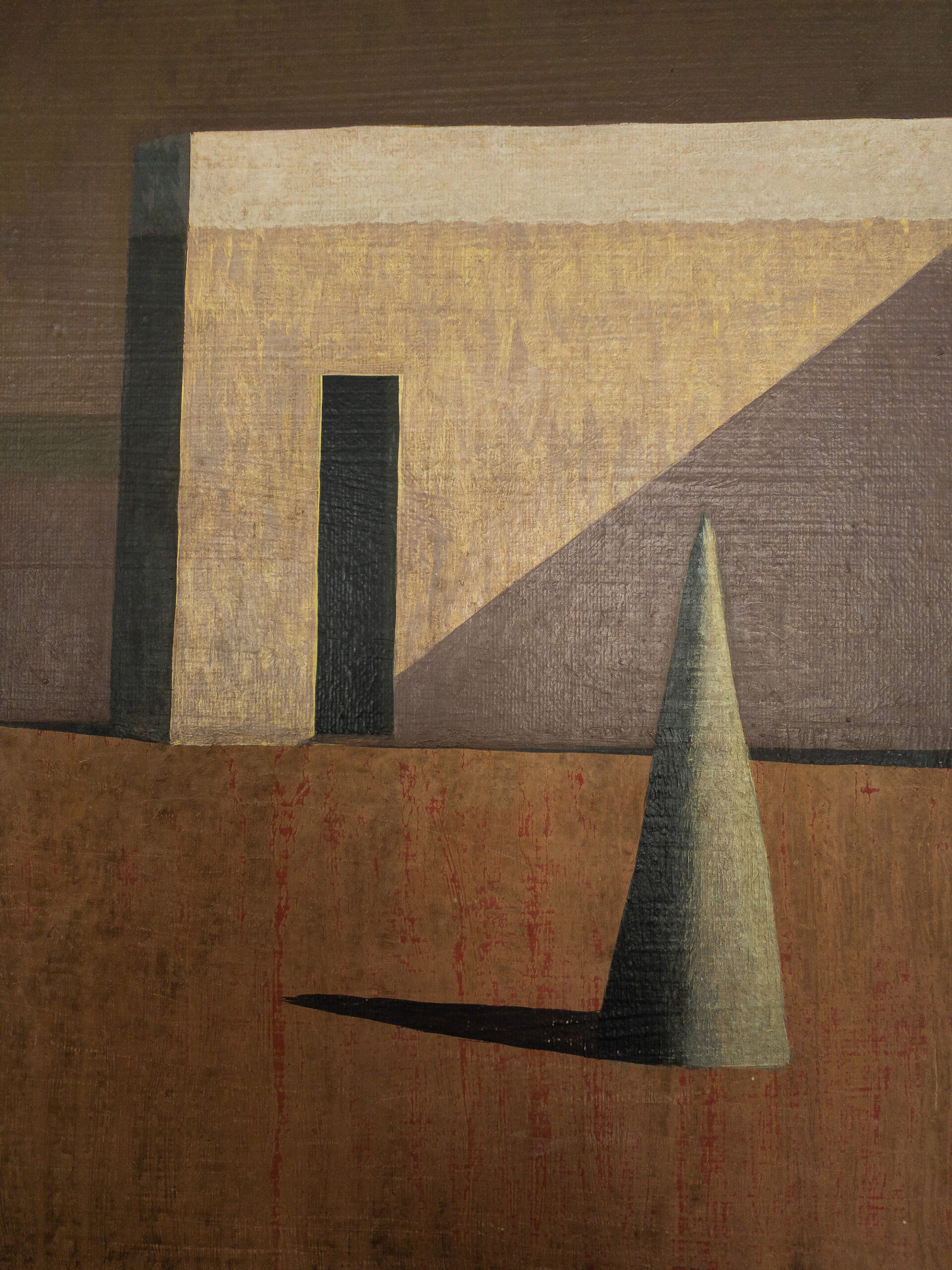 Dans ses peintures, l’artiste établit un dialogue entre l’architecture et le paysage, dans une figuration soumise à la géométrie et une atmosphère toujours énigmatique. La conception de ces espaces et la simplification des formes (poussée jusqu’aux limites de l’abstraction) traduisent une conception théâtrale de l’architecture.