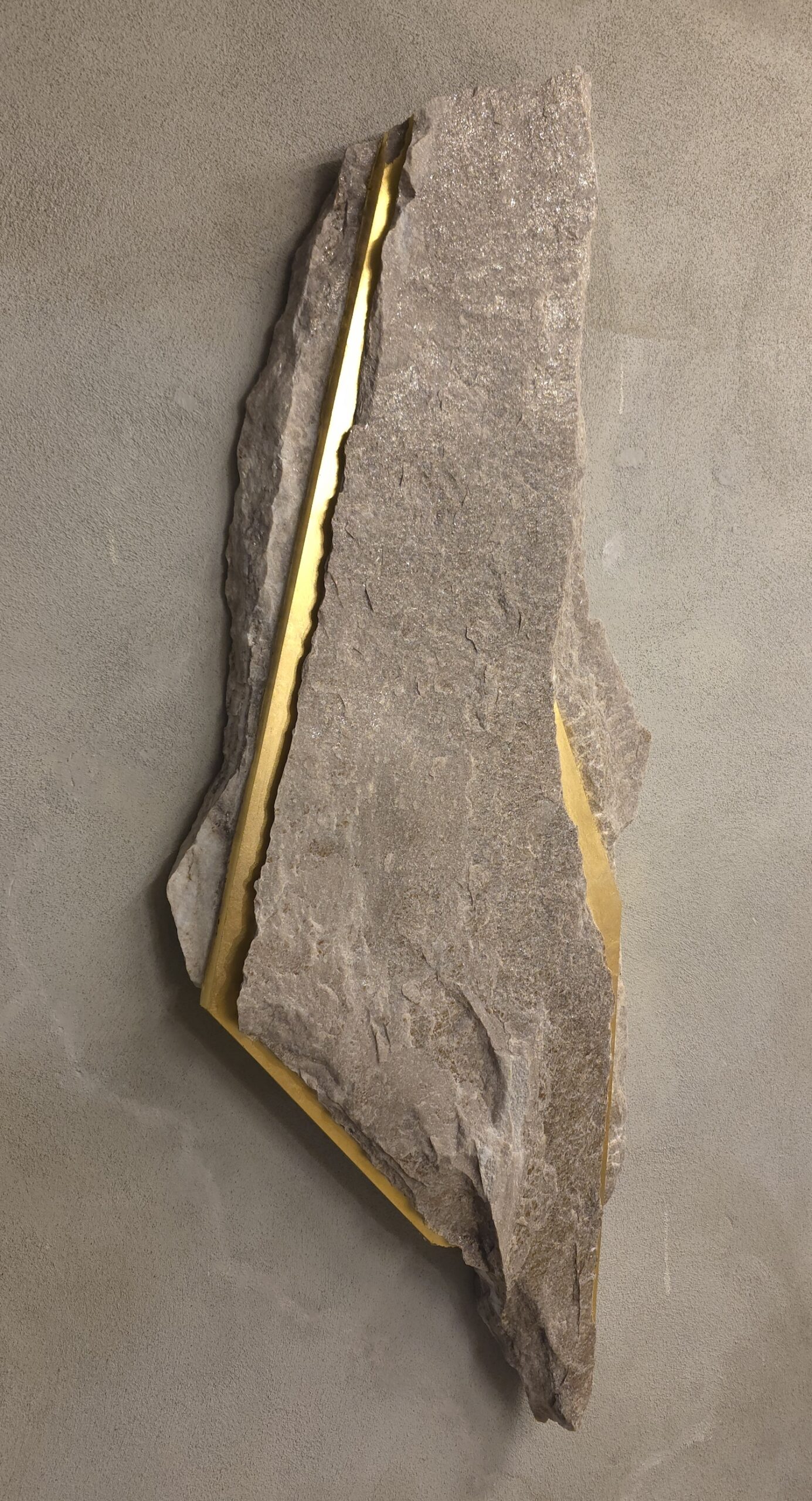 Sezione Aurea 2025-11 est une sculpture murale en marbre Palissandre et feuille d’or de l’artiste contemporain italien Mattia Bosco.
