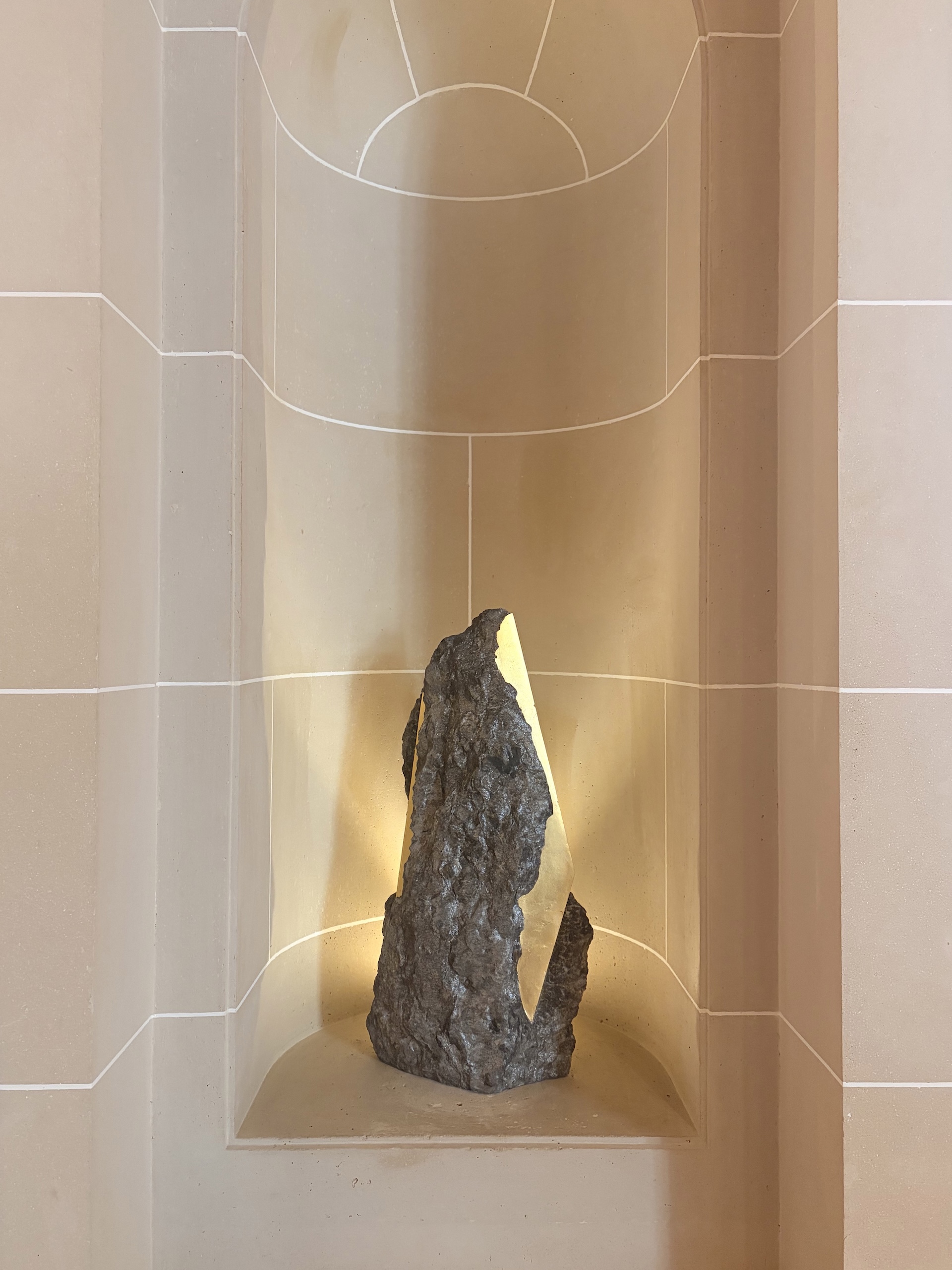 La démarche de l’artiste est profondément différente de celle de la sculpture traditionnelle dans laquelle le sculpteur part d’un bloc de pierre – qui contient la forme désirée et imaginée – duquel il retire un excédent de matière. Au contraire, pour Mattia Bosco l’intervention du sculpteur est simple, circonscrite et limitée, et vise à faire émerger et à purifier la forme déjà présente dans la pierre. Forme et matière sont ainsi indissociables : la pierre est par nature toujours acheminée vers une forme, elle est donc déjà une potentielle sculpture.