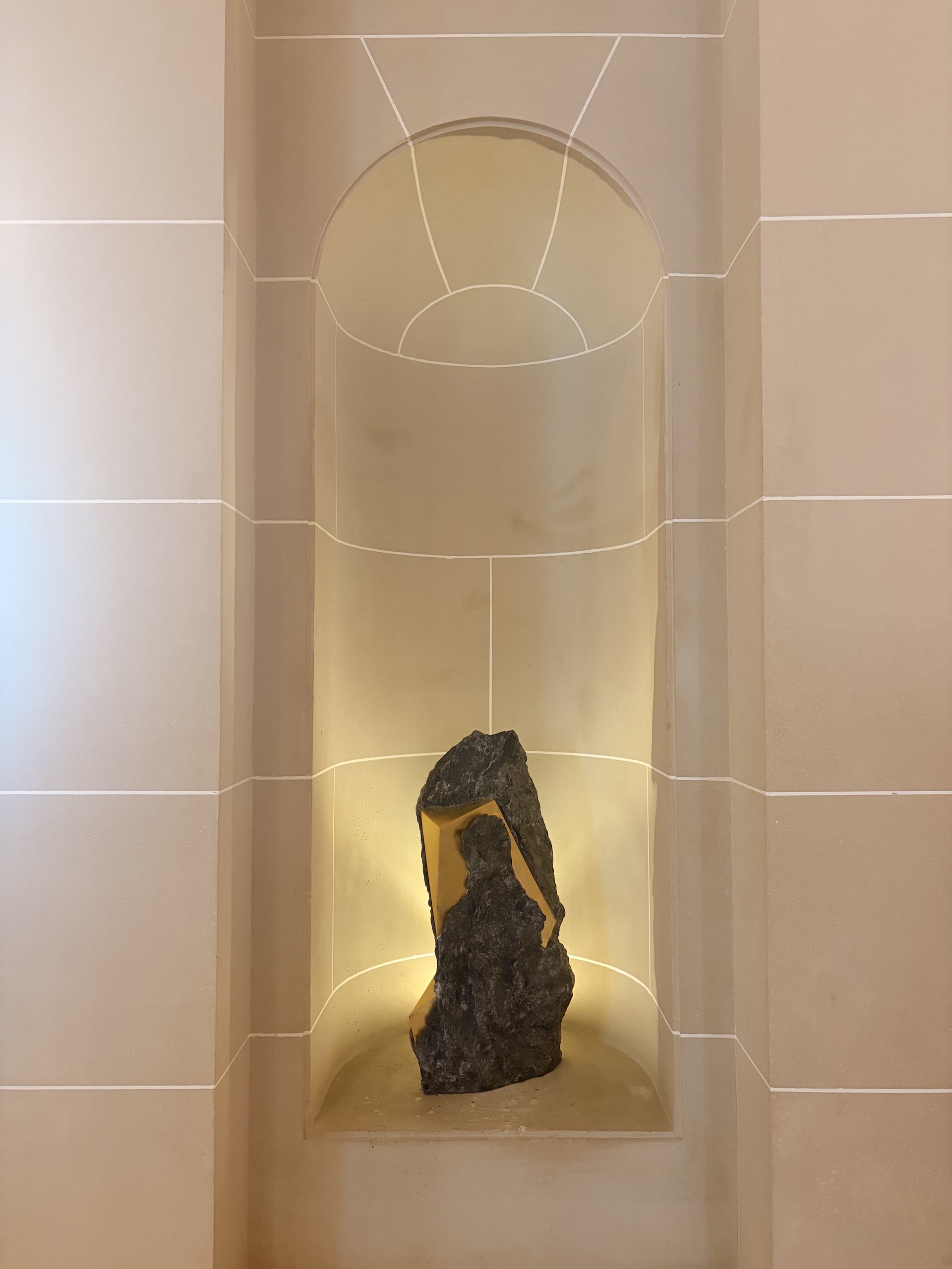 La démarche de l’artiste est profondément différente de celle de la sculpture traditionnelle dans laquelle le sculpteur part d’un bloc de pierre – qui contient la forme désirée et imaginée – duquel il retire un excédent de matière. Au contraire, pour Mattia Bosco l’intervention du sculpteur est simple, circonscrite et limitée, et vise à faire émerger et à purifier la forme déjà présente dans la pierre. Forme et matière sont ainsi indissociables : la pierre est par nature toujours acheminée vers une forme, elle est donc déjà une potentielle sculpture.