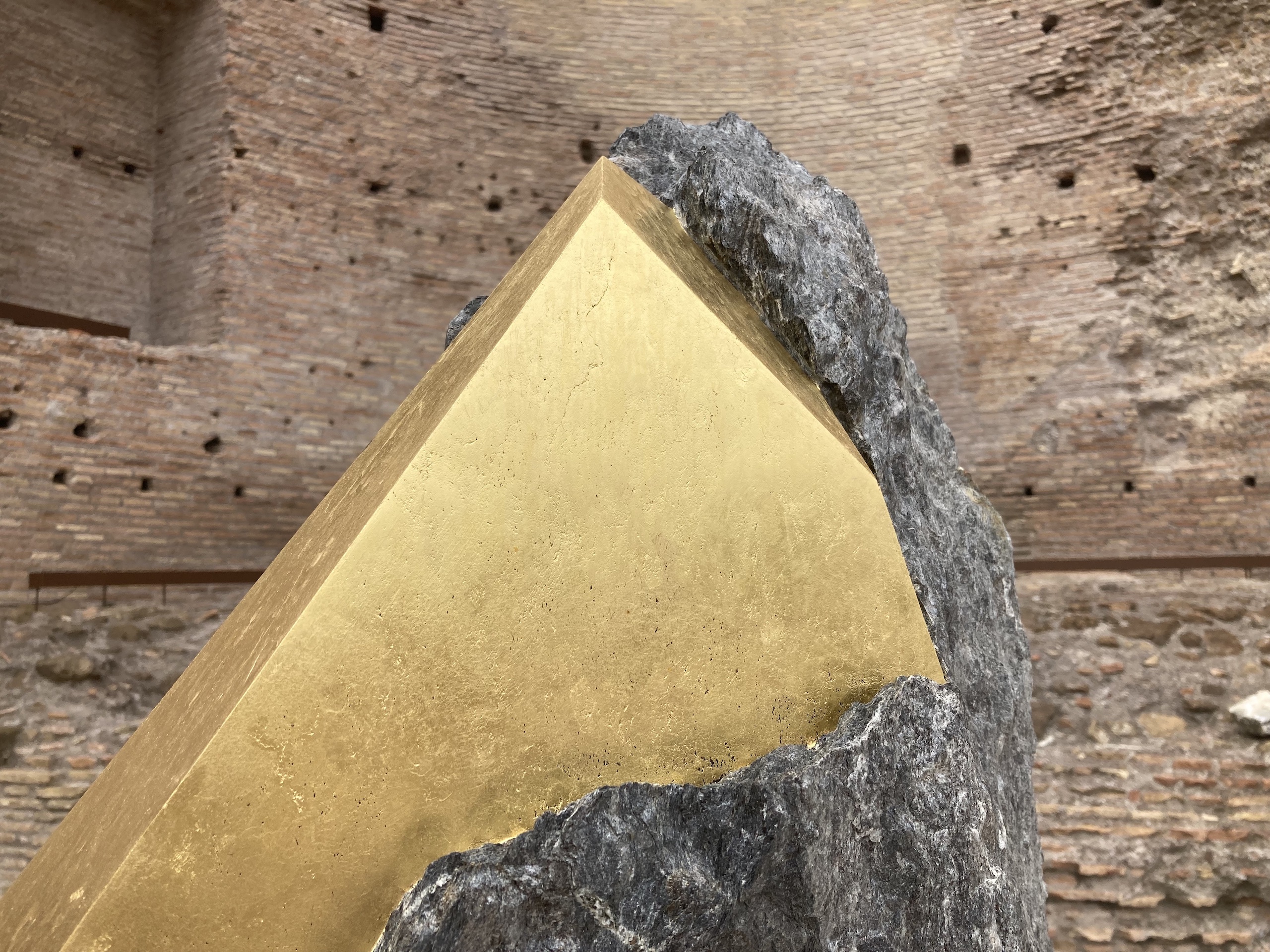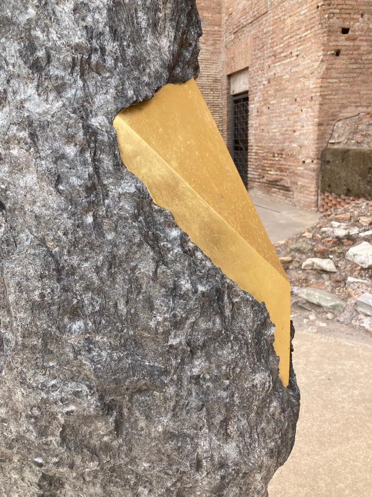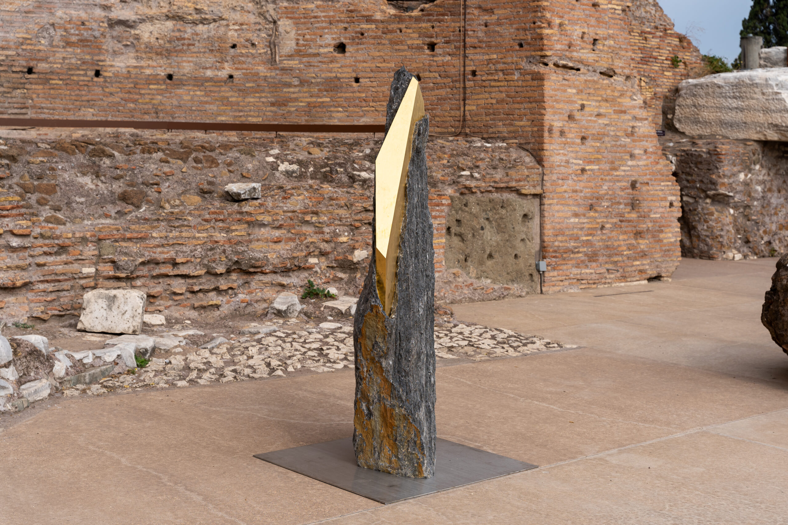 Cette œuvre appartient à un ensemble de douze sculptures, dont « Sezione Aurea » (« Section Dorée »), conçues spécifiquement pour l’exposition personnelle de Mattia Bosco “Korai” du 22 septembre 2023 au 14 janvier 2024 dans le Parc archéologique du Colisée de Rome.