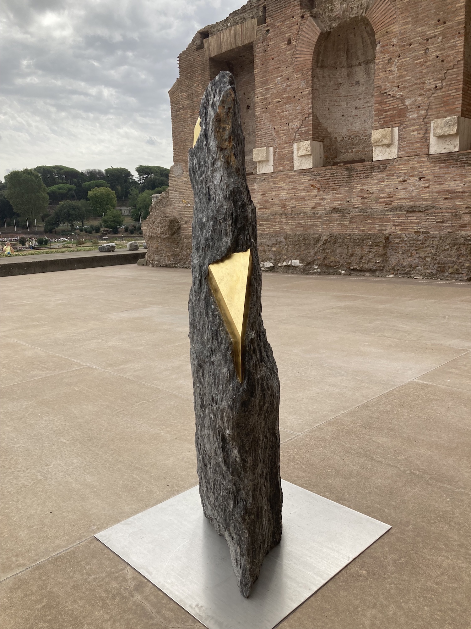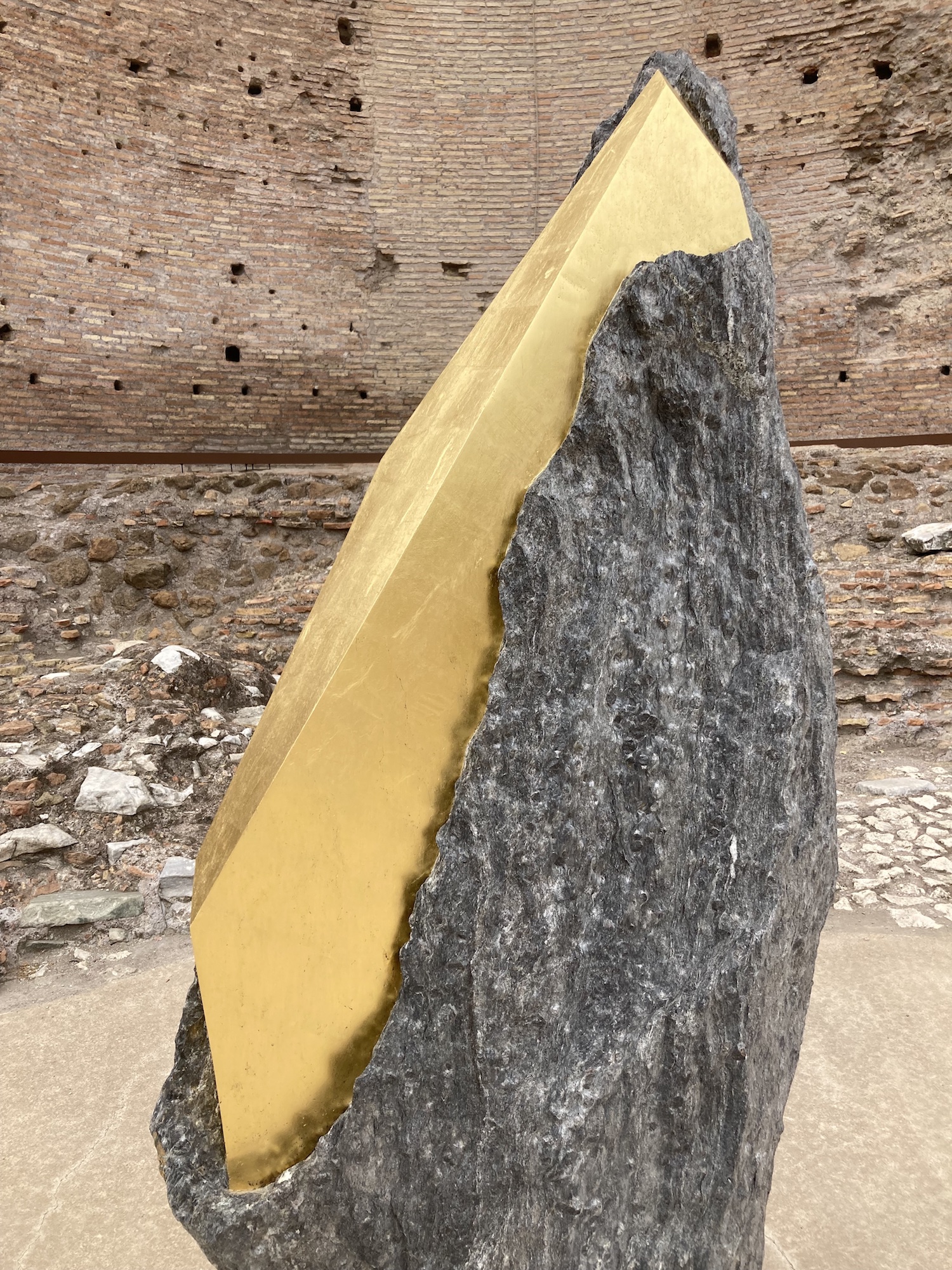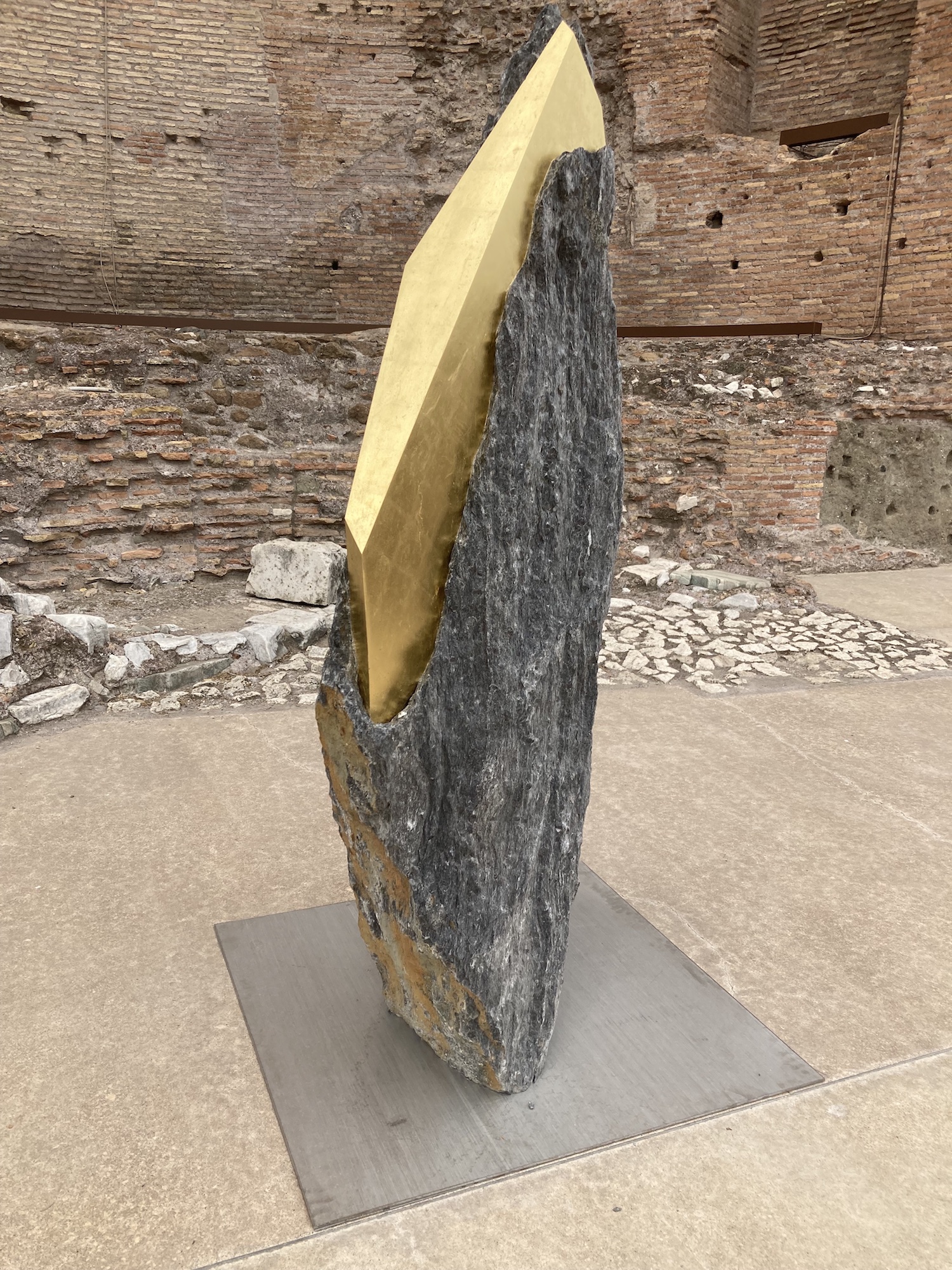 Cette œuvre appartient à un ensemble de douze sculptures, dont « Sezione Aurea » (« Section Dorée »), conçues spécifiquement pour l’exposition personnelle de Mattia Bosco “Korai” du 22 septembre 2023 au 14 janvier 2024 dans le Parc archéologique du Colisée de Rome.