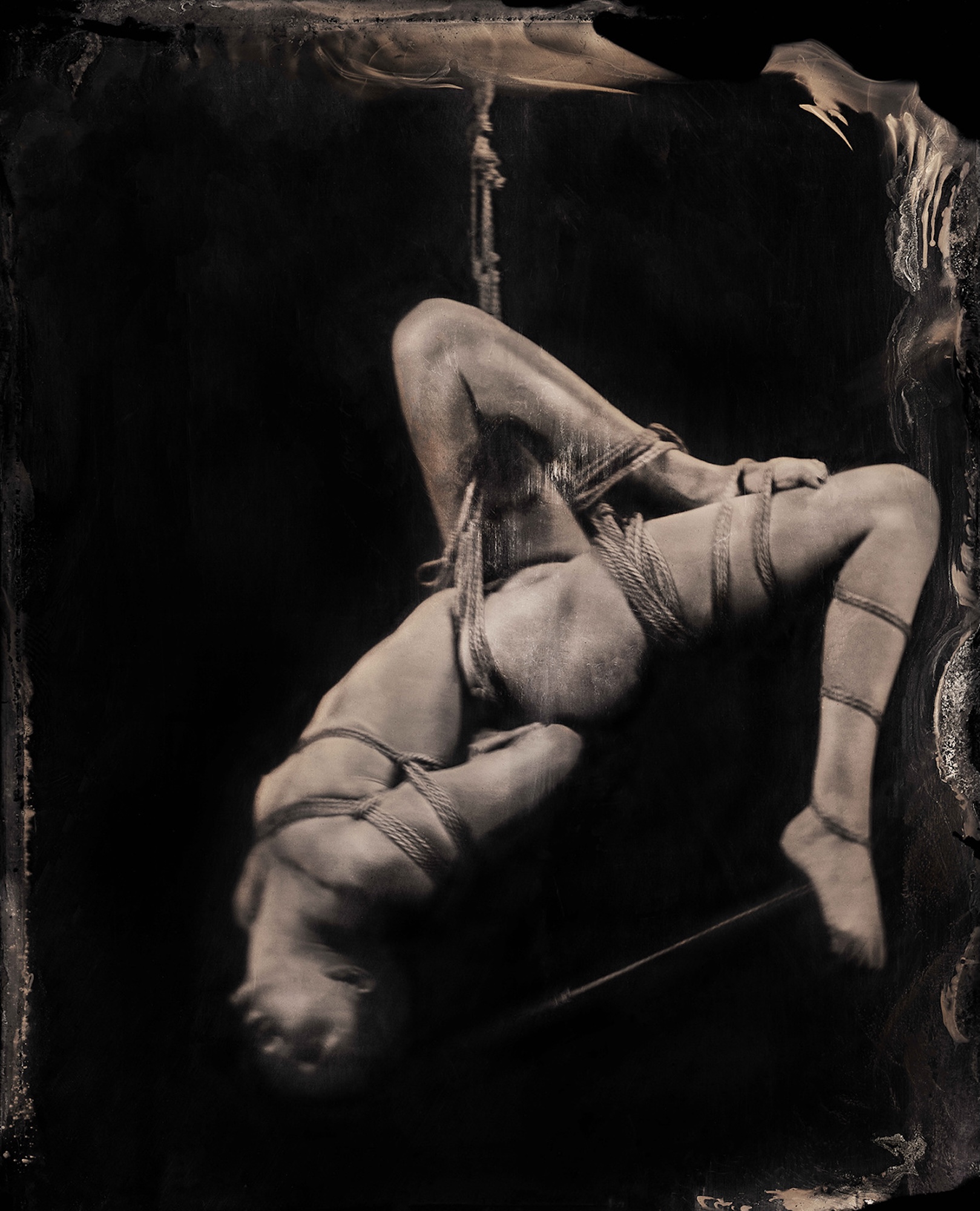 Pour cette série, Christian Houge a choisi d’utiliser la technique du collodion humide, un procédé photographique découvert par le Britannique Frederick Scott Archer en 1851. Reconnu pour son rendu unique, organique et d’une qualité exceptionnelle, ce procédé est toutefois très complexe, impliquant des processus chimiques et des temps de réalisation très longs, ce qui explique sa rareté. Les modèles doivent rester immobiles pendant de longues expositions, et une séance peut durer plusieurs heures.
