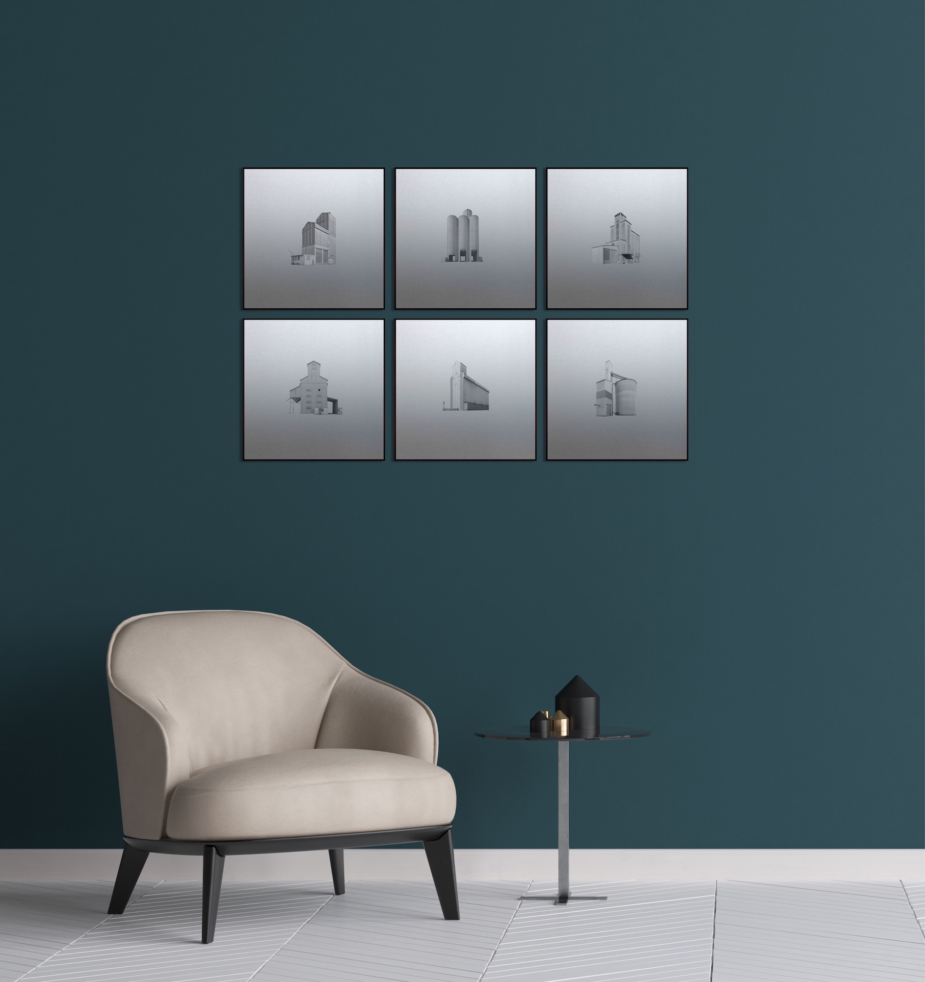 Chacune des photographies de ‘Silent Forms’ représente un élément omniprésent, et immuable, dans le paysage rural français : le silo à grain. Bruno Fontana sort ces édifices de leur contexte et les place ainsi au rang d’objet sculptural. Nicolas Loriette, docteur en histoire des arts, souligne : « Ici, Bruno Fontana ose nous montrer frontalement la grande variété typologique des silos qui est une des spécificités françaises. Ce n’est donc pas un même motif quinze fois répété ce qui eut été possible puisqu’il existe d’authentiques familles de silos – souvent ceux d’un même concepteur ou d’un même constructeur, mais bien la diversité que Bruno Fontana révèle au public. »