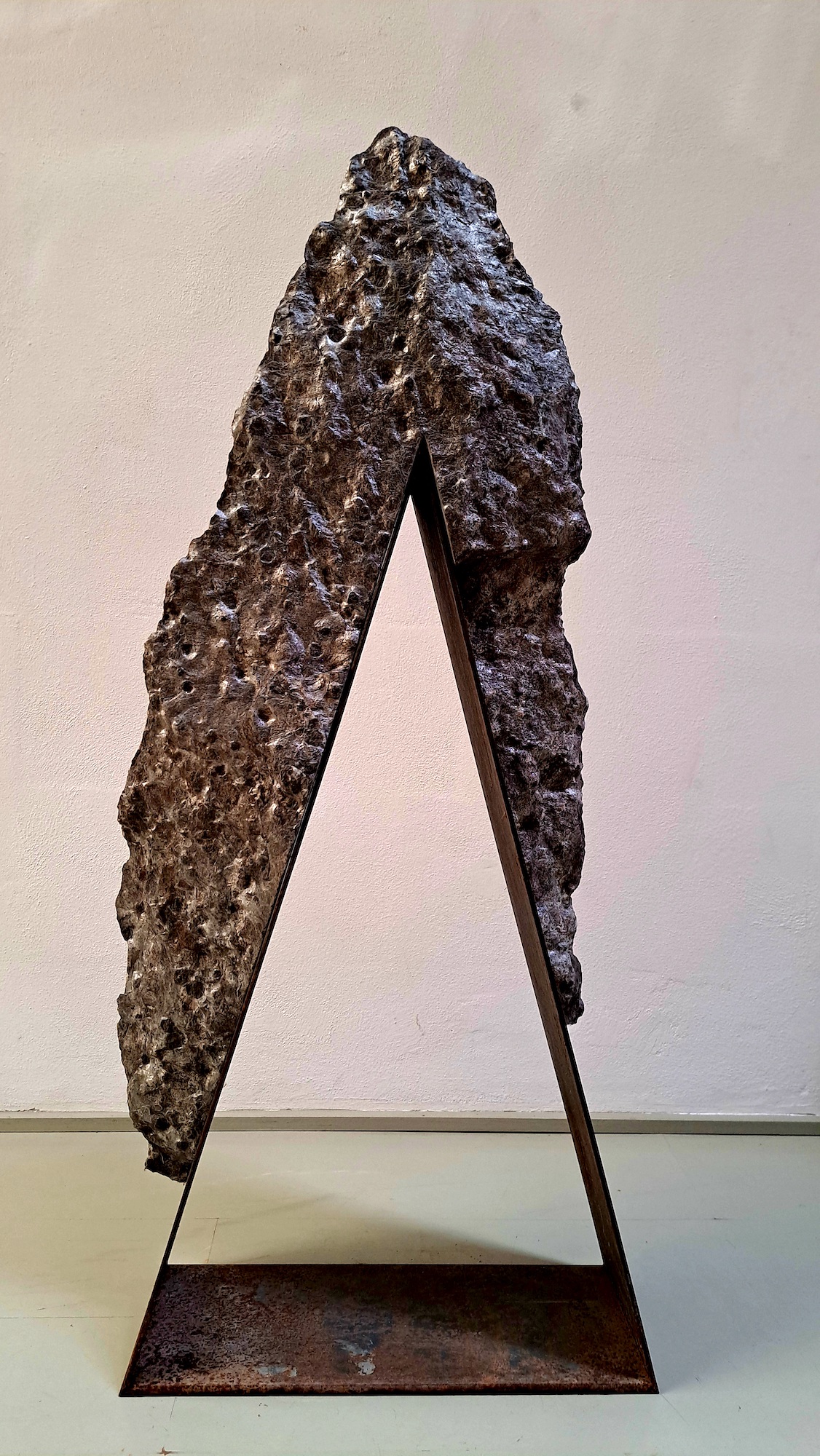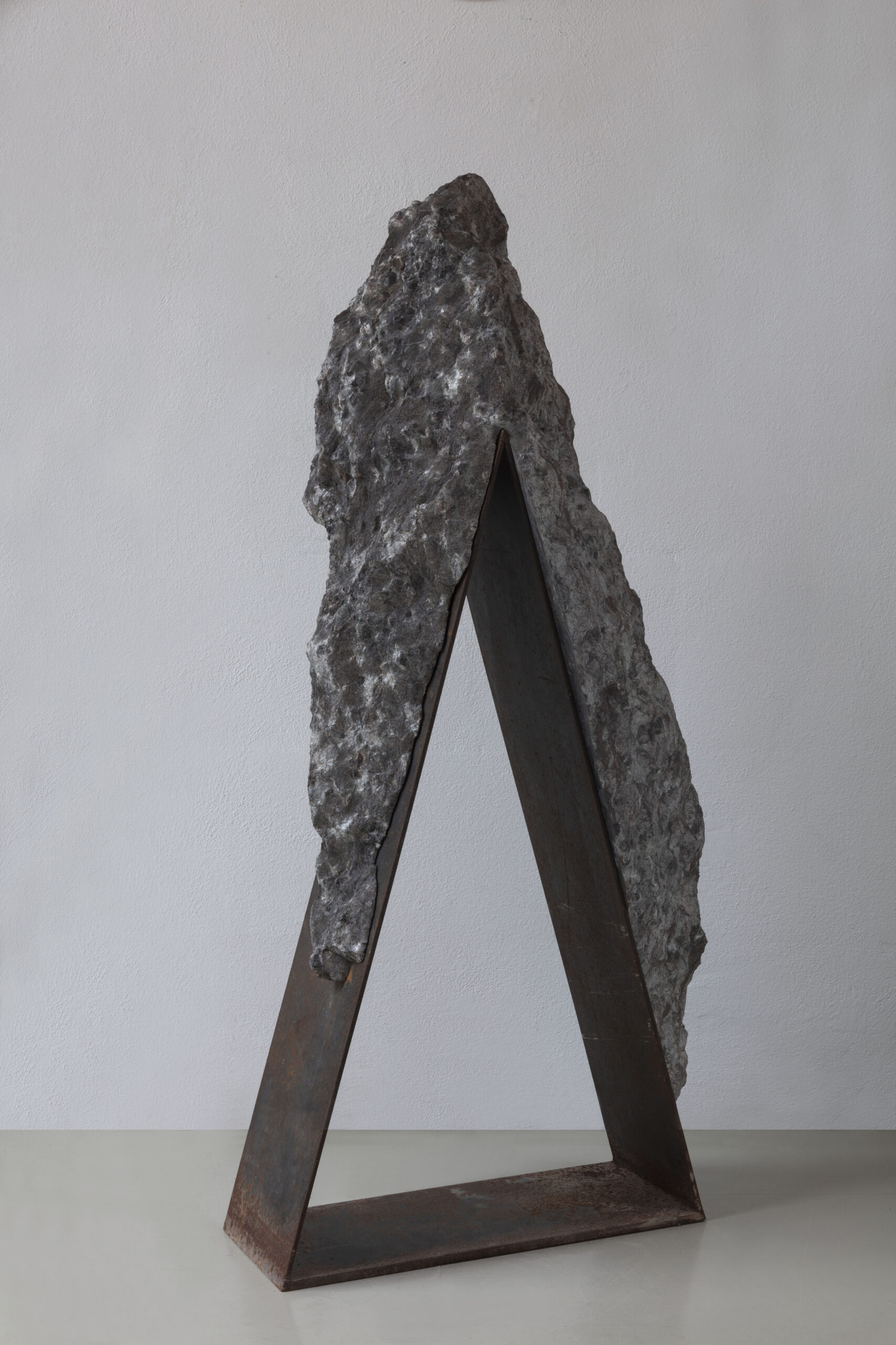 Pour Mattia Bosco, la pierre est une incarnation solide du temps – une sorte de fragment singulier du monde et de son histoire. Cette sculpture, en forme de triangle, représente une frontière, une passerelle, un passage vers une autre dimension reliant l’ici et l’ailleurs, le passé et le présent.