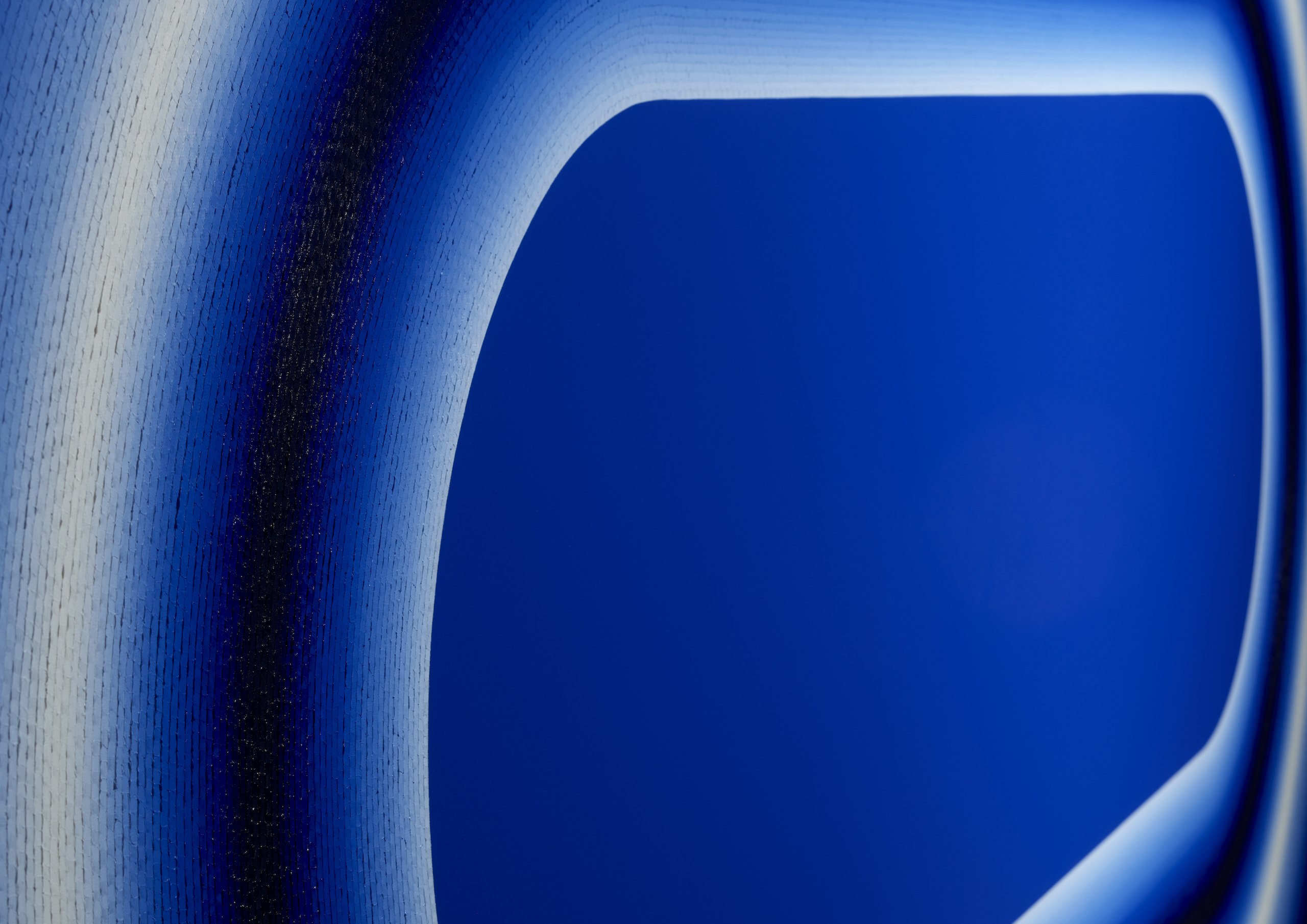 Mathieu Piffeteau travaille toutes les couleurs sauf le rouge ; pour cette peinture, il a utilisé des nuances de bleu et de blanc. Ici, l’artiste combine deux types de peintures et techniques, en diversifiant la texture et les reflets sur la surface de l’œuvre : une partie est réalisée à l’huile avec sa technique de fragmentation, alors que l’aplat de couleur est réalisé à l’acrylique. Dans cette peinture il est possible d’apprécier les deux techniques de dégradé de couleurs que l’artiste utilise : le dégradé court, qui crée un effet visuel de « flou » lumineux, et le dégradé long, qui crée un effet visuel de rayonnement lumineux.