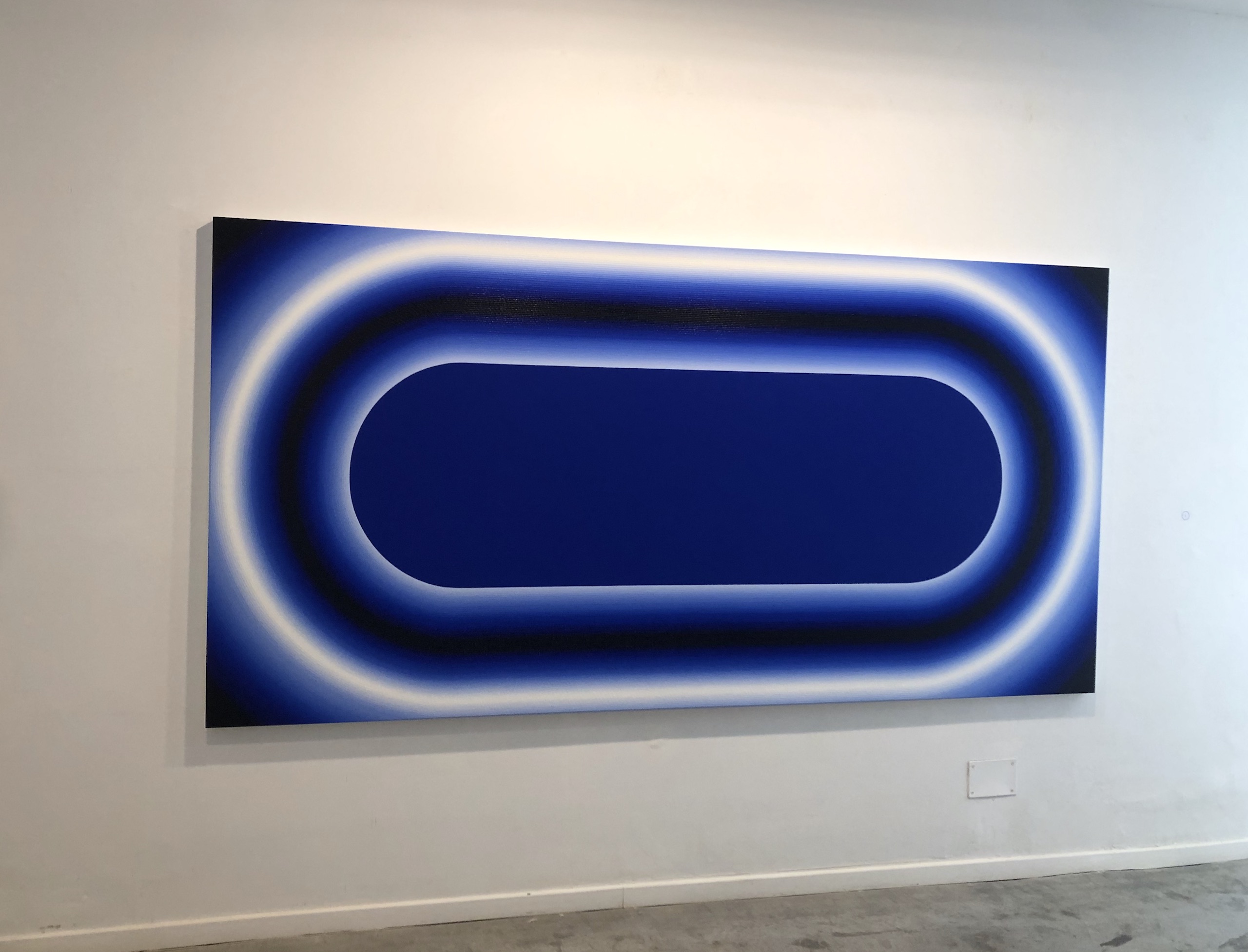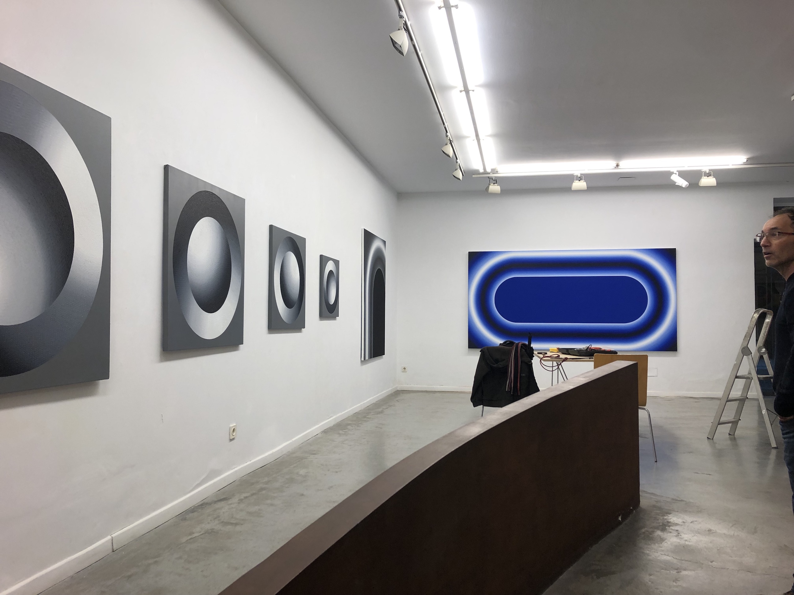 Les tableaux abstraits de l’artiste Mathieu Piffeteau explorent la diffusion de la lumière et les illusions d’optique à travers une combinaison harmonieuse de formes géométriques simples et universelles (des cercles, des carrés, des triangles…) avec des dégradés de couleurs peints à l’huile. Le résultat est une œuvre captivante qui dégage une énergie frémissante ; l’observateur est immergé dans une pure contemplation esthétique, une expérience sensorielle subjective et unique.