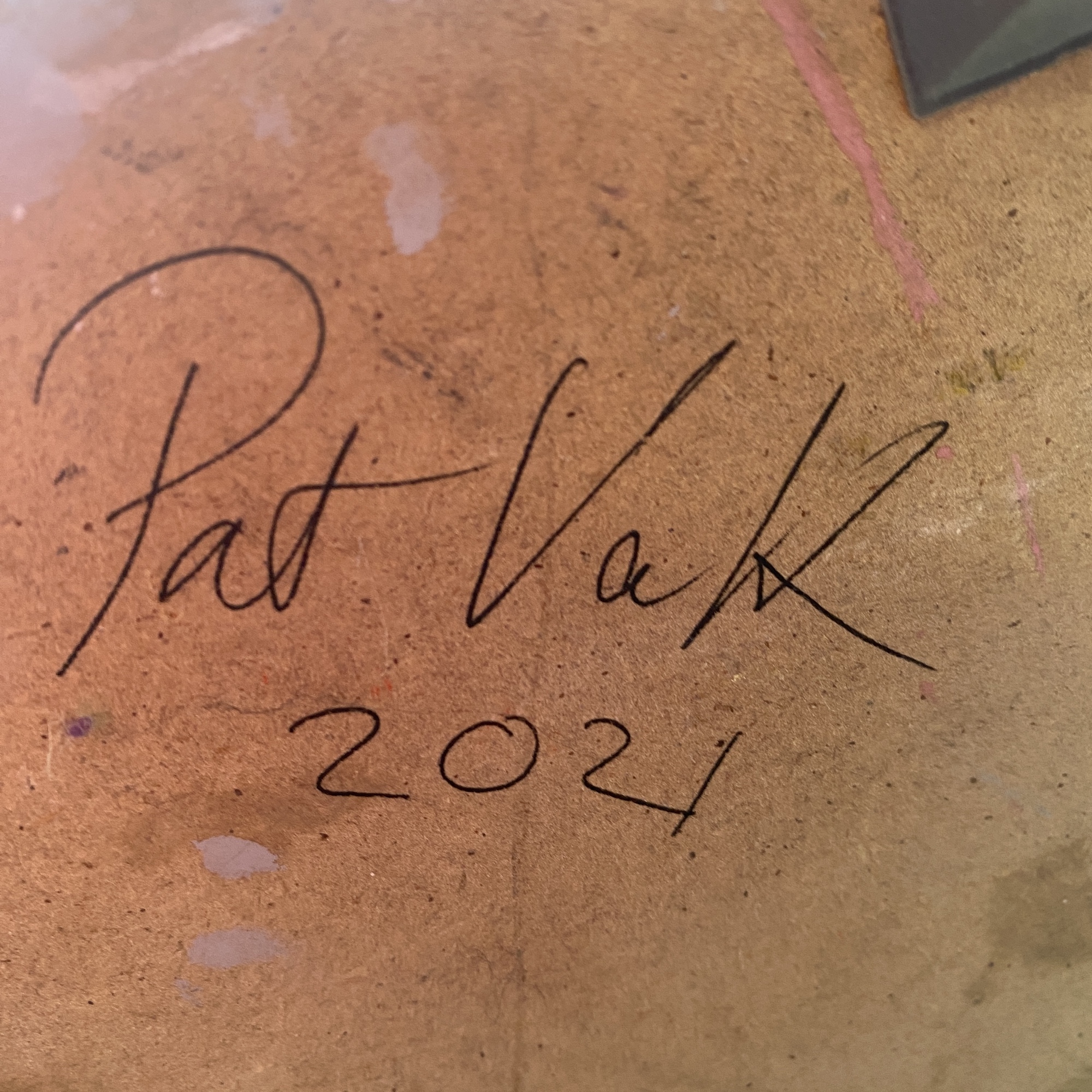 Les sculptures abstraites de Patricia Volk naissent de la combinaison unique entre deux éléments : la forme et la couleur. L’artiste débute son processus de création en découpant des morceaux de terre, son matériau de prédilection, à la recherche de la ligne parfaite qui pour elle est une ligne simple et dynamique. Successivement, les morceaux sont cuits et assemblés pour construire la forme finale de la sculpture. Pour cette œuvre, l’artiste a monté la céramique sur une base en MDF. Elle explique : « Il n’y a pas d’idée préconçue, soit (la pièce) marche soit elle ne marche pas. Il y a tellement de simplicité dans une bonne ligne, c’est complètement sous-estimé, car c’est incroyablement difficile […] mais tellement plaisant d’un point de vue esthétique ».