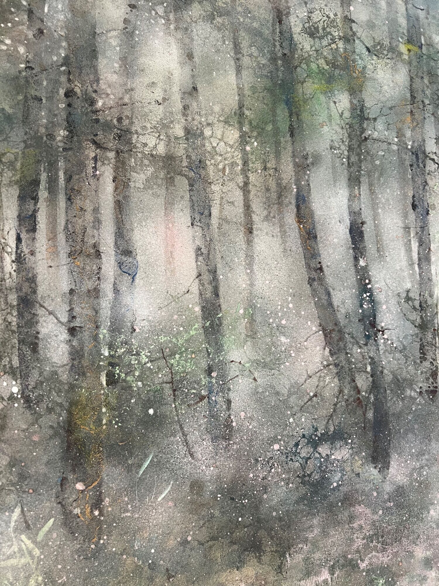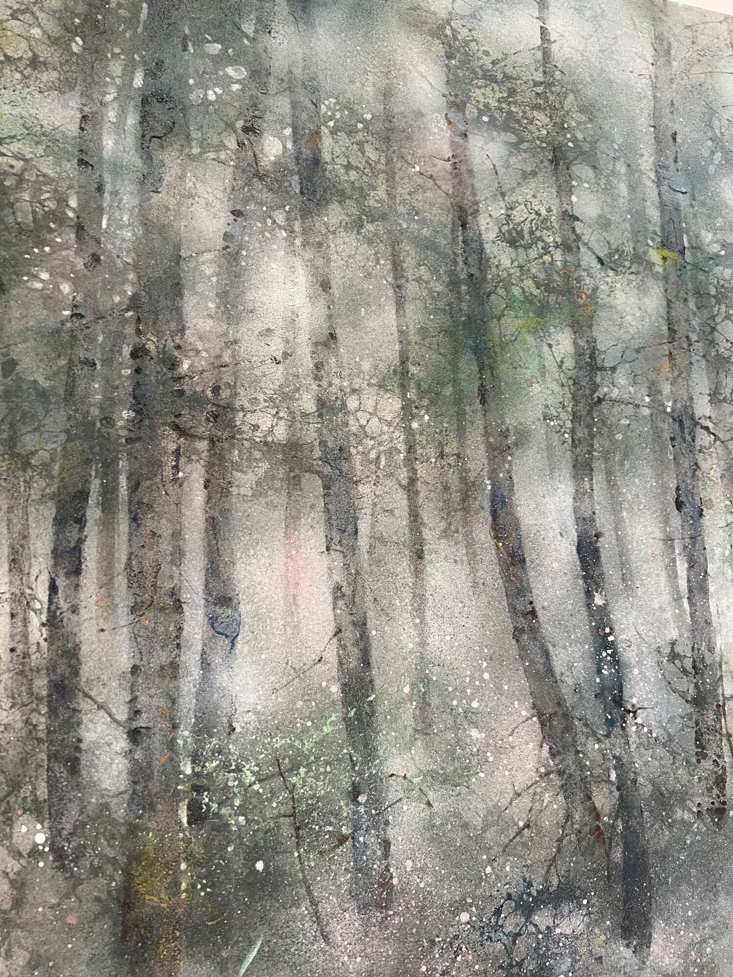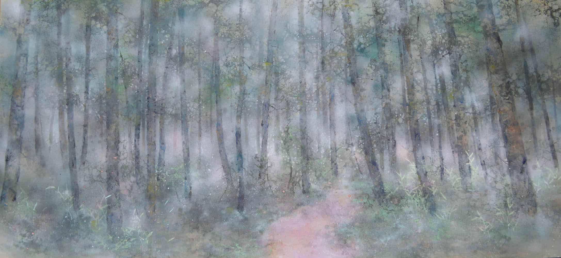 | Étiquettes | arbre|feuille d'argent|forêt|pigment|Tableau grand format|technique mixte|vert |