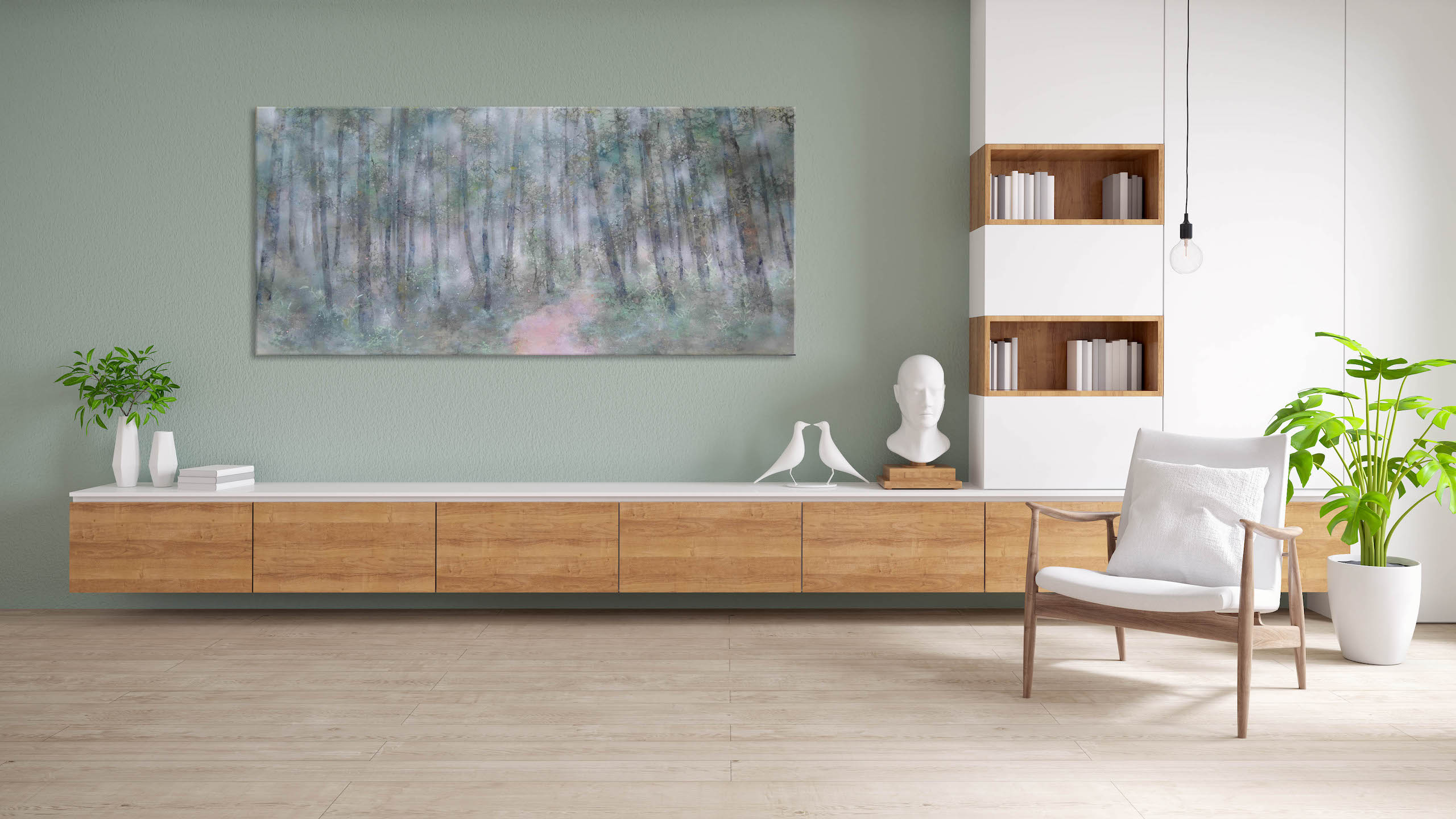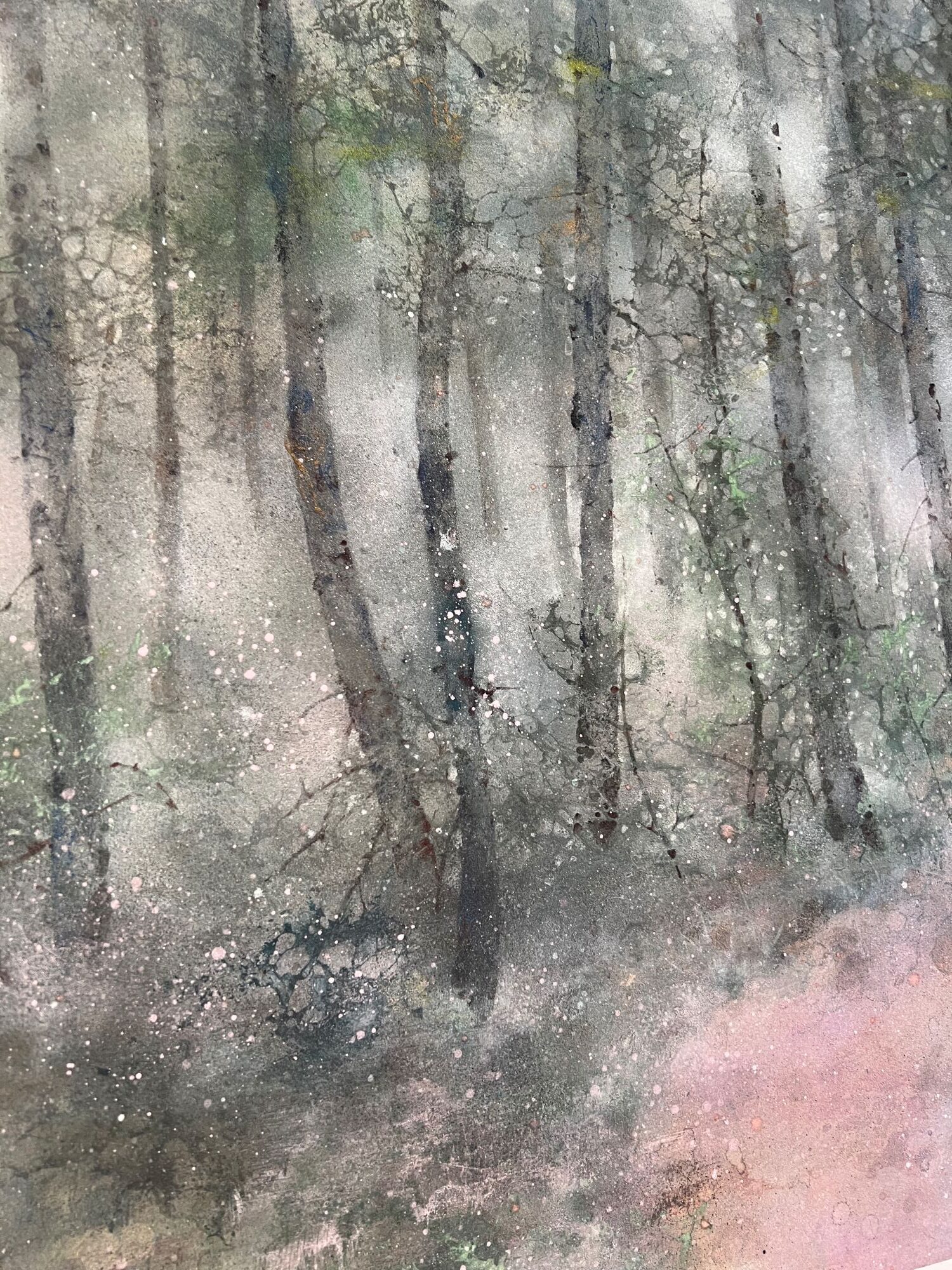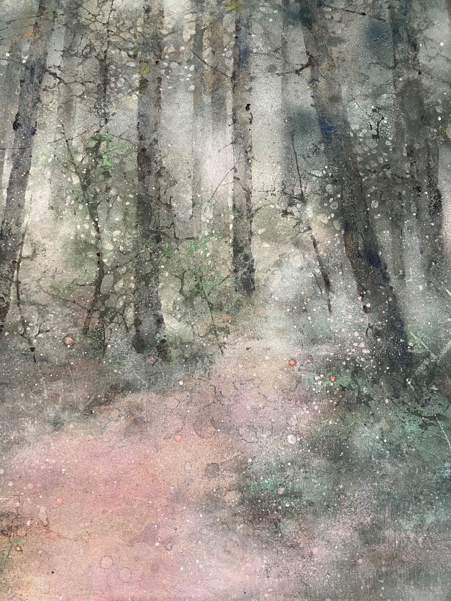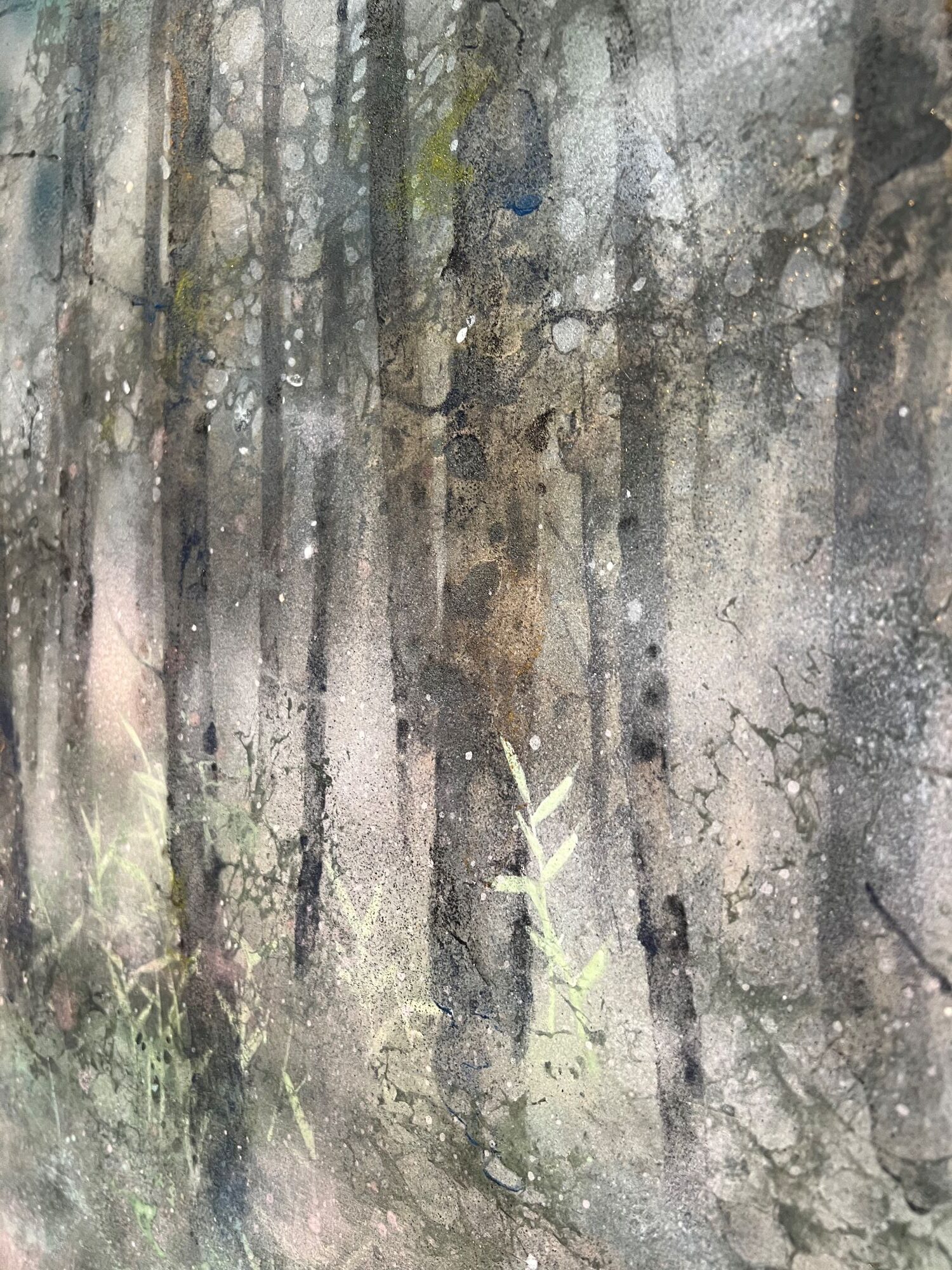 | Étiquettes | arbre|feuille d'argent|forêt|pigment|Tableau grand format|technique mixte|vert |