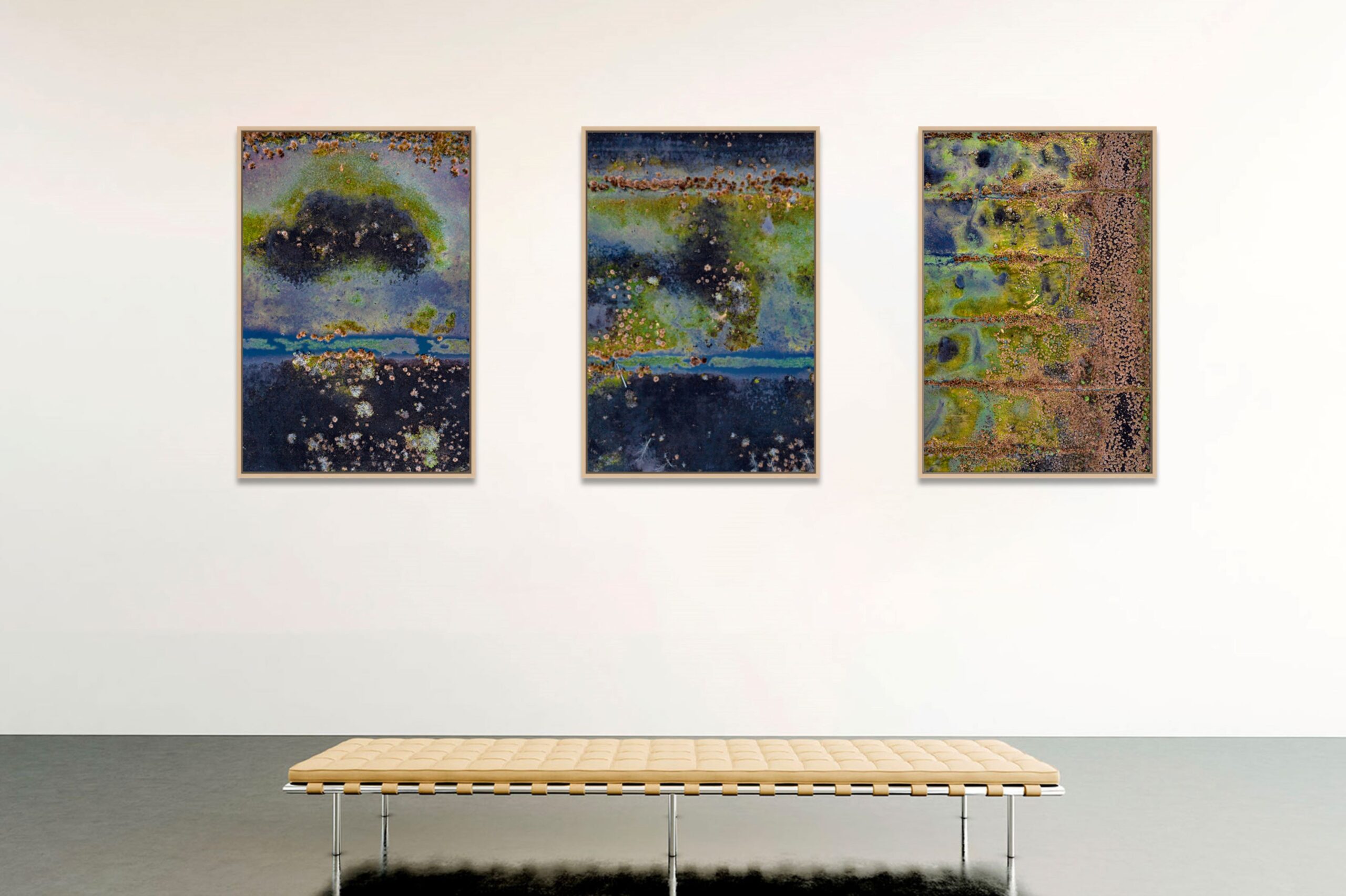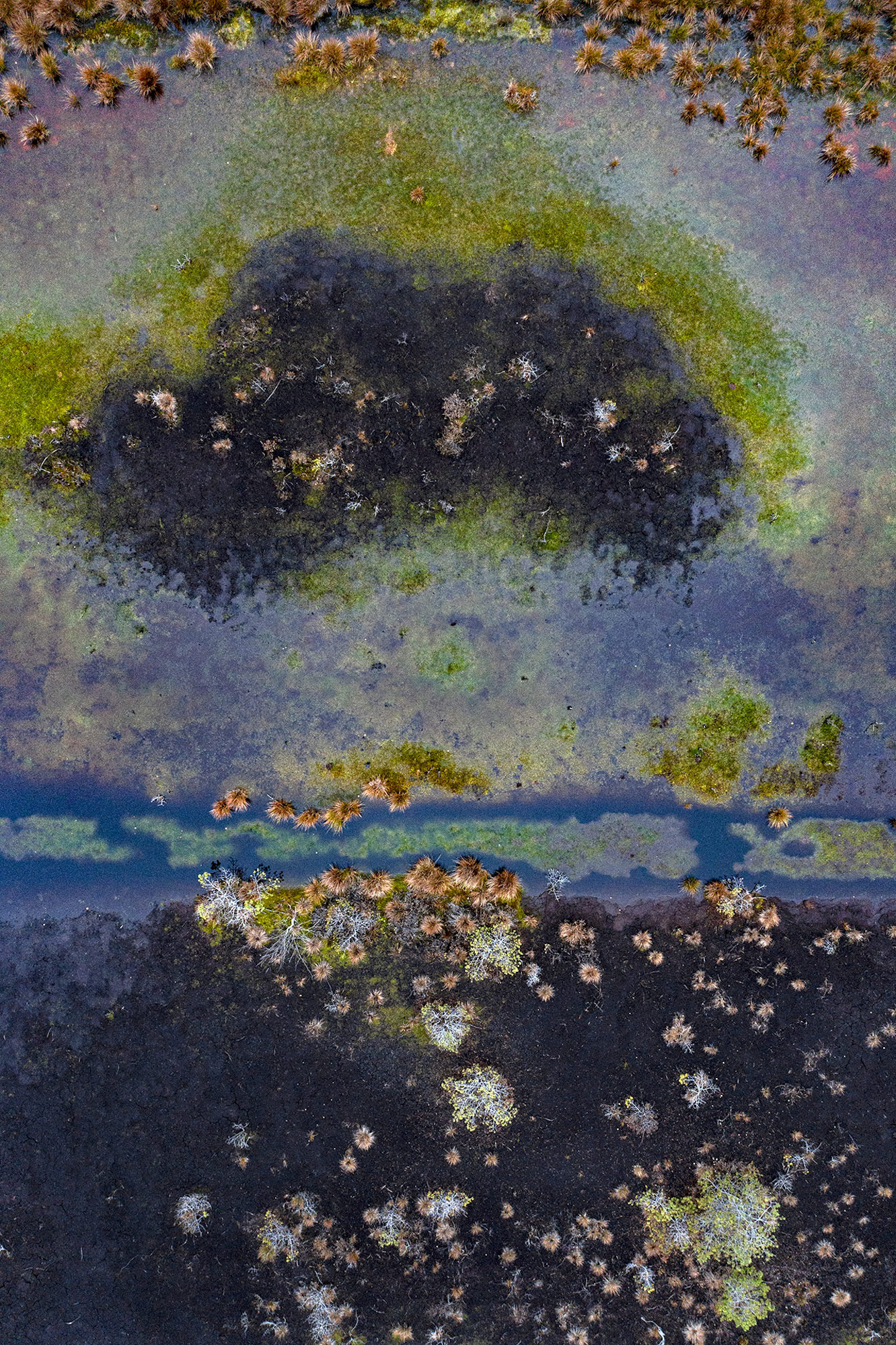 Cette photographie aérienne fait partie de la série « The Bog », présentant des paysages de tourbière en Estonie. Les marais d’Estonie sont énigmatiques, vastes et vierges, et offrent des surprises inattendues. Vus d’en haut, ces paysages sont psychédéliques et poétiques. Ces marais sont souvent protégés par des parcs nationaux tels que le parc national de Lahemaa. Les anciennes zones d’extraction de la tourbe sont reconverties en marais, mais l’extraction de la tourbe à grande échelle en Estonie détruit les tourbières naturelles. Les tourbières sont très importantes pour le stockage du dioxyde de carbone, car elles ont la capacité de stocker six fois plus de CO2 que les forêts.