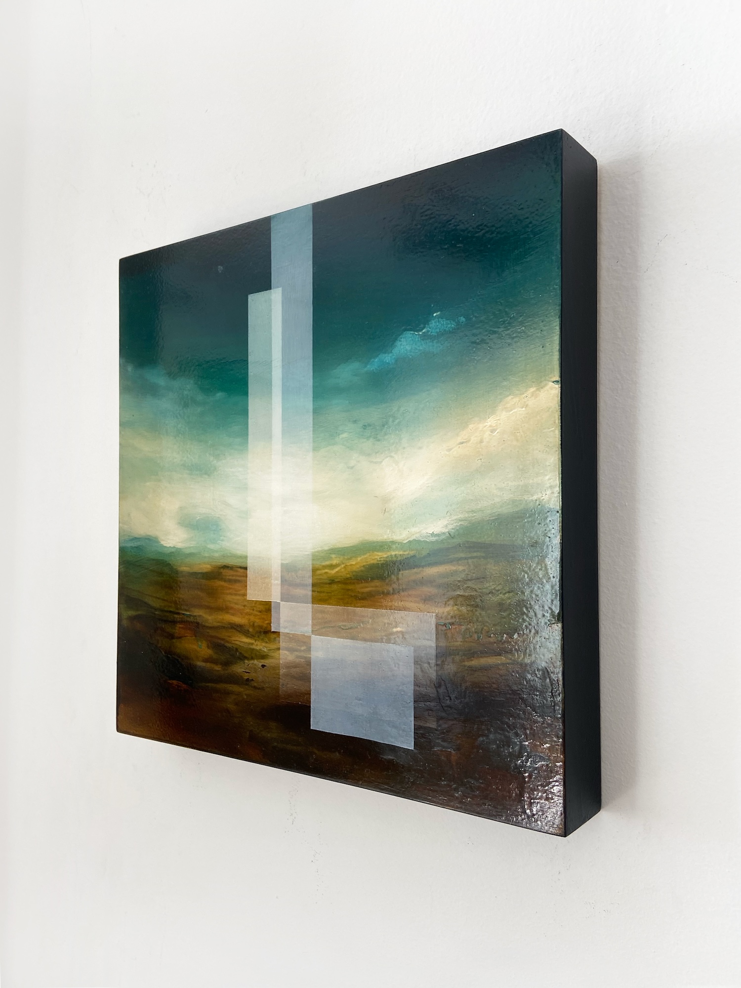Thee lush height III est un tableau de l’artiste contemporain Joachim van der Vlugt. Cette huile sur bois est une composition abstraite qui pourrait évoquer une peinture de paysage.